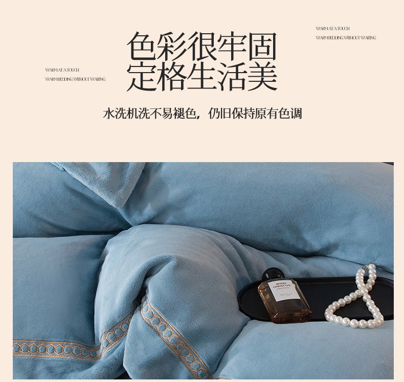 (总)暖洋 2024新款A类暖芙绒纯色刺绣工艺款牛奶绒四件套,爱码橙,湖绿色,蓝灰,藕粉,香槟色,杏仁,银灰色,玉色,富贵,血青,胭脂红