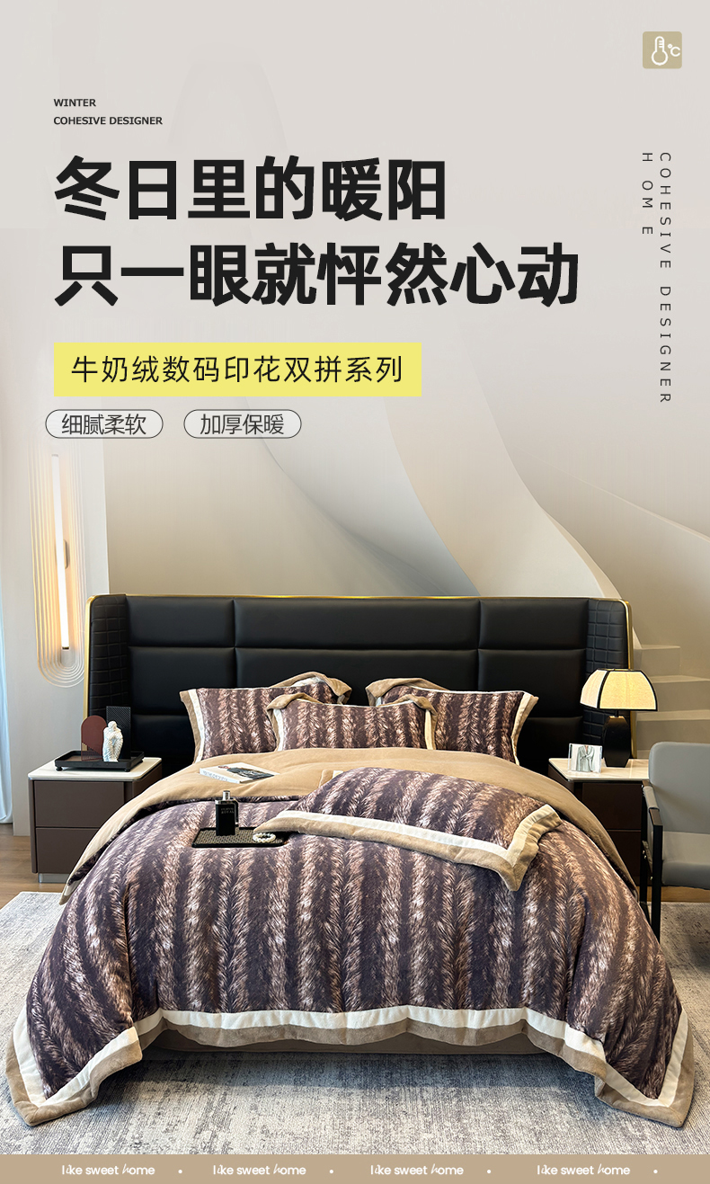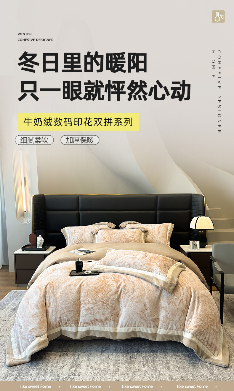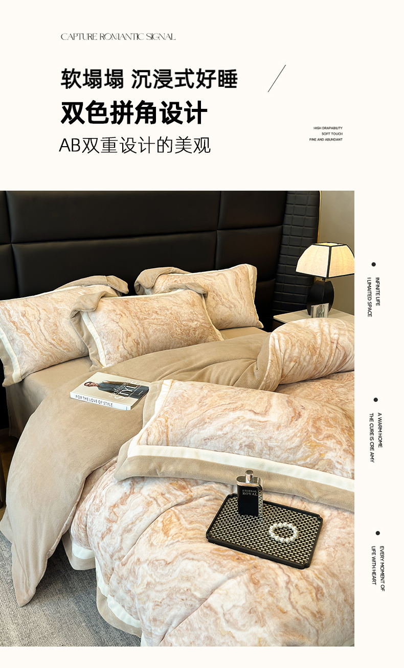 (总)罗艺轩 2025新款高克重牛奶绒数码印花双拼角四件套