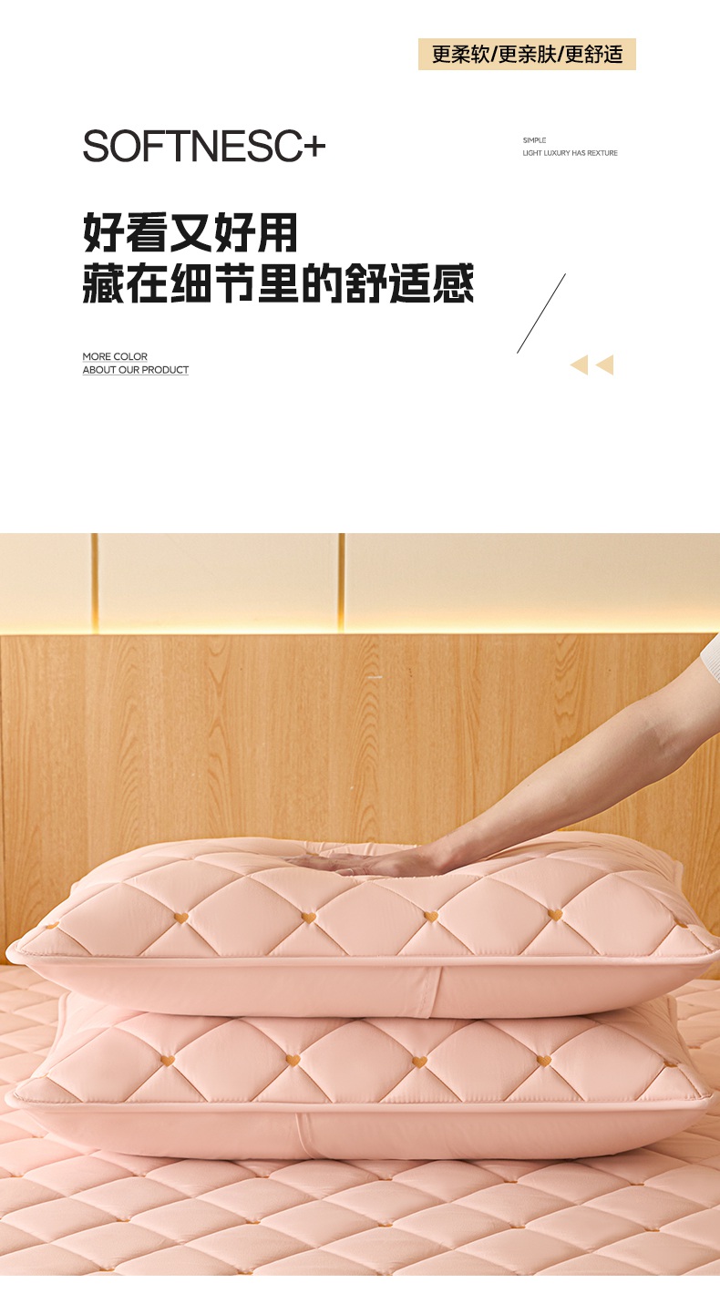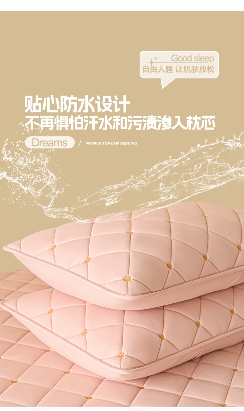 芬晴家纺 2025新款防水枕套-繁星-爱心-简爱-空间 简爱-豆沙粉