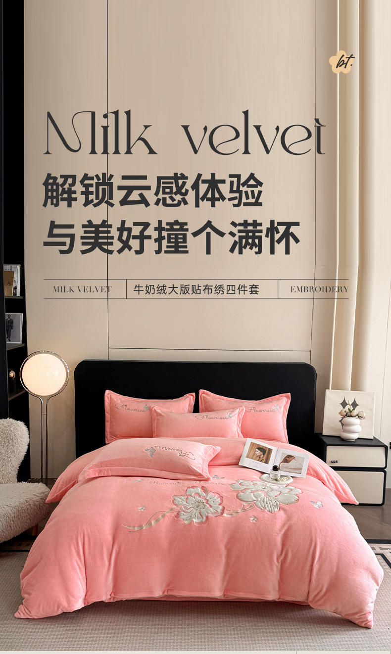 商品名称:(总)畅畅家纺 2025新款牛奶绒大版贴布绣四件套