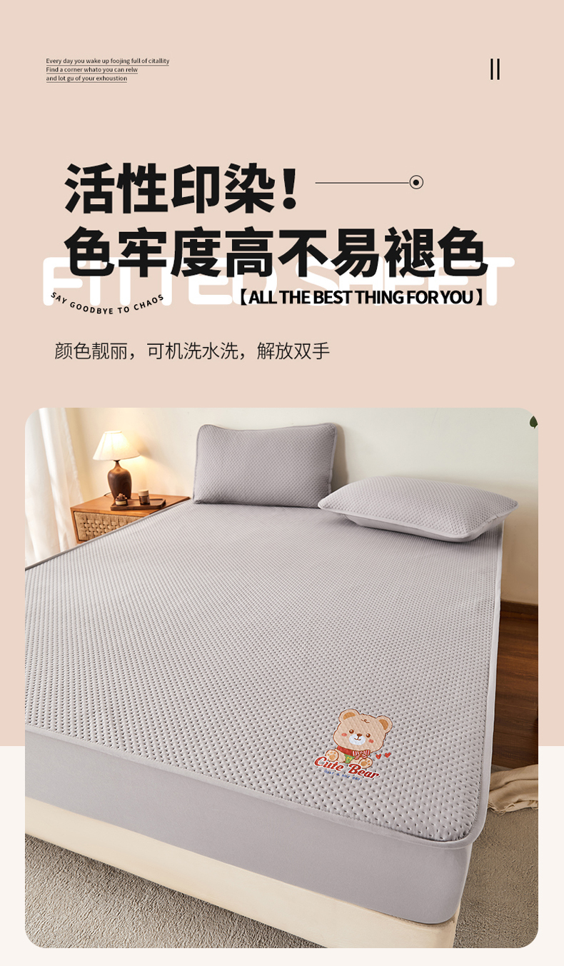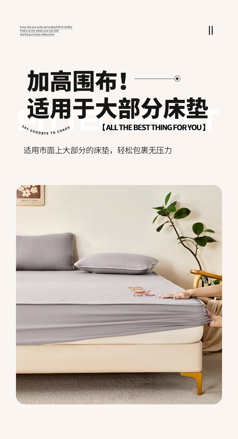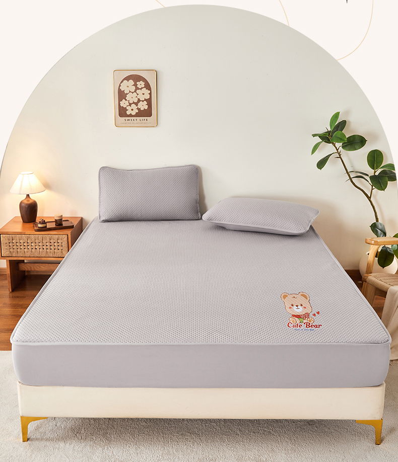 (总)永旺家纺 2025新款防水床笠-小熊系列,灰小熊,黄小熊,绿小熊,蓝小熊,粉小熊