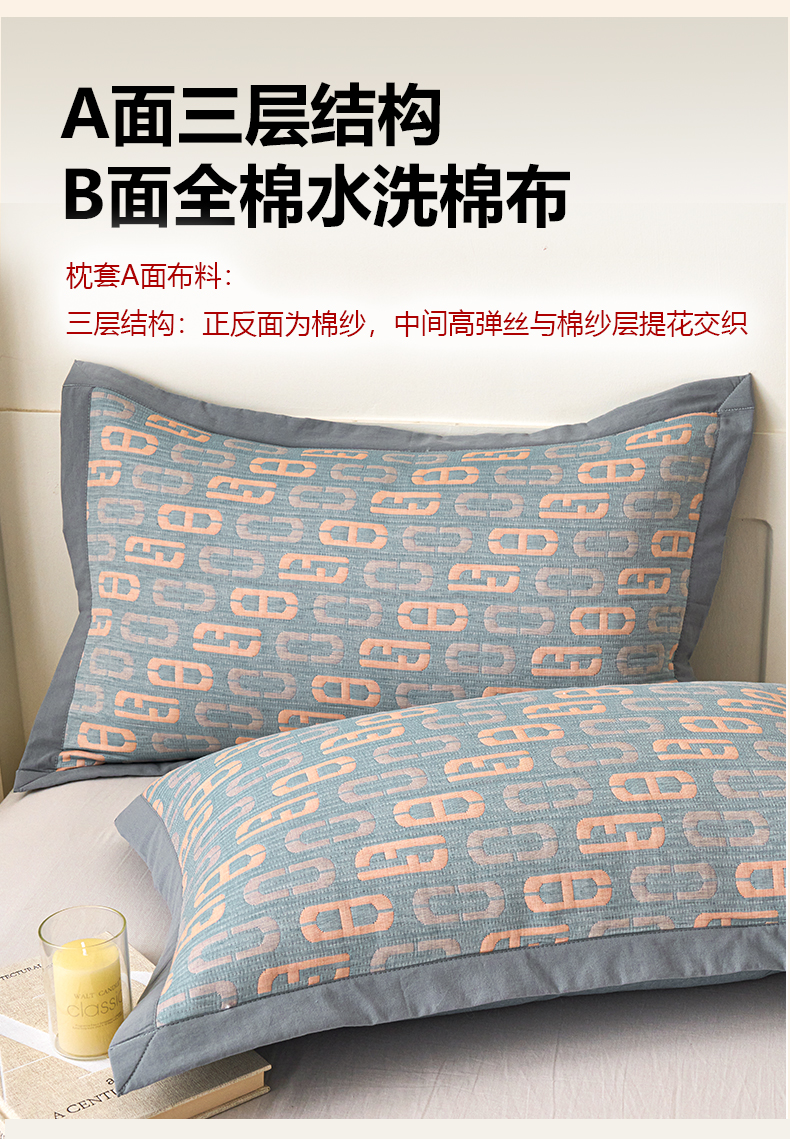 商品名称:棠薇家纺 2025新款三层纱布枕套单条装一对装枕头套加大加厚48*74cm枕芯套 爱情扣兰