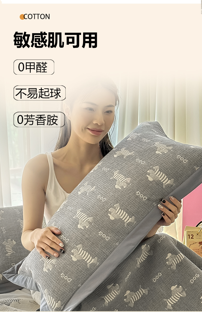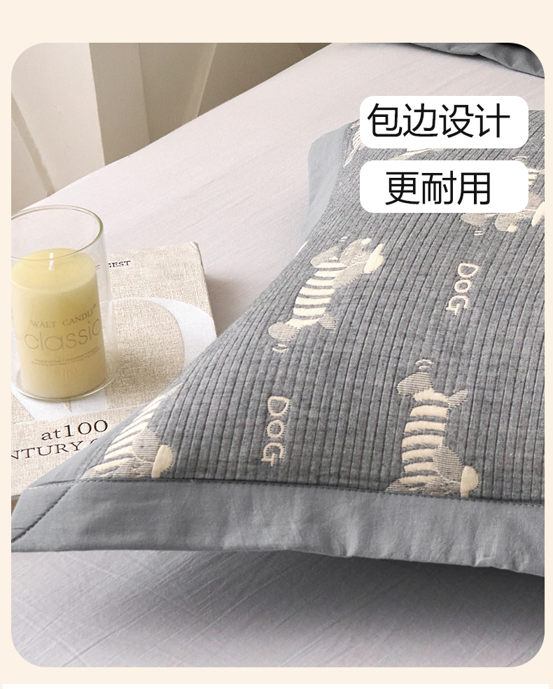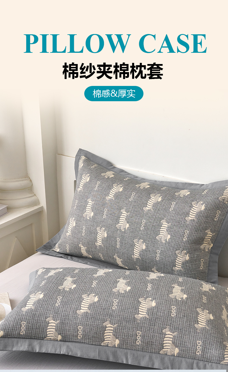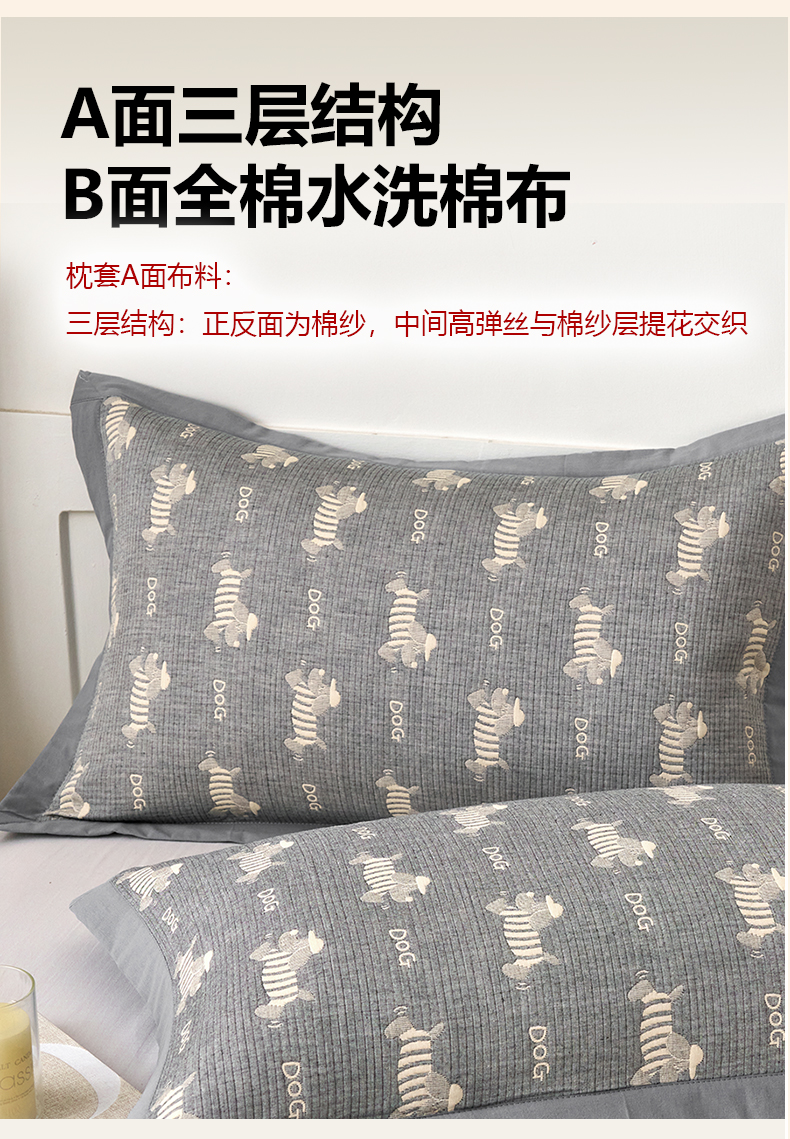 商品名称:棠薇家纺 2025新款三层纱布枕套单条装一对装枕头套加大加厚48*74cm枕芯套 腊肠小狗