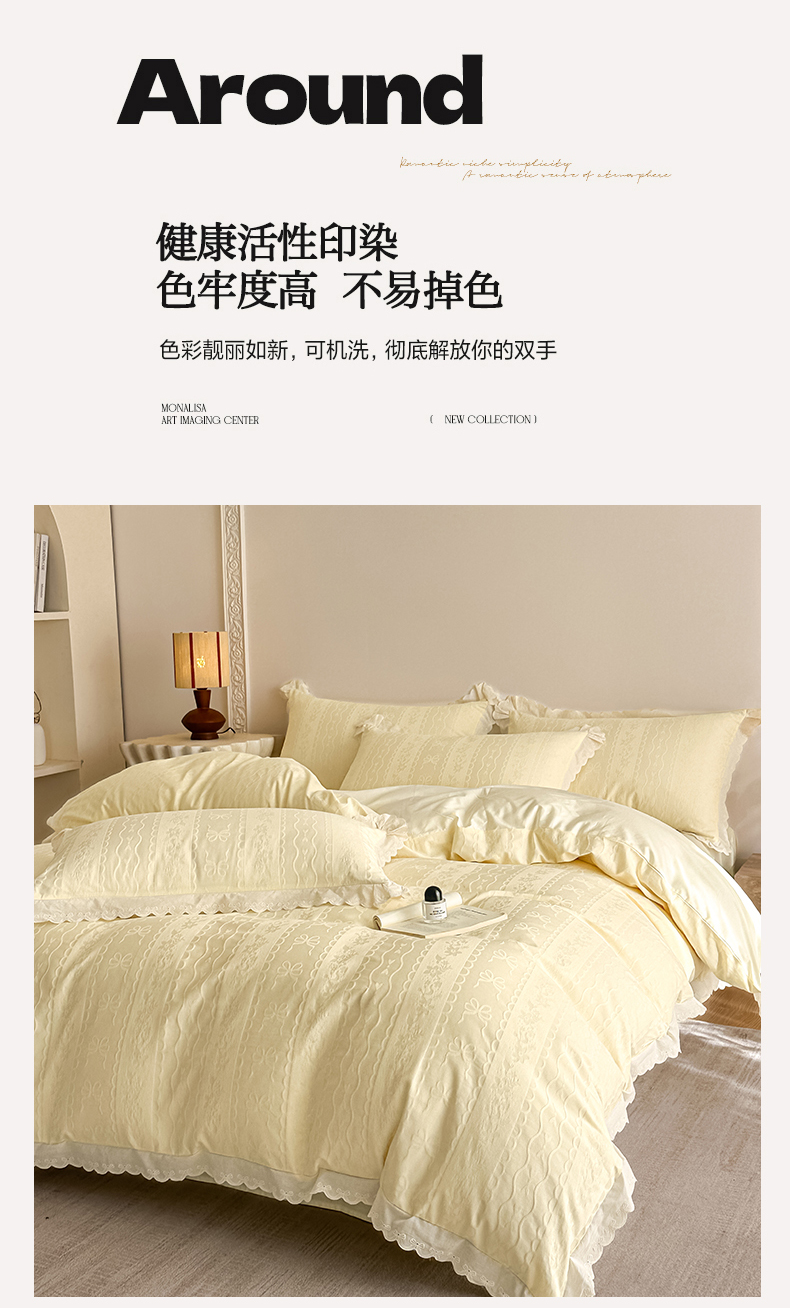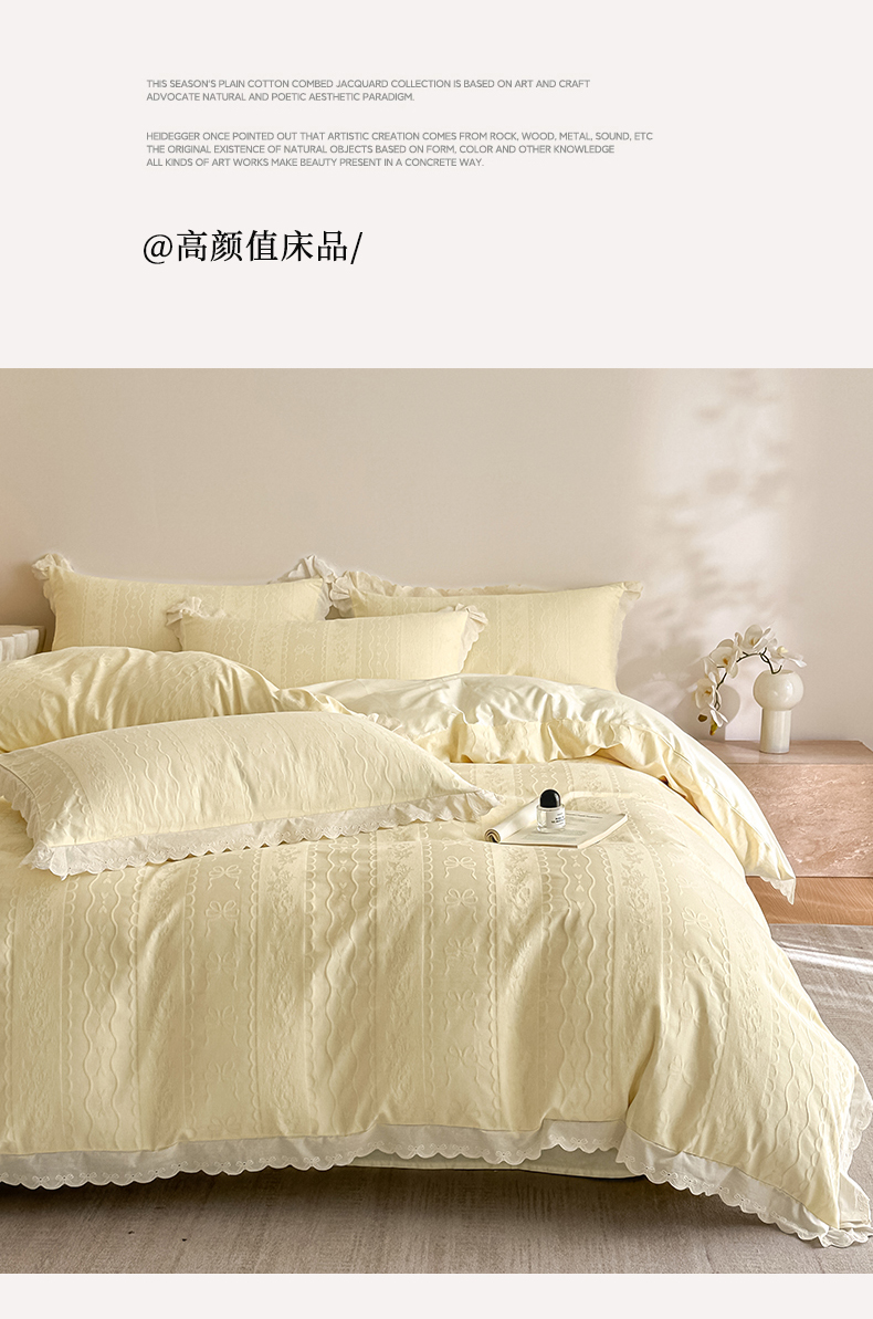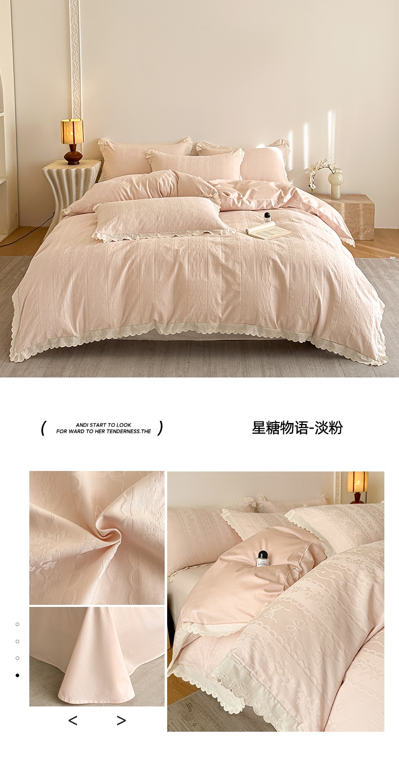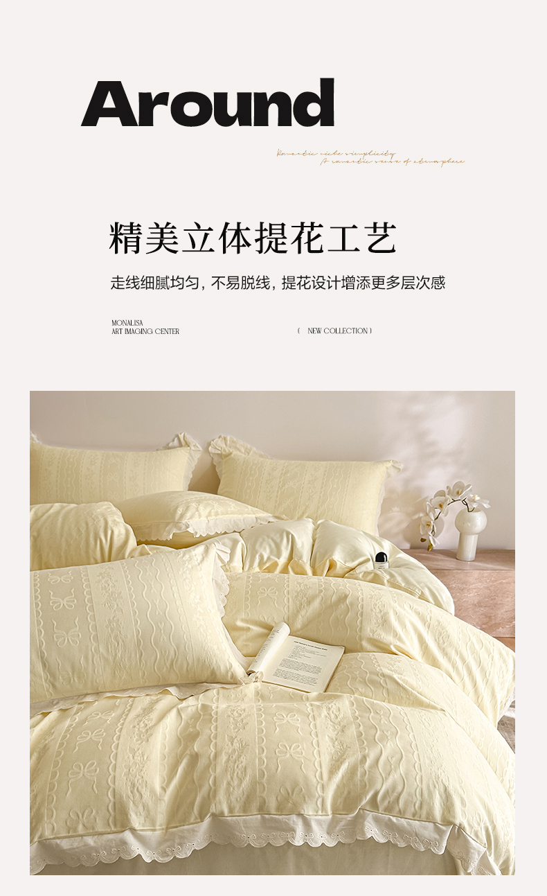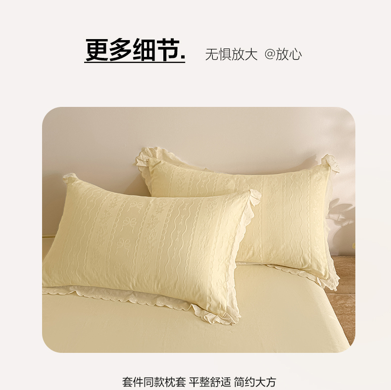 当前位置: 91家纺网 > 商品网购 > 床品套件 > 四件套 > 长绒棉四件套 > 禾时 2026新款长绒棉立体提花花边款四件套-星糖物语 星糖物语-浅黄