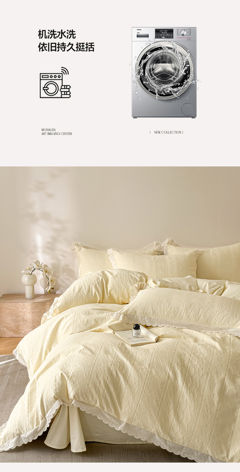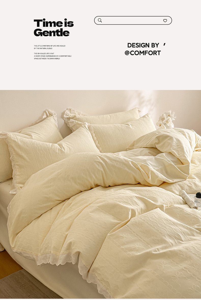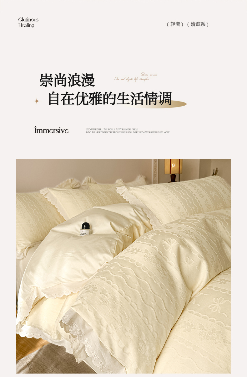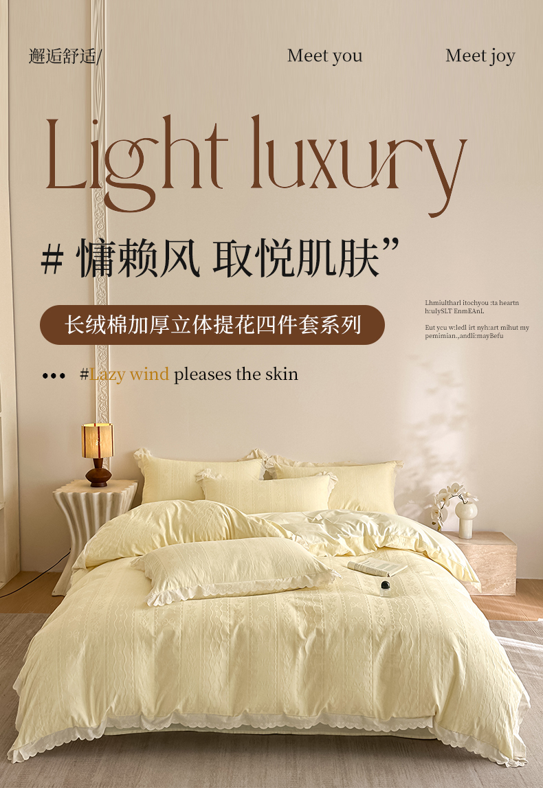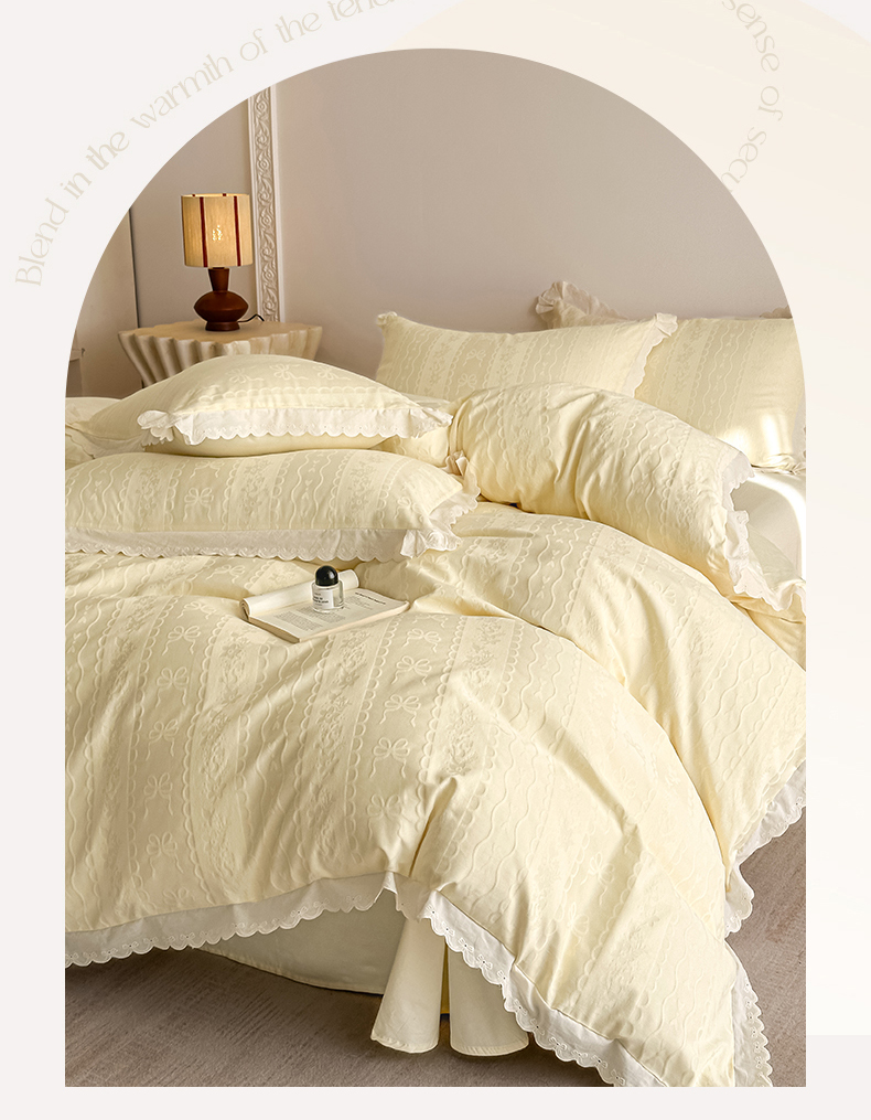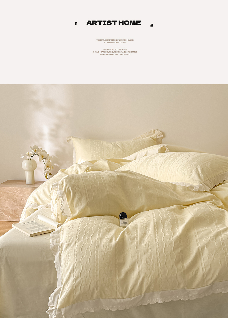 当前位置: 91家纺网 > 商品网购 > 床品套件 > 四件套 > 长绒棉四件套 > 禾时 2026新款长绒棉立体提花花边款四件套-星糖物语 星糖物语-浅黄
