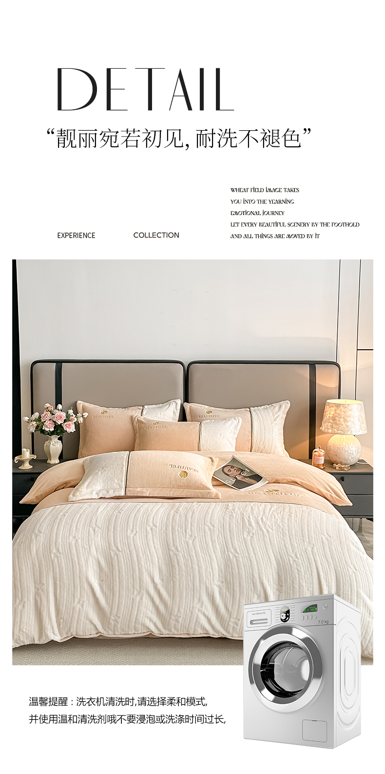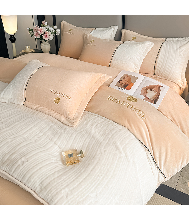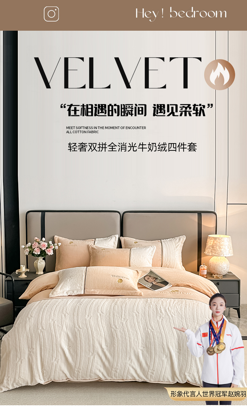 商品名称:金窝窝家纺 2025新款轻奢双拼全消光牛奶绒四件套-安娜 安娜-香槟色