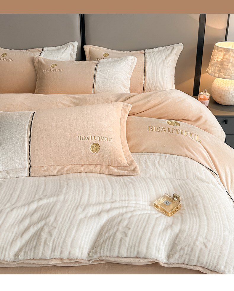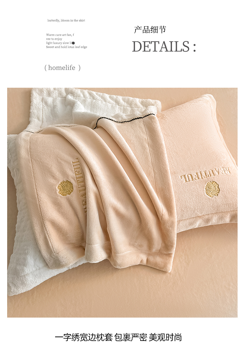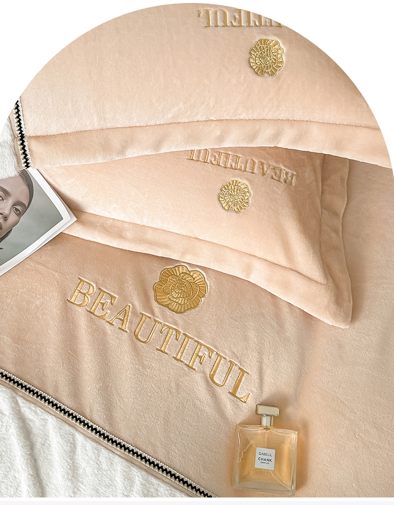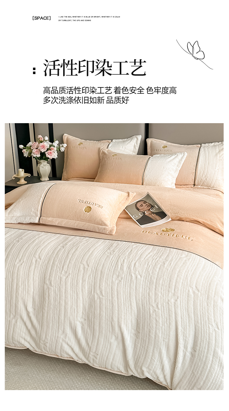 总金窝窝家纺2024重工刺绣280克A类婴儿牛奶绒刺绣四件套系列-美好生活,美好生活—粉