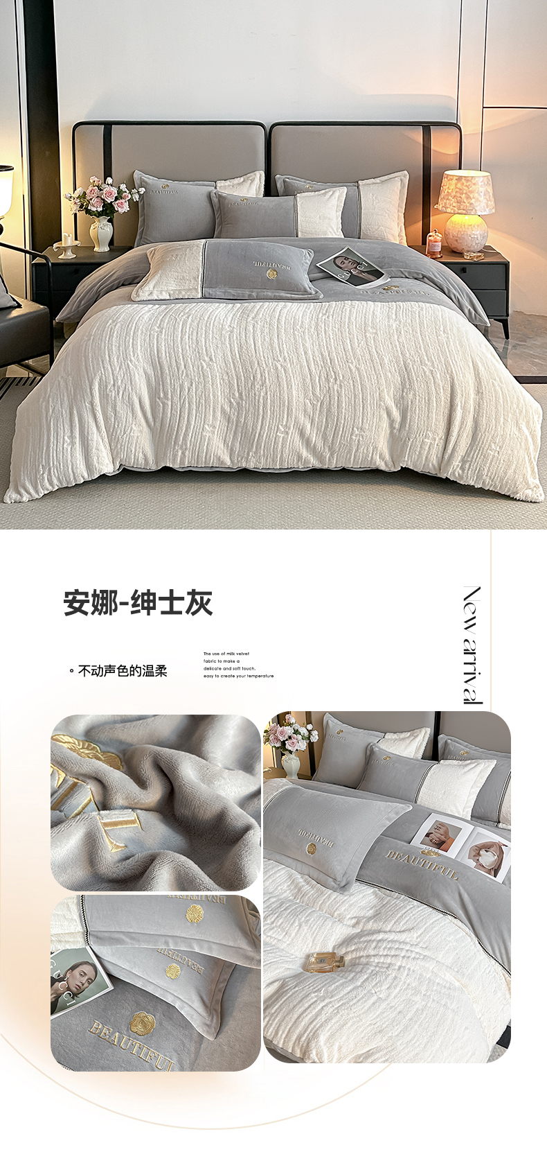 (总)金窝窝家纺 2025新款轻奢双拼全消光牛奶绒四件套-安娜,安娜-黛粉,安娜-咖色,安娜-蜜桃粉,安娜-奶油咖,安娜-浅草绿,安娜-绅士灰,安娜-香槟色