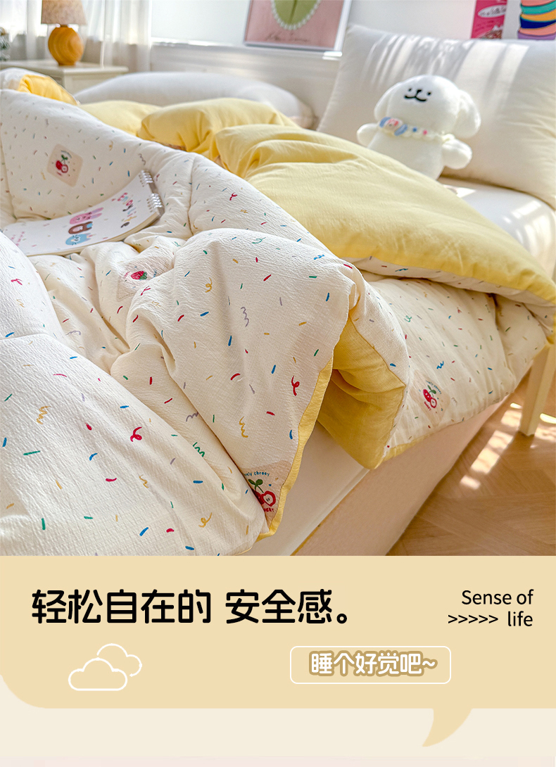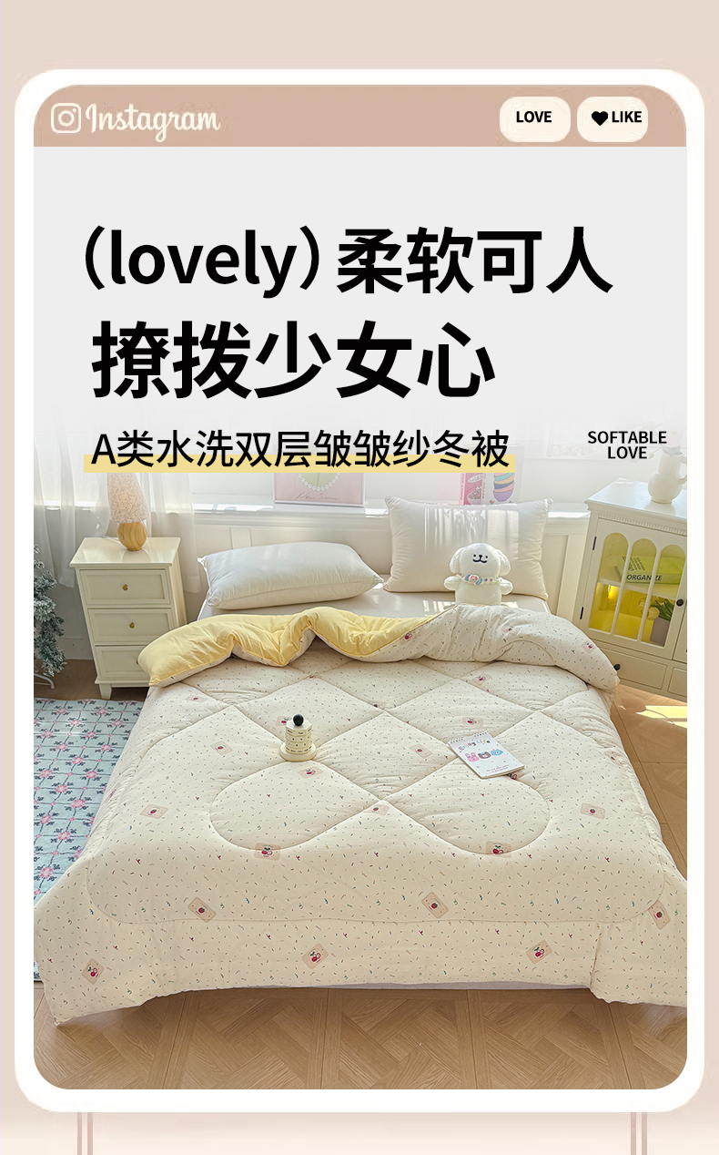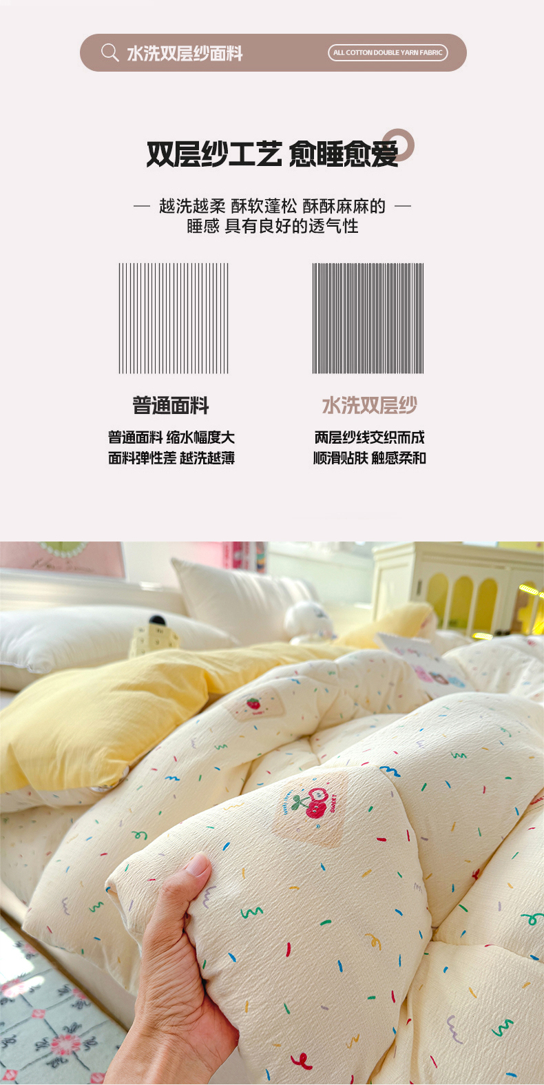 • 91家纺网 家纺一手货源 找家纺 桔禾家纺 2026新款云感有氧双层纱冬被抗菌被春秋被被子被芯 A类水洗双层皱皱纱冬被-庆祝