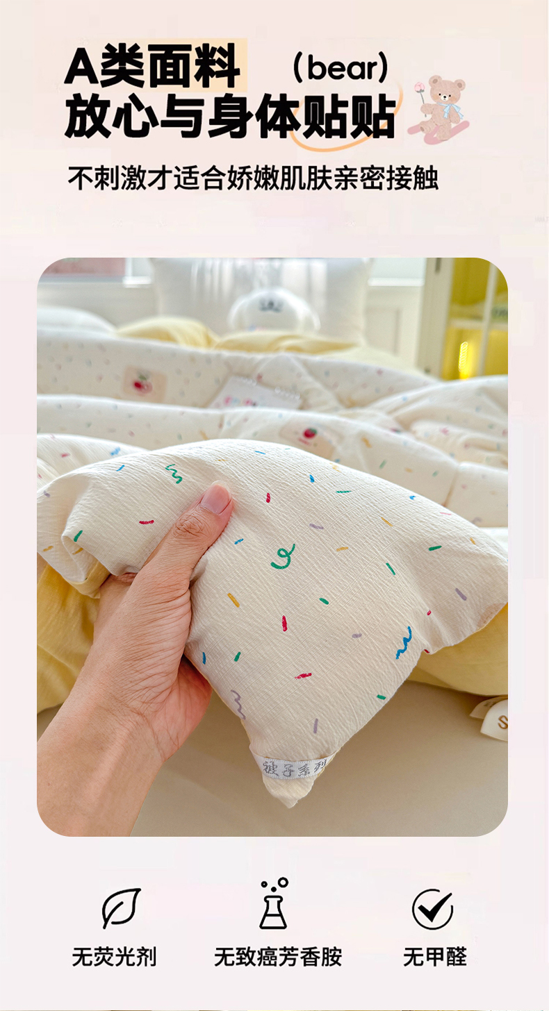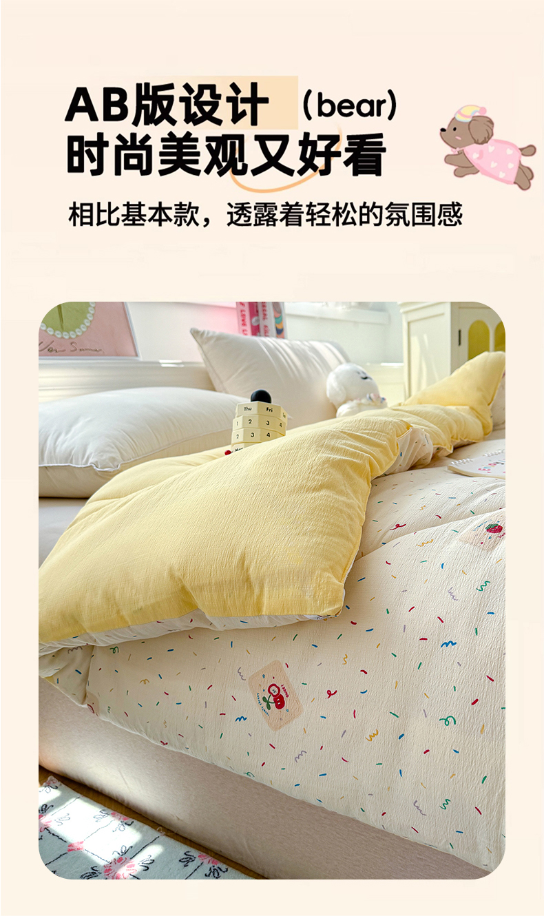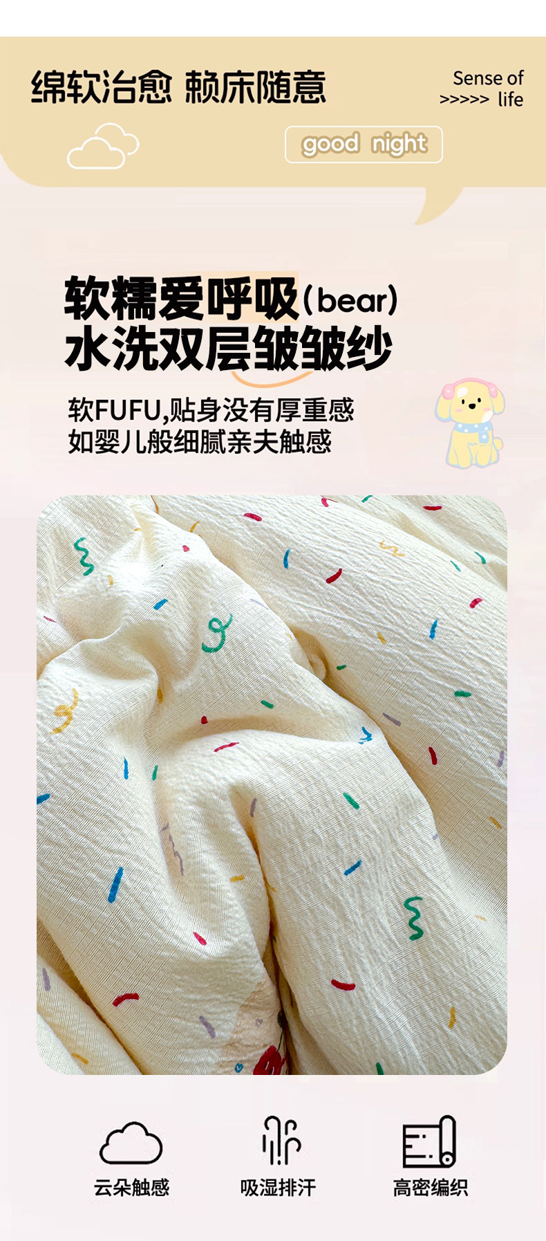 (总)桔禾家纺 2025新款小清新水洗棉有氧双层纱印花云感木棉皱皱纱四件套,春晓,蛋糕小狗,蝶恋,芳华,恋爱物语,满春庭,玫瑰心语,萌宠格子铺,萌宠来袭,千千结,巧克力饼干,斯兰,小确幸,小遇见,樱桃紫