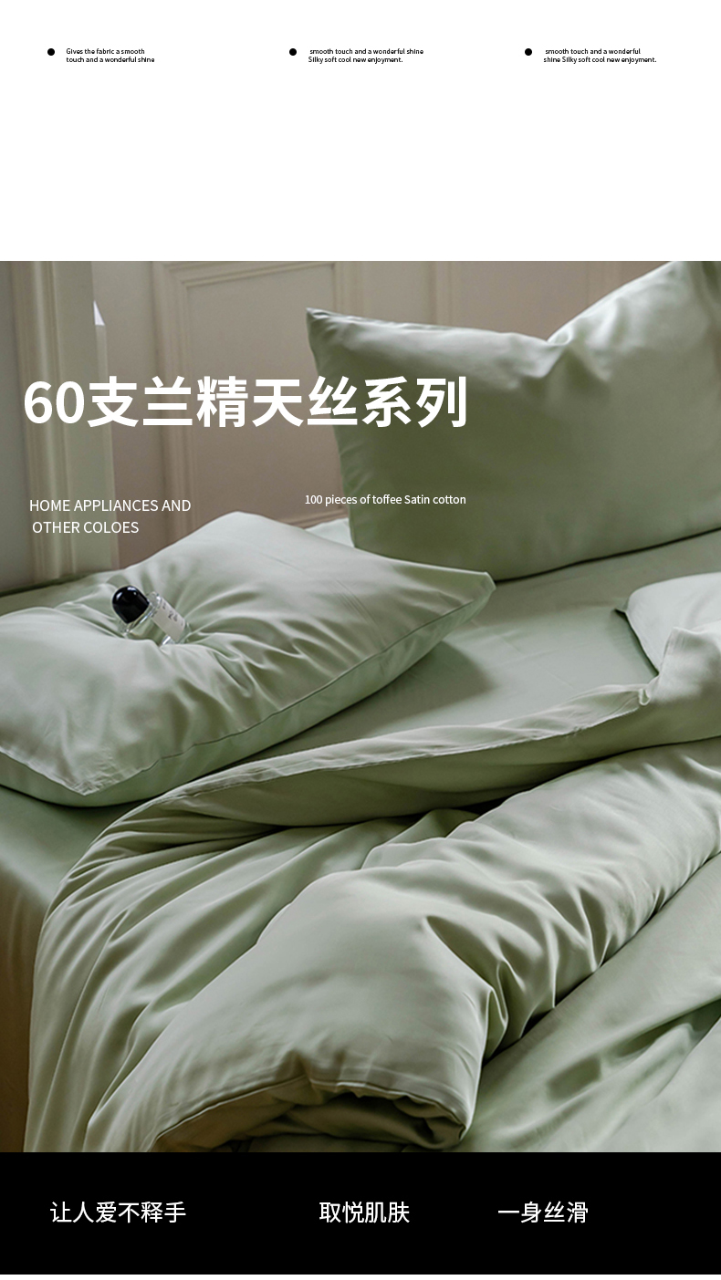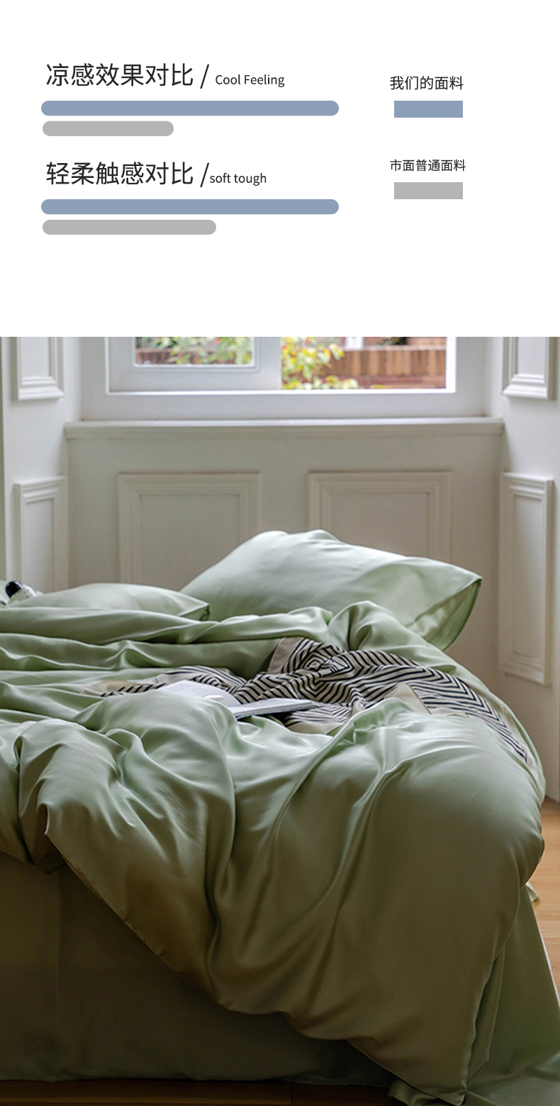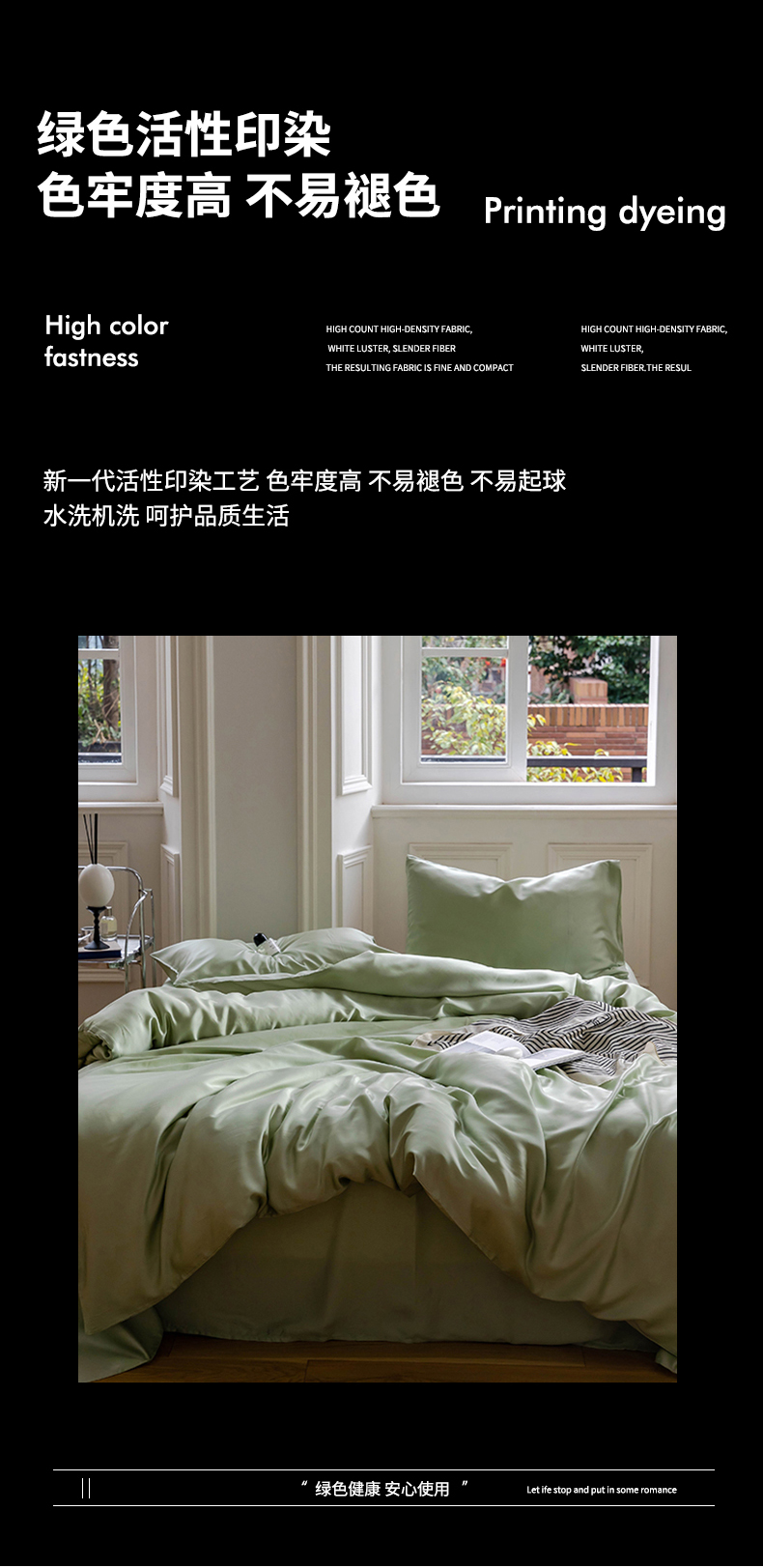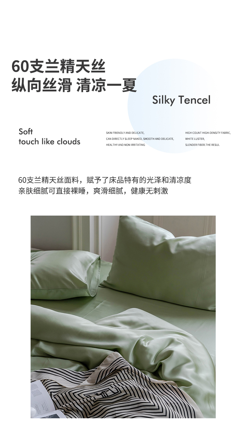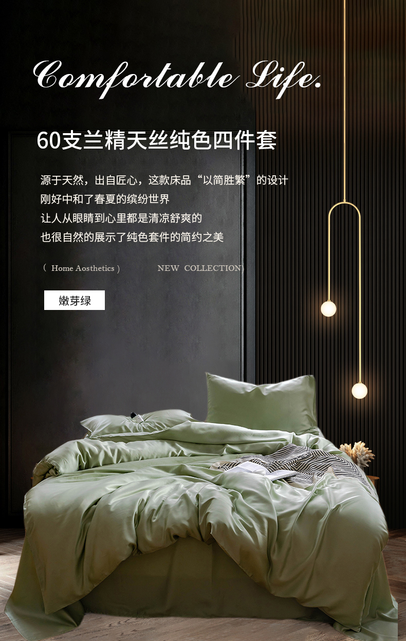 商品名称:浩情国际婚庆供货中心 2026新款60支奥地利兰精天丝纯色双拼系列四件套 嫩芽绿