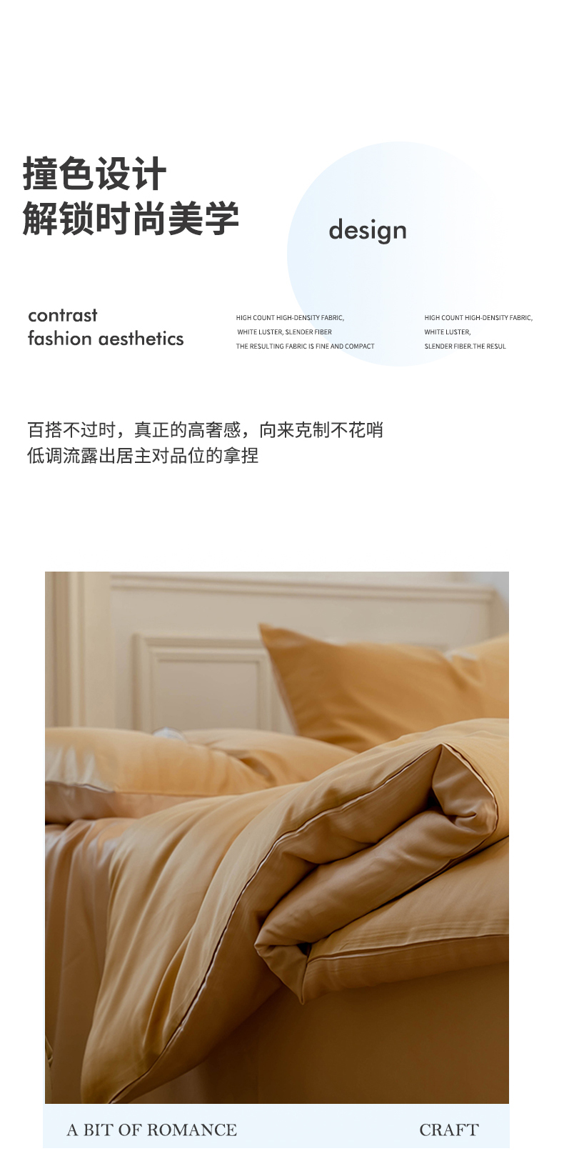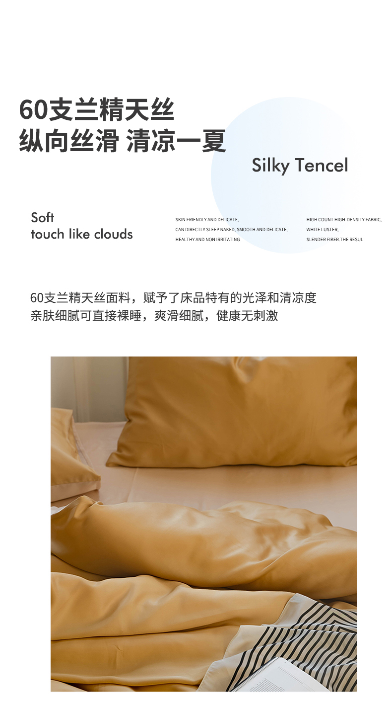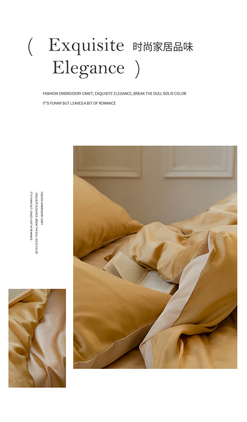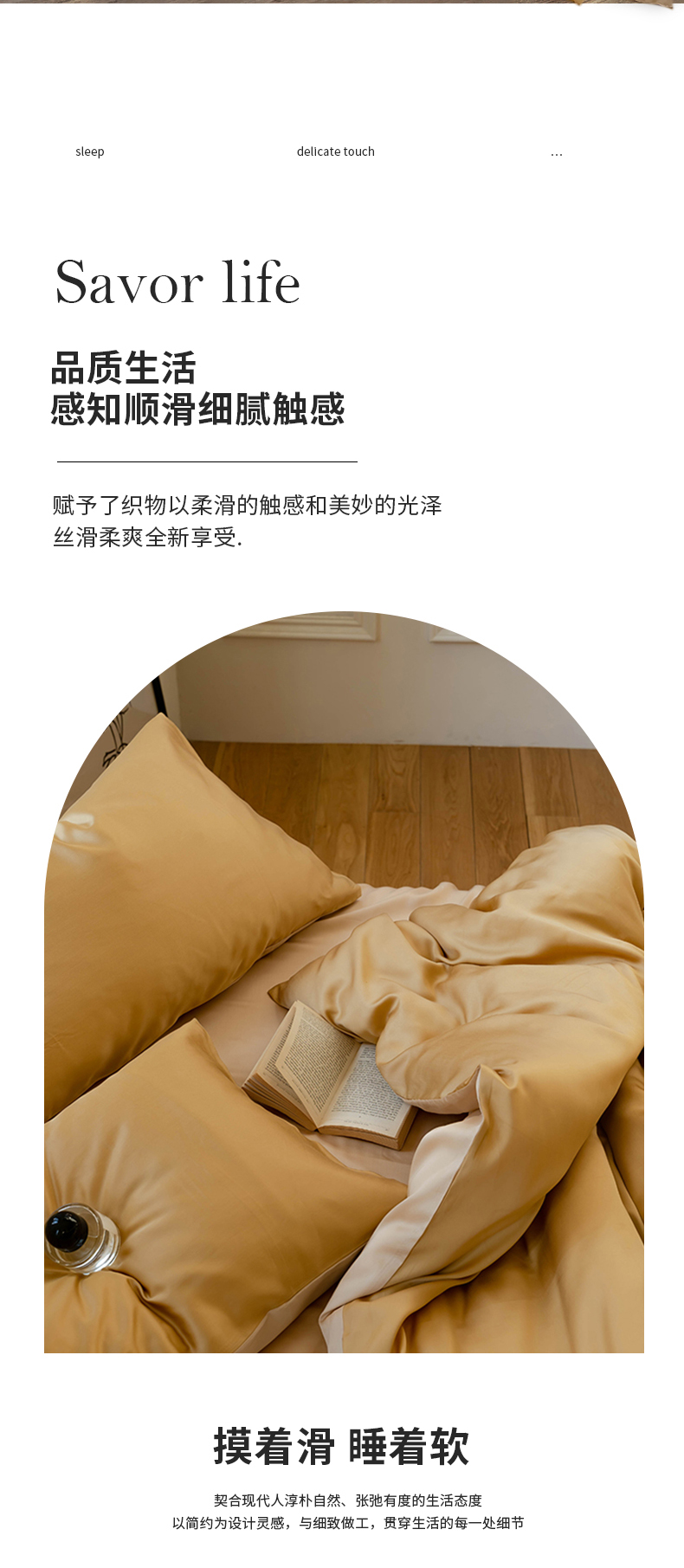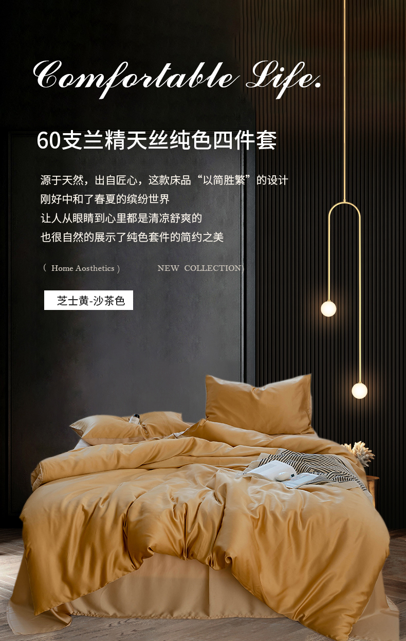 商品名称:浩情国际婚庆供货中心 2026新款60支奥地利兰精天丝纯色双拼系列四件套 芝士黄-沙茶色