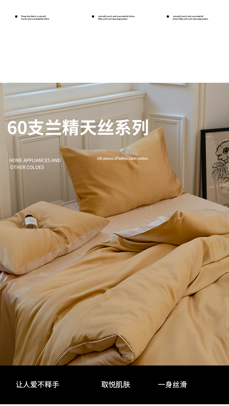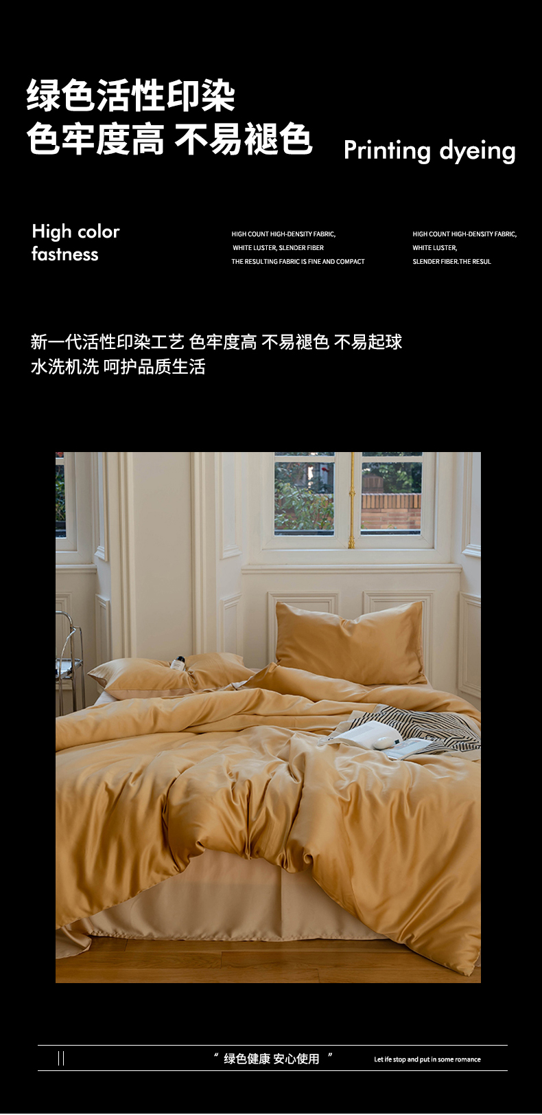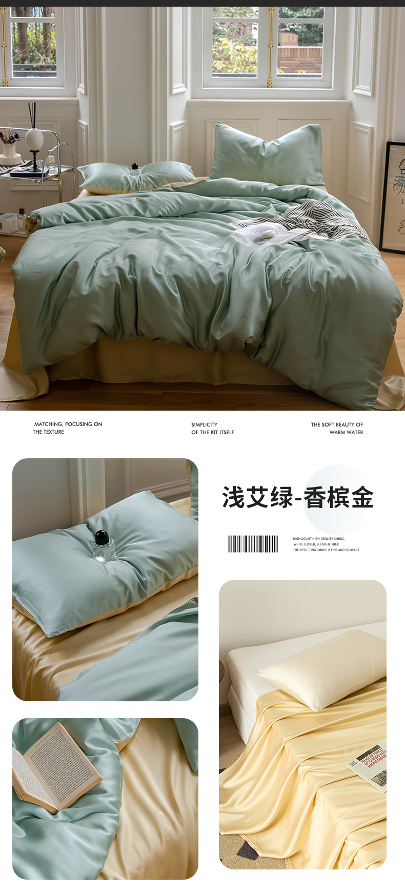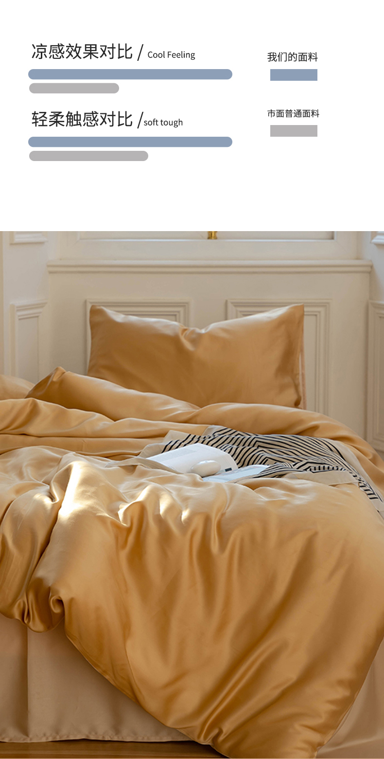 商品名称:浩情国际婚庆供货中心 2026新款60支奥地利兰精天丝纯色双拼系列四件套 芝士黄-沙茶色