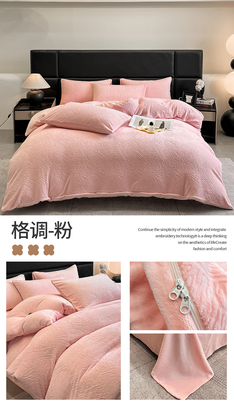 商品名称:(总)女子家纺 2025新款A类雕花牛奶绒四件套