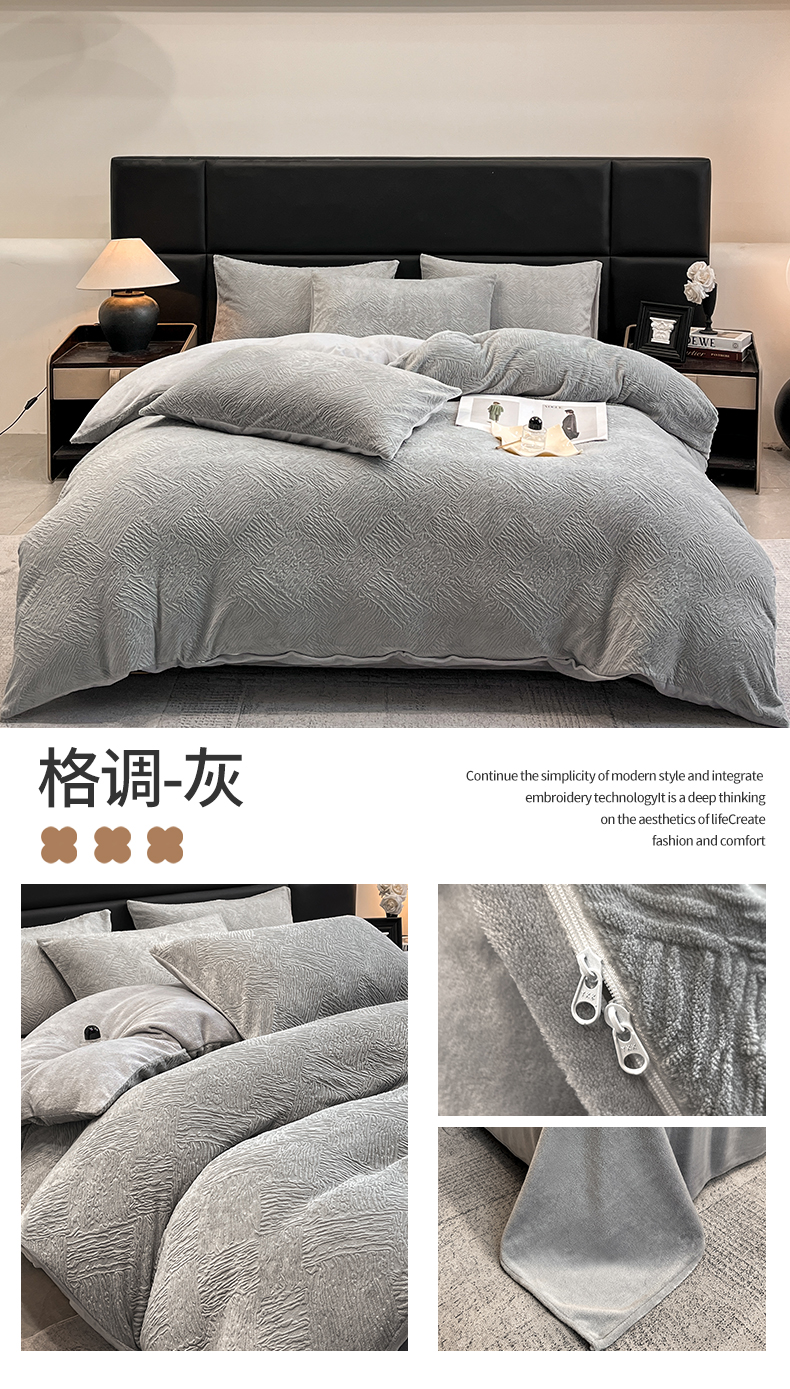 (总)女子家纺 2025新款A类雕花牛奶绒四件套