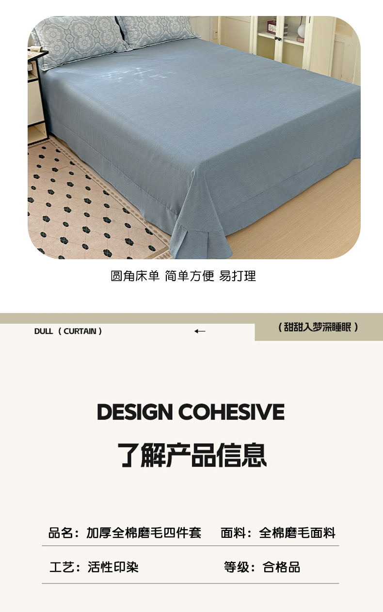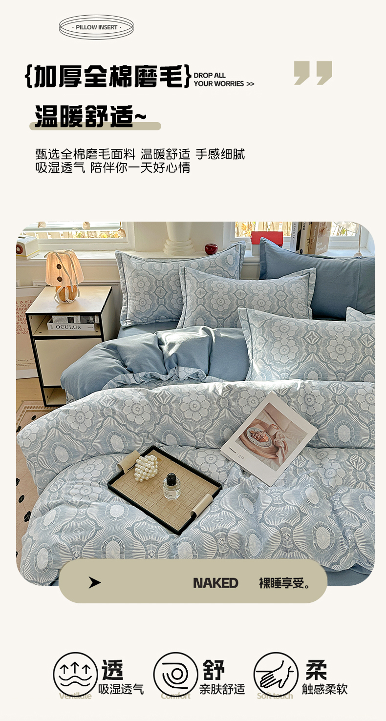 商品名称:曲之慕 2026新款全棉纯棉加厚喷气磨毛印花四件套 絮语