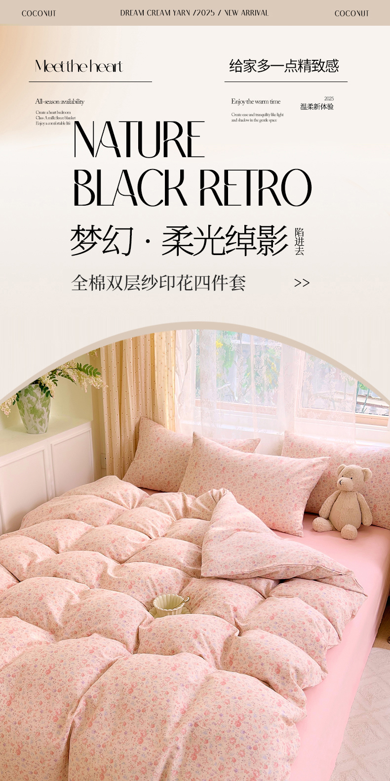 当前位置: 91家纺网 > 商品网购 > 床品套件 > 四件套 > 全棉普通四件套 > DoDo 兜兜 2026新款全棉纯棉柔软双层纱套件系列(可定做尺寸) 木兮