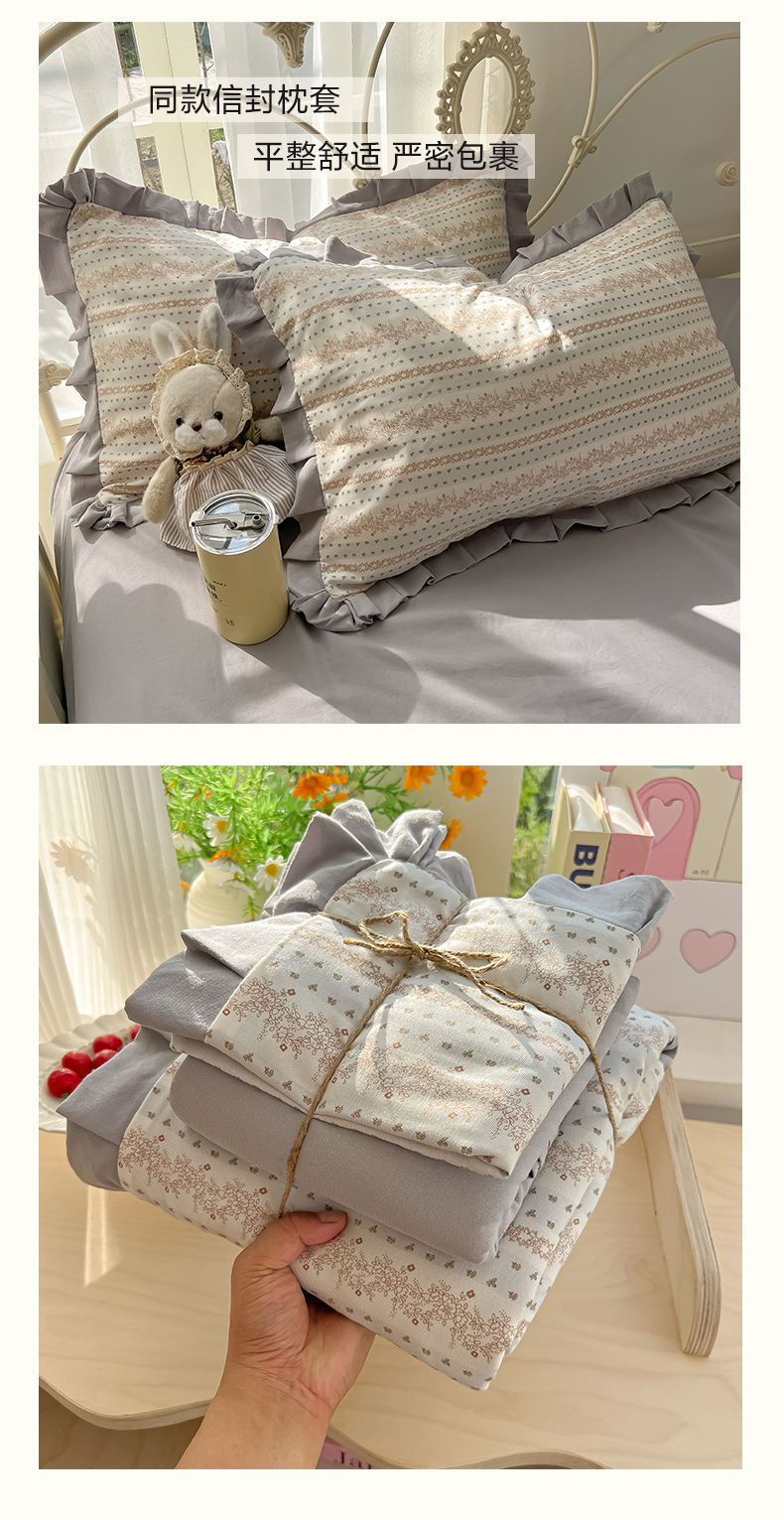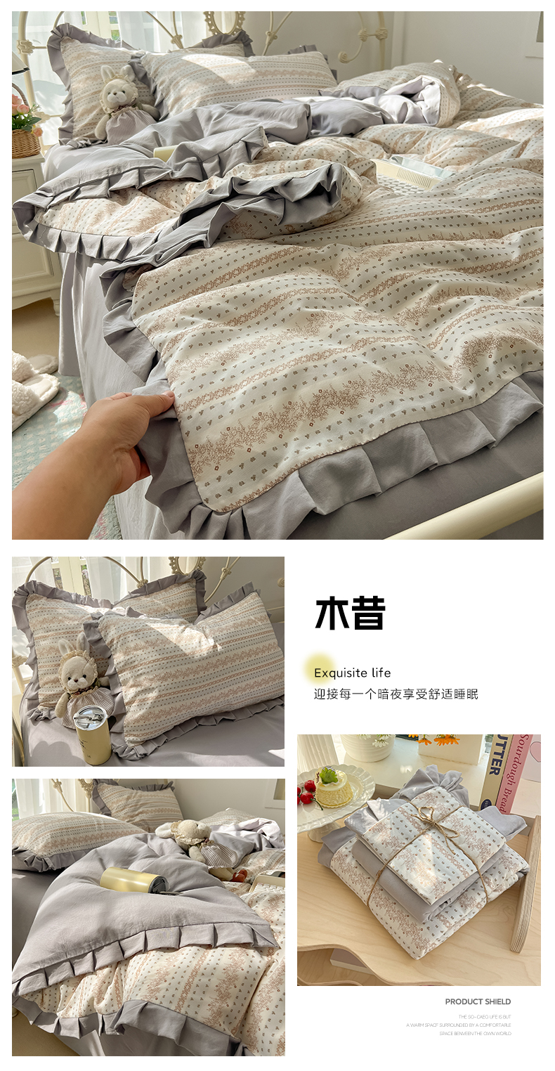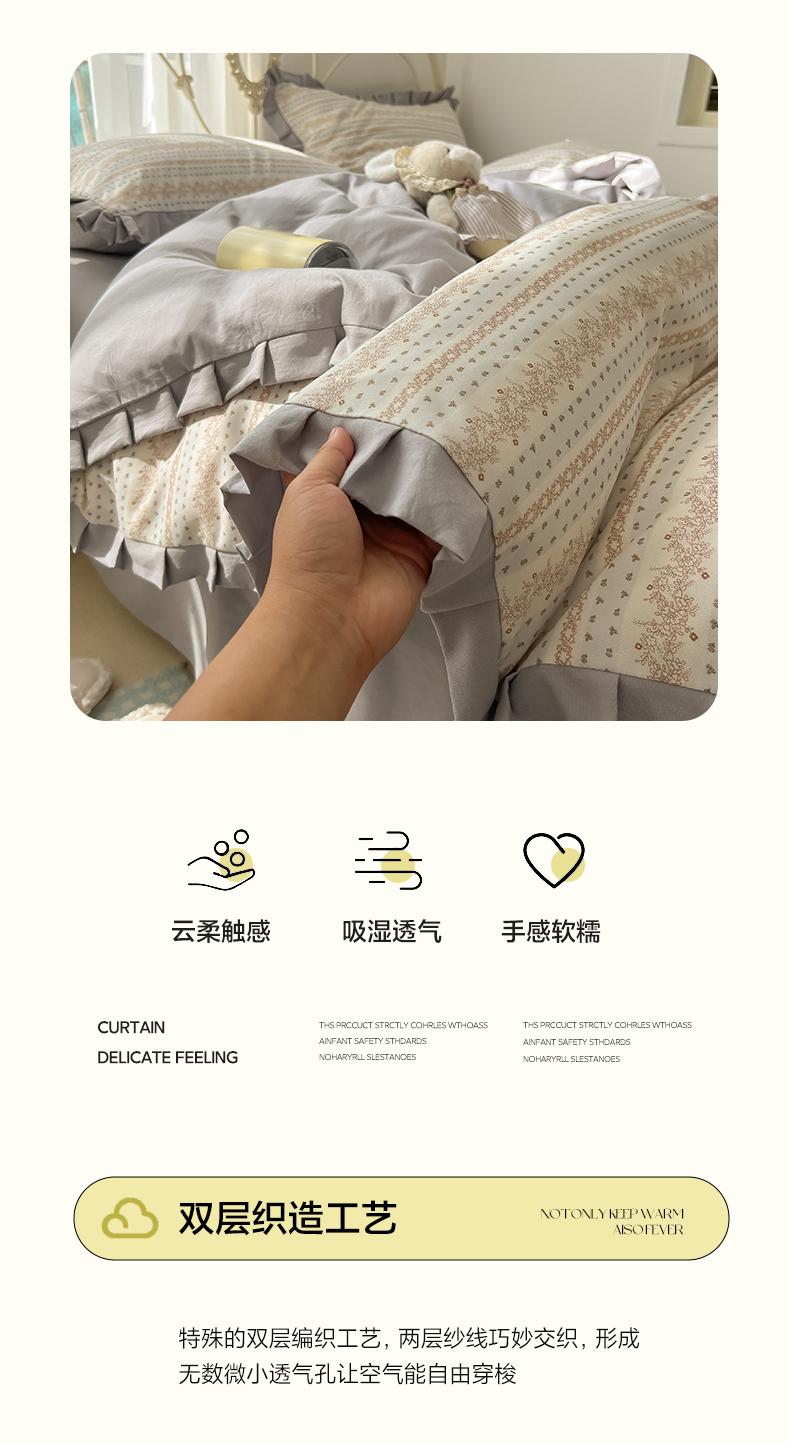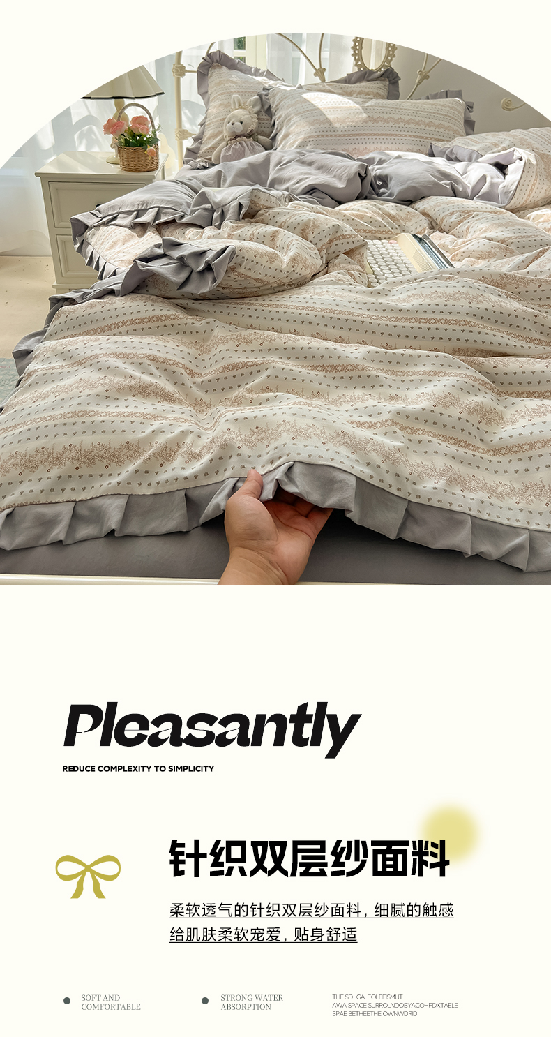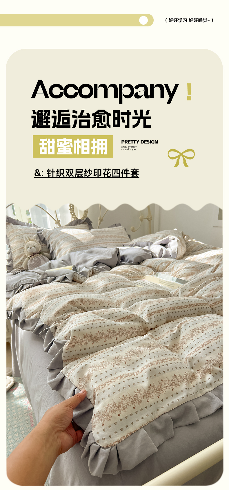 当前位置: 91家纺网 > 商品网购 > 床品套件 > 四件套 > 双层纱四件套 > 韩巢家纺 2026新款花边款针织双层纱四件套 木昔