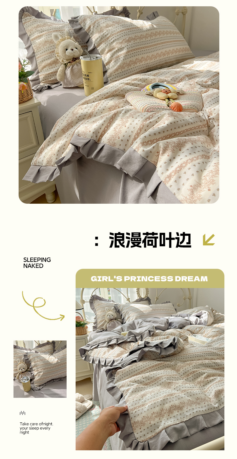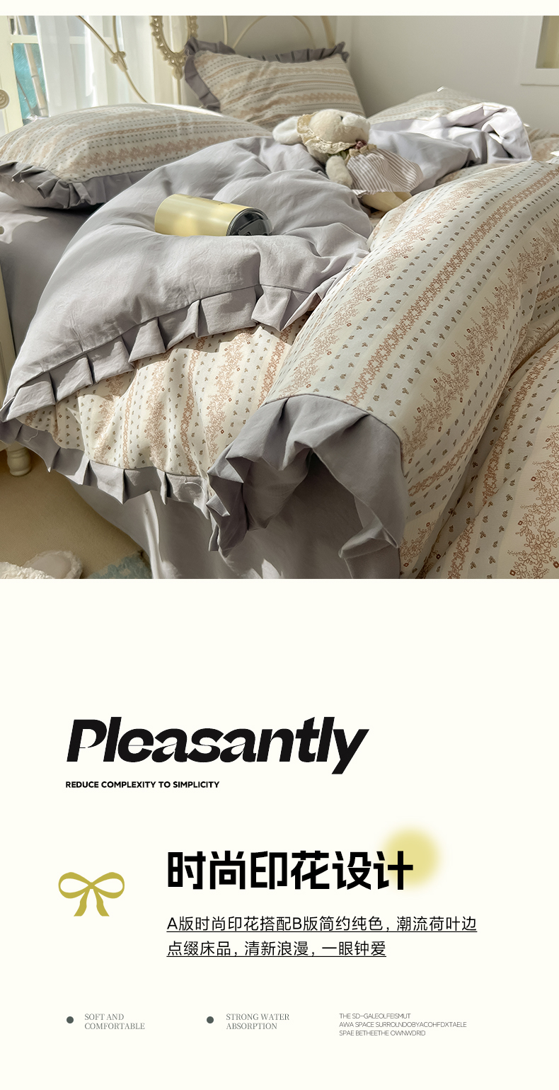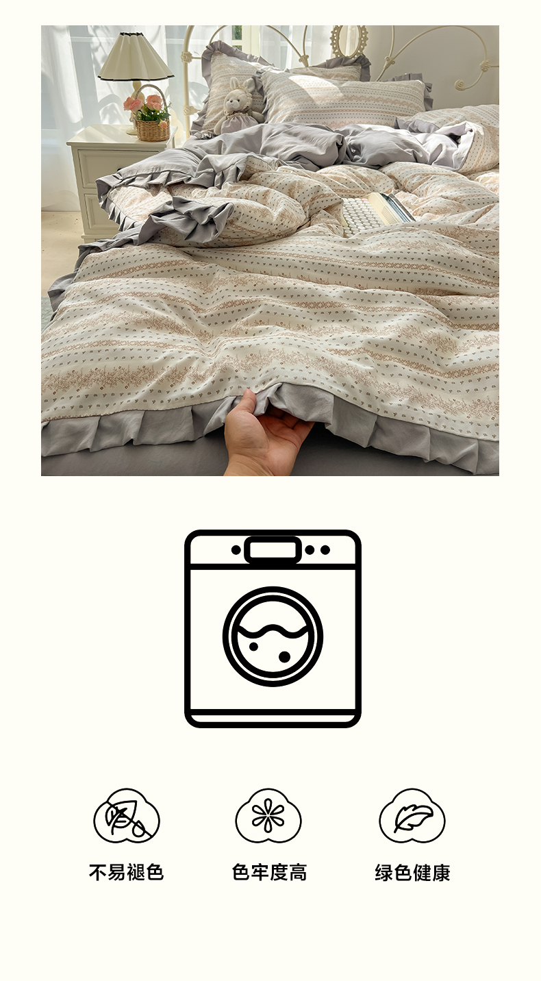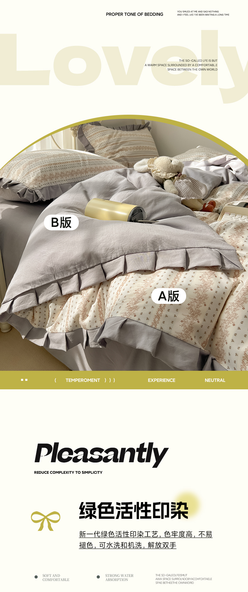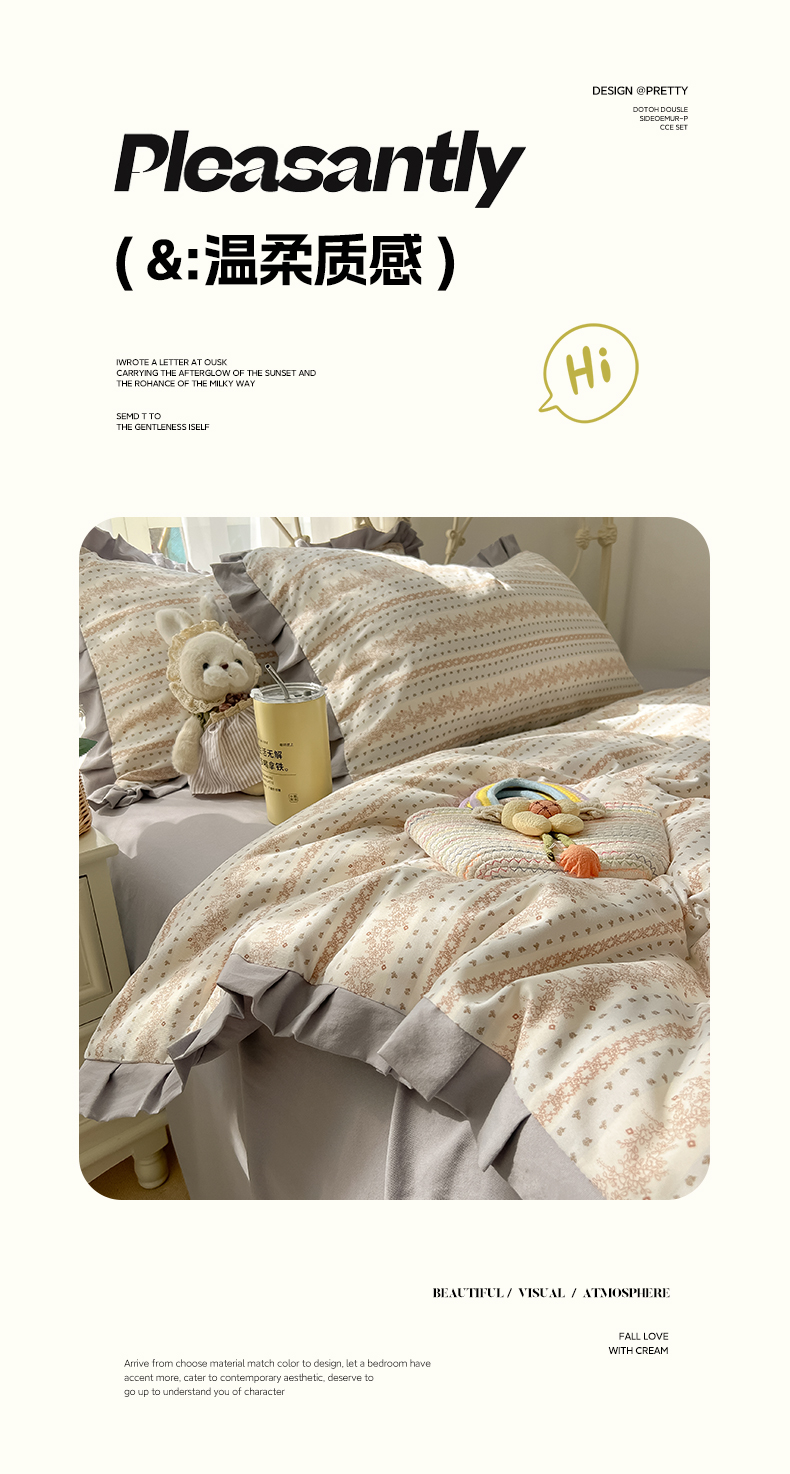 当前位置: 91家纺网 > 商品网购 > 床品套件 > 四件套 > 双层纱四件套 > 韩巢家纺 2026新款花边款针织双层纱四件套 木昔