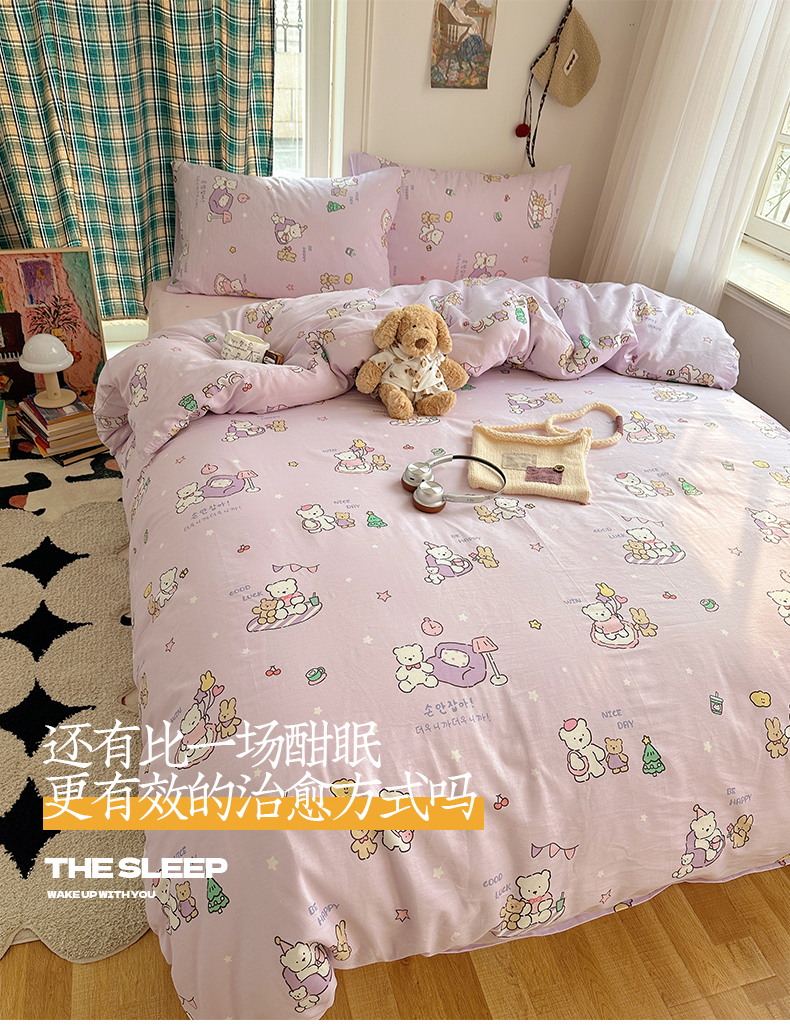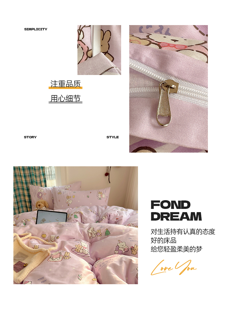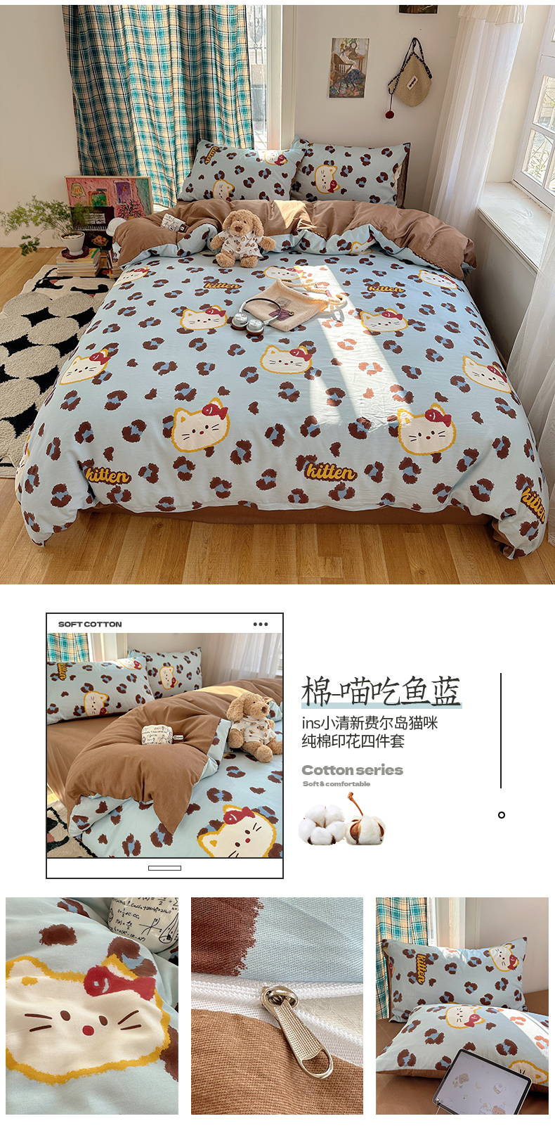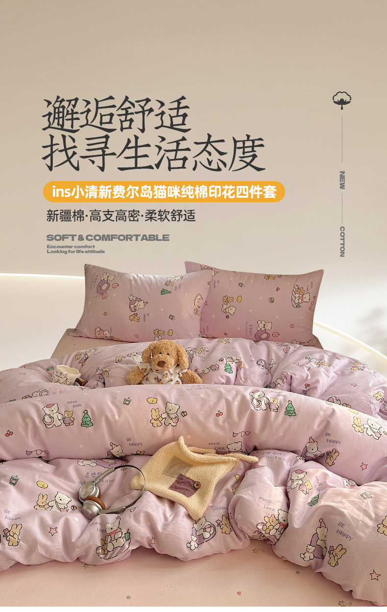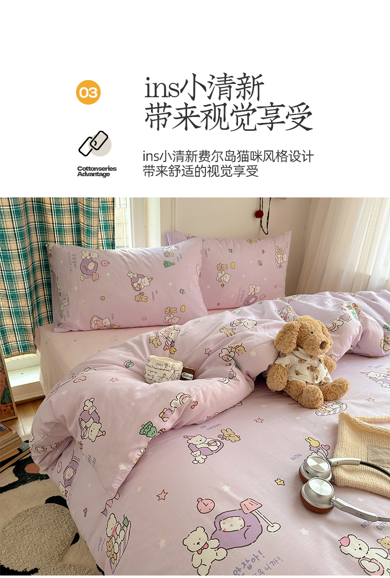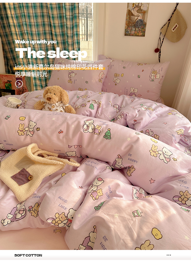 当前位置: 91家纺网 > 商品网购 > 床品套件 > 四件套 > 全棉普通四件套 > 桃子家居 2026新款ins小清新费尔岛猫咪全棉纯棉印花四件套 棉-美好熊兔