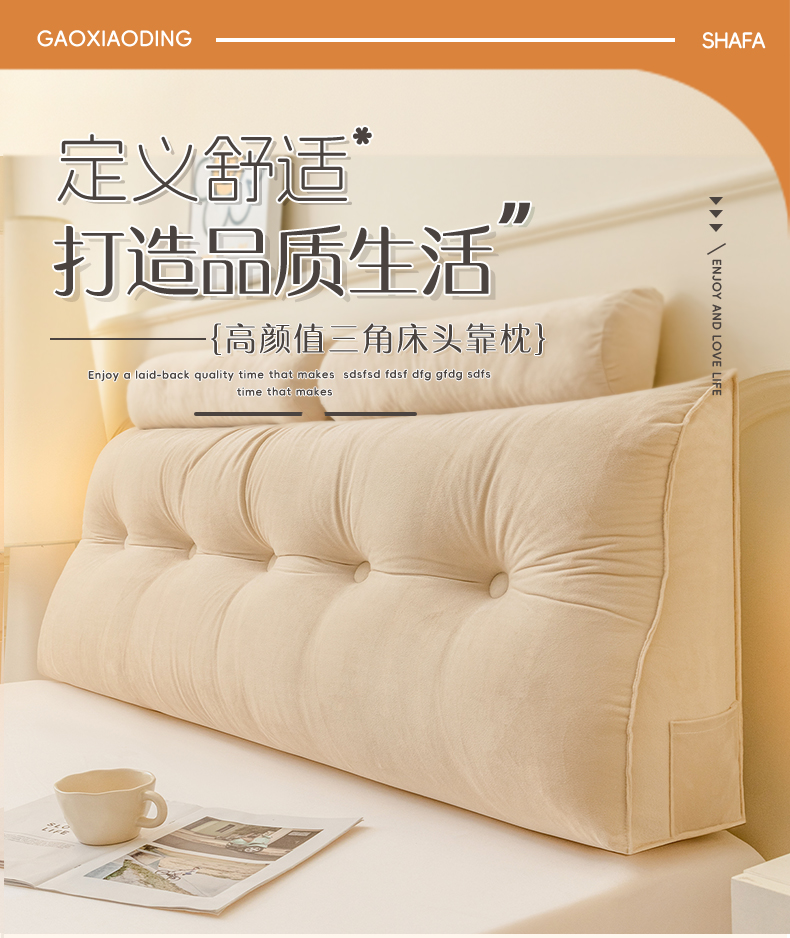 (总)碧尔家居 2025新款床头靠垫三角床上靠枕卧室榻榻米软包双人大靠背免拆洗,米黄,浅粉,浅蓝,深灰,银灰