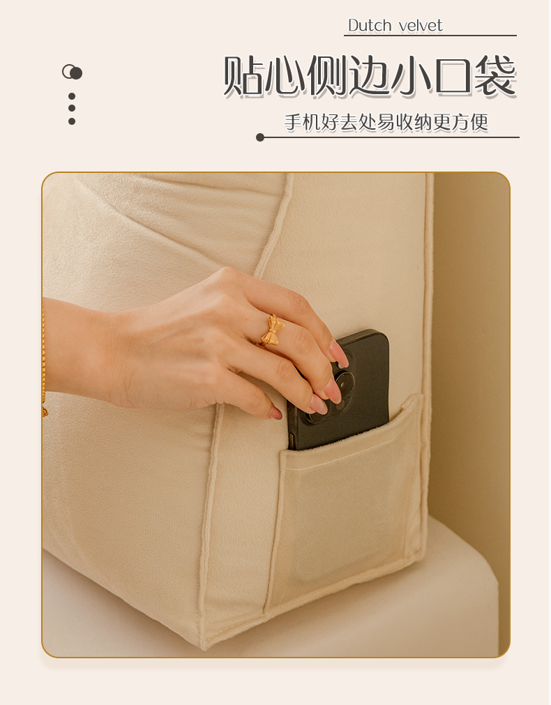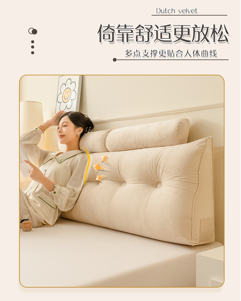 商品名称:碧尔家居 2025新款荷兰绒弯型三角+头枕床头靠背 香槟