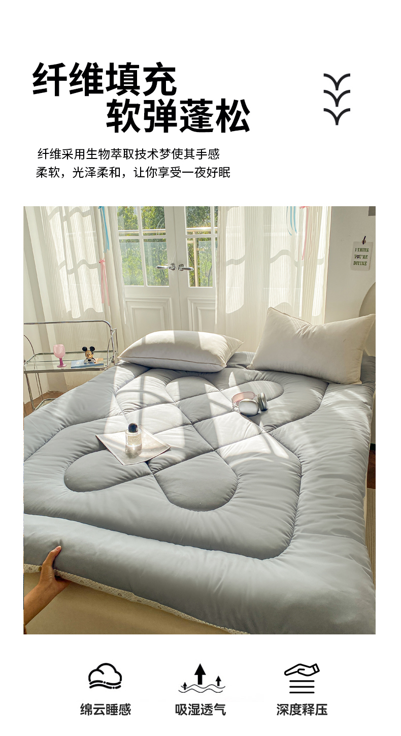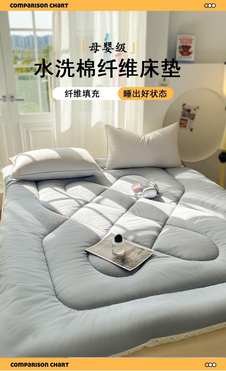 • 91家纺网 家纺一手货源 找家纺 缦卡琳家纺 2025新款水洗棉纤维羽丝棉床垫 高级灰
