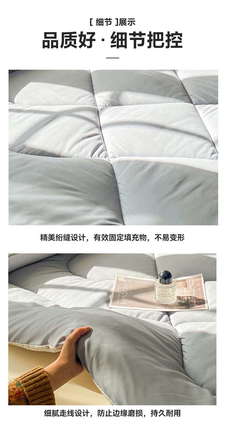 当前位置: 91家纺网 > 商品网购 > 床垫/床褥 > 缦卡琳家纺 2025新款水洗棉纤维羽丝棉床垫 高级灰