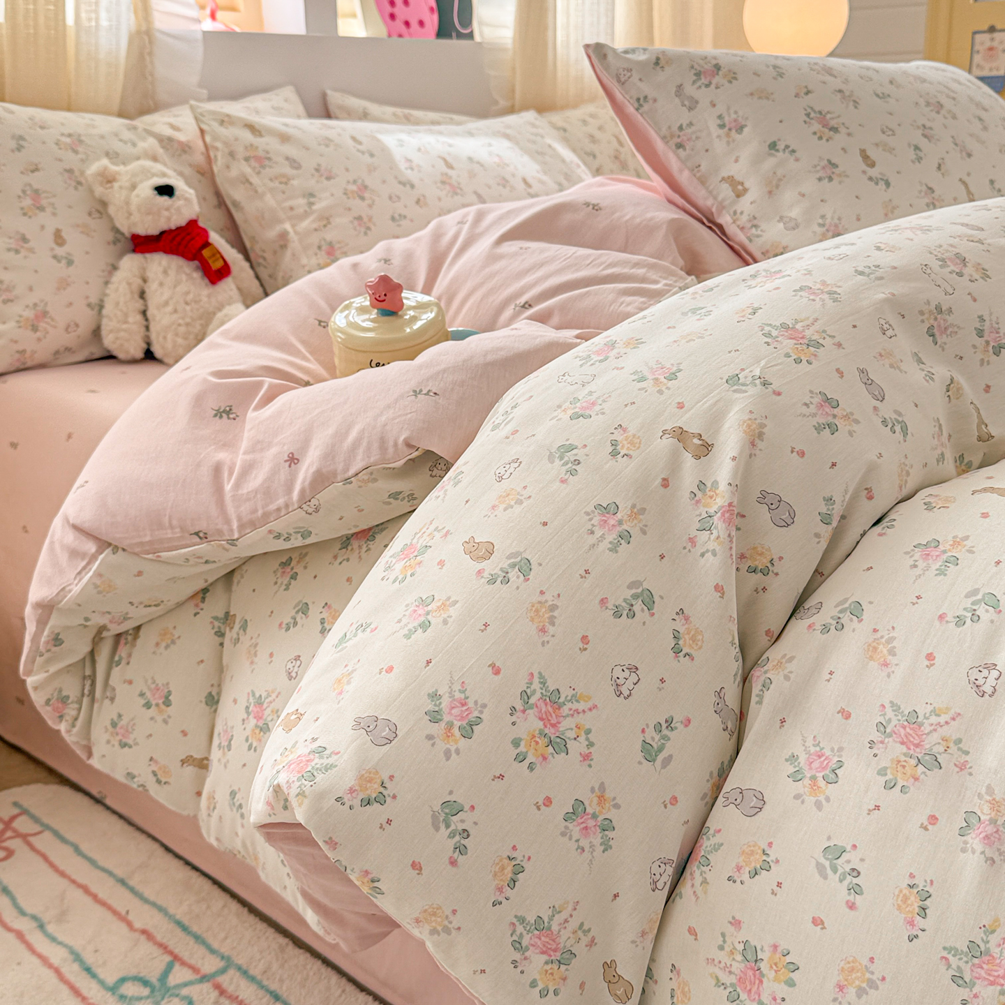 (总)呗旺鹿 2026新款全棉撞色双层纱四件套,双层纱-喜喜兔,双层纱-费尔岛小熊,双层纱-姜饼人,双层纱-魔法兔,双层纱-千禧马,双层纱-雪花小狗,双层纱-萌星