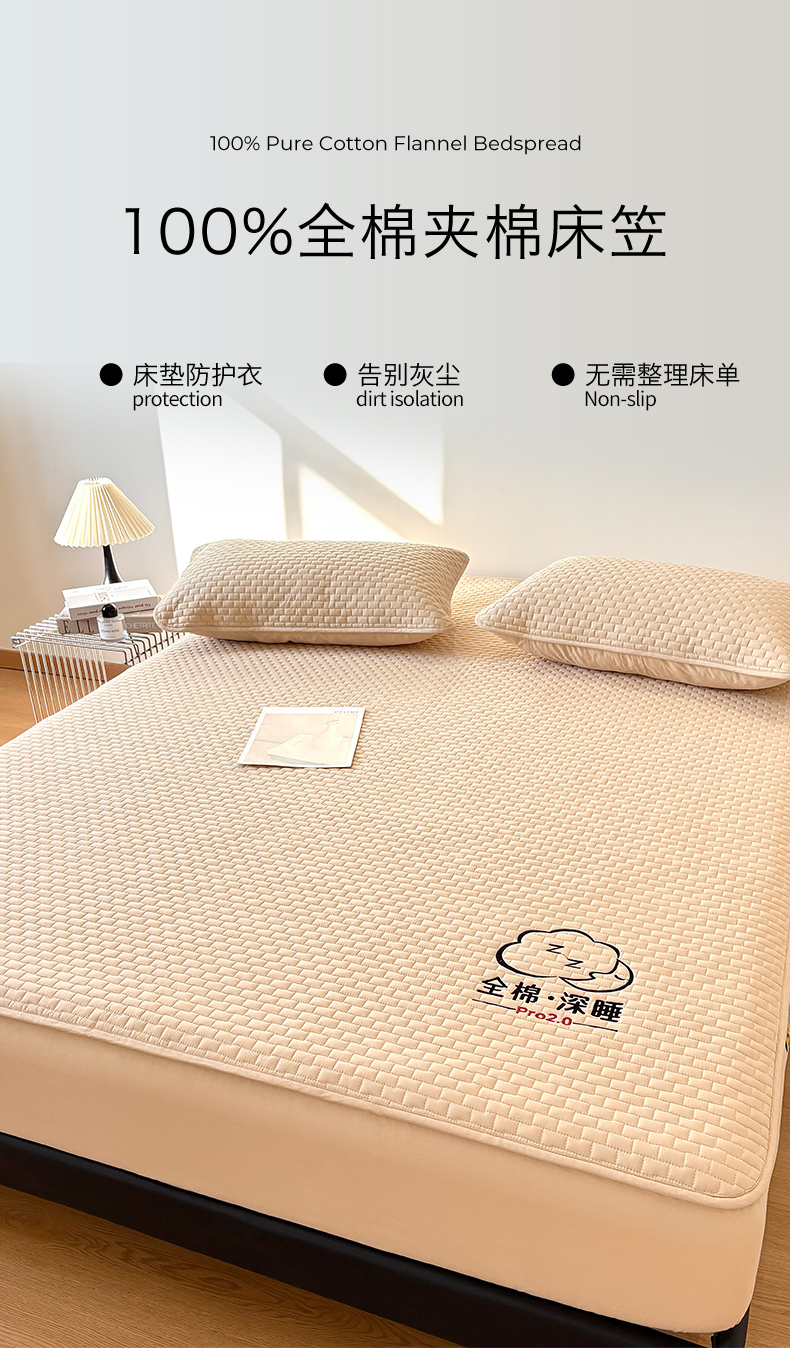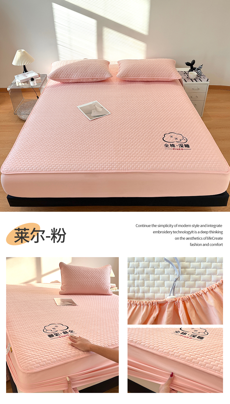 • 91家纺网 家纺一手货源 找家纺 居眠 2026新款莱尔-全棉深睡夹棉床笠 莱尔-粉