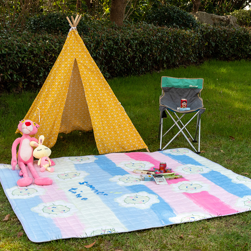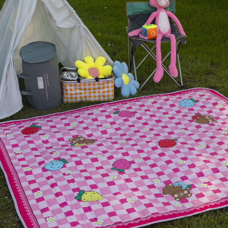 欣宜家纺 2025新款ins风加厚绗缝防泼水野餐垫 粉格草莓