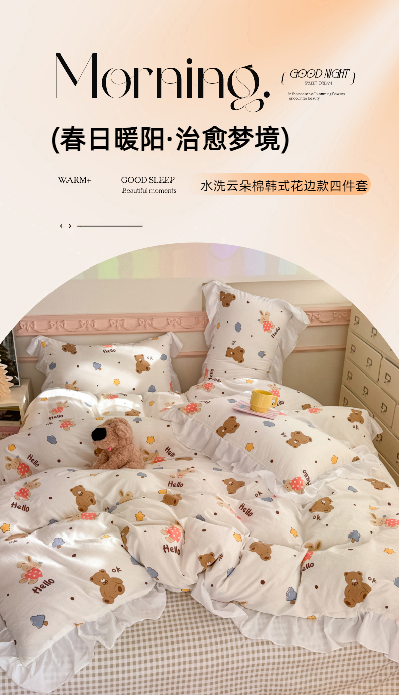 (总)温眠家纺 2025新款水洗云朵棉韩式INS减龄花边款四件套