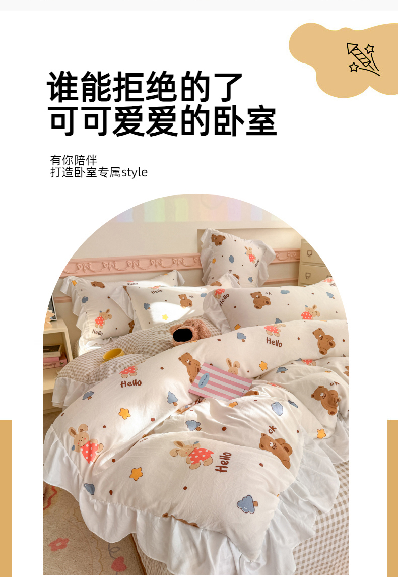 商品名称:(总)温眠家纺 2025新款水洗云朵棉韩式INS减龄花边款四件套