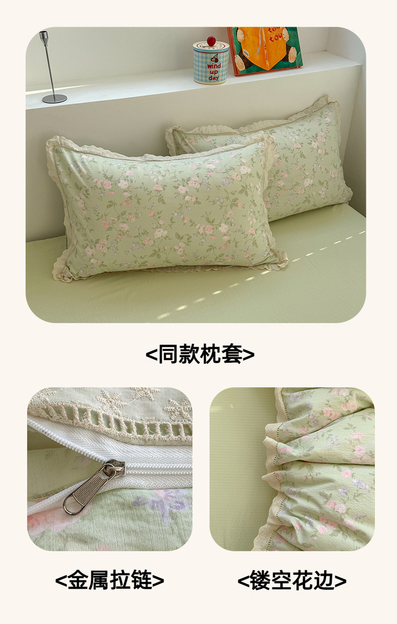 当前位置: 91家纺网 > 商品网购 > 床品套件 > 四件套 > 双层纱四件套 > 温眠家纺 2025直播新款云感双层纱镂空花边四件套 木槿绿