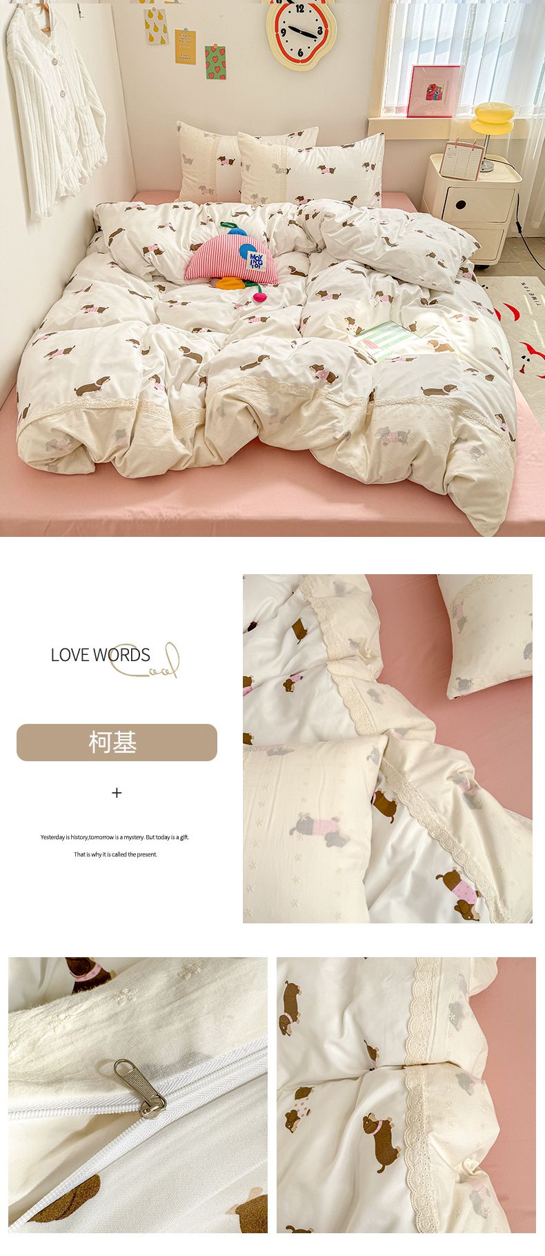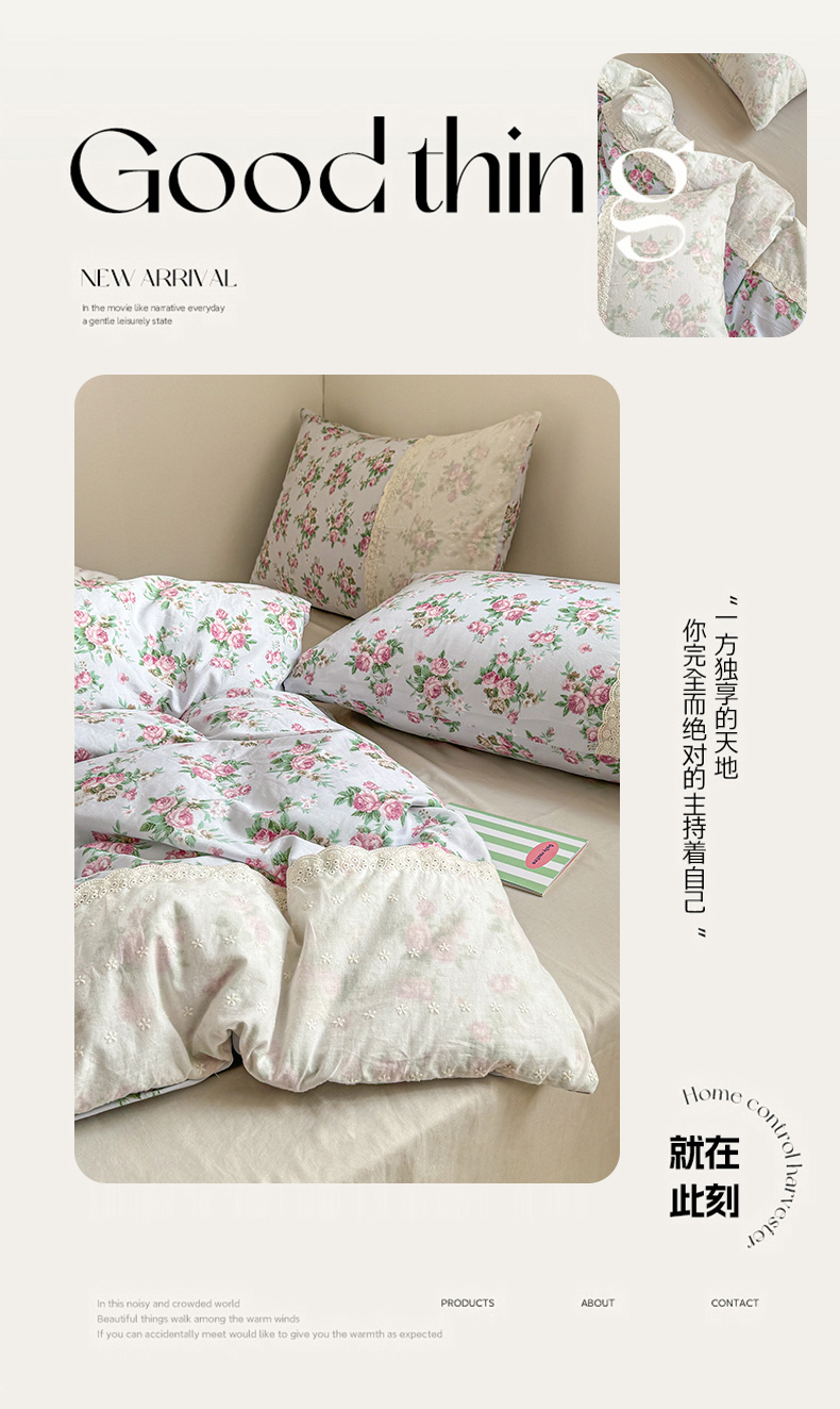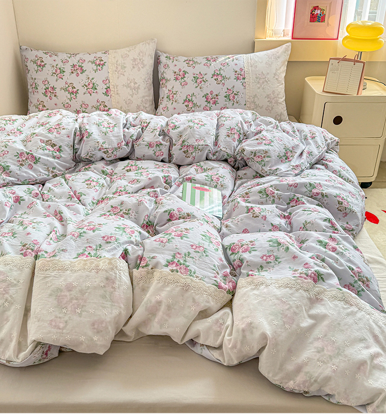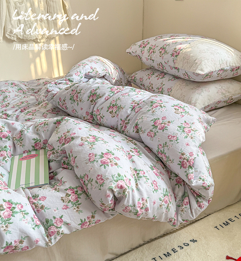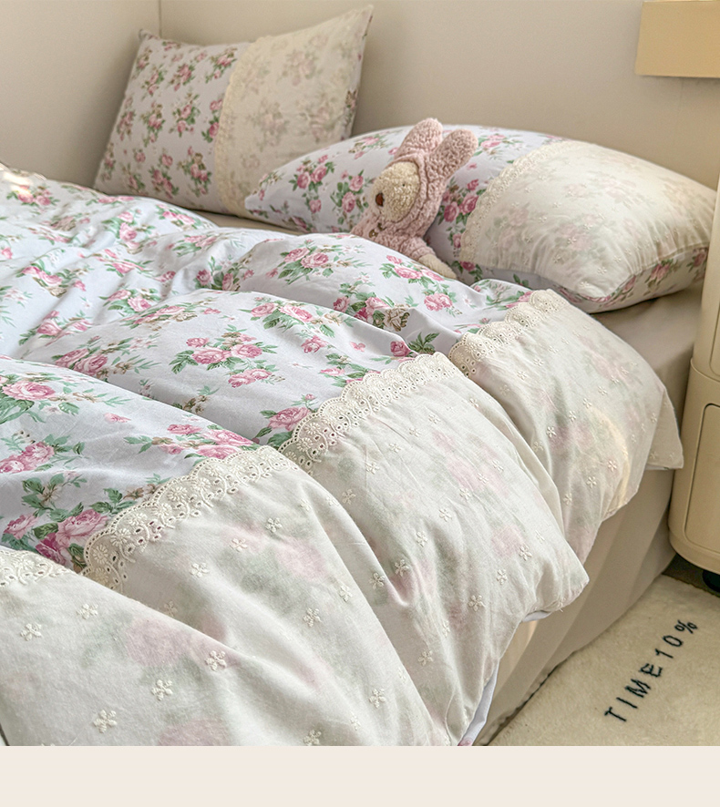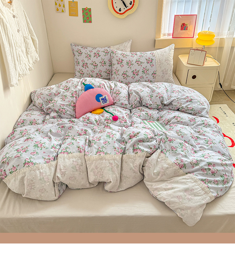 当前位置: 91家纺网 > 商品网购 > 床品套件 > 四件套 > 水洗棉四件套 > 温眠家纺 2025新款ins风小清新镂空花边水洗云朵棉四件套-风格二 春之语