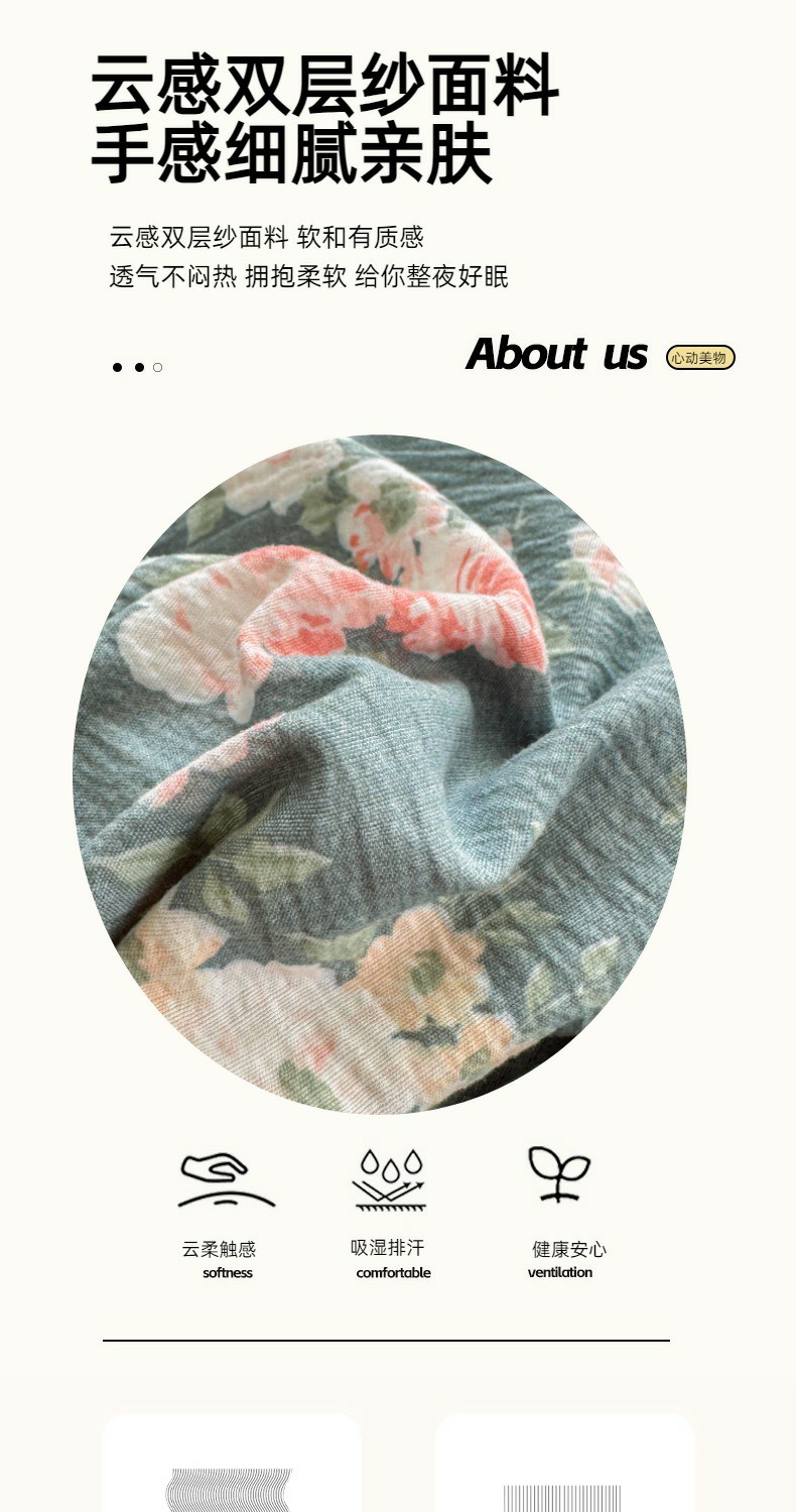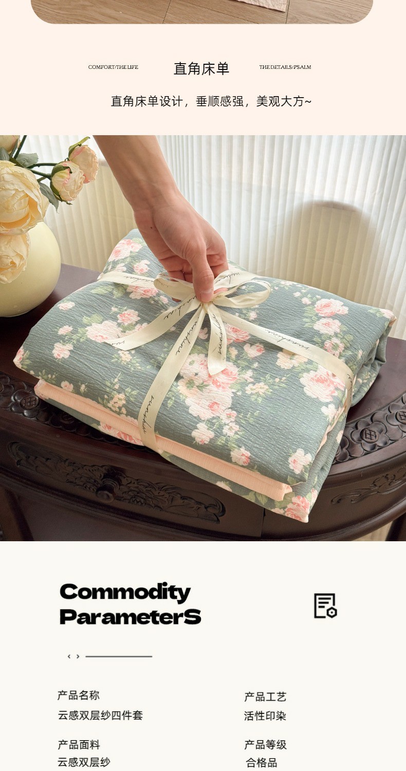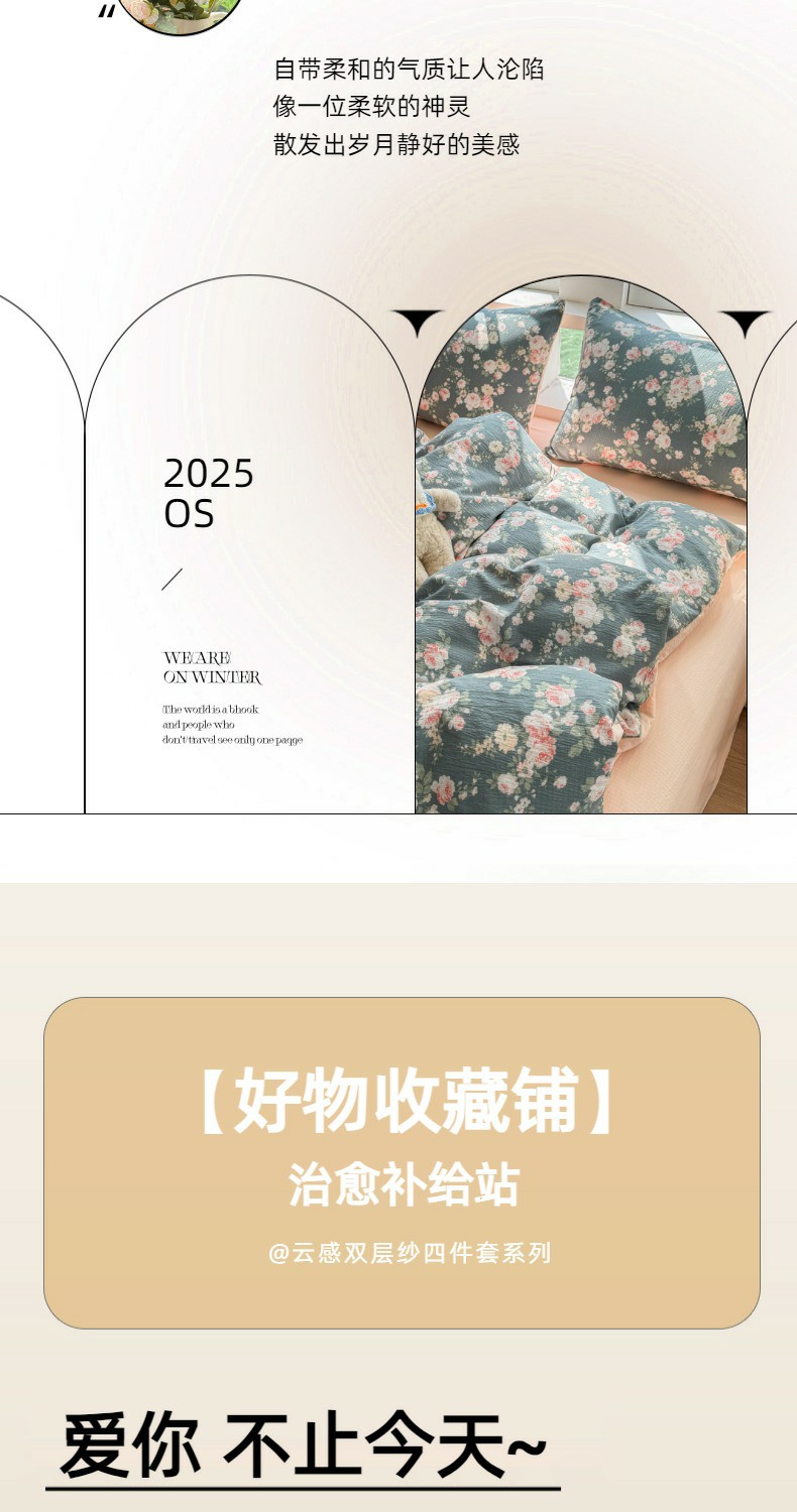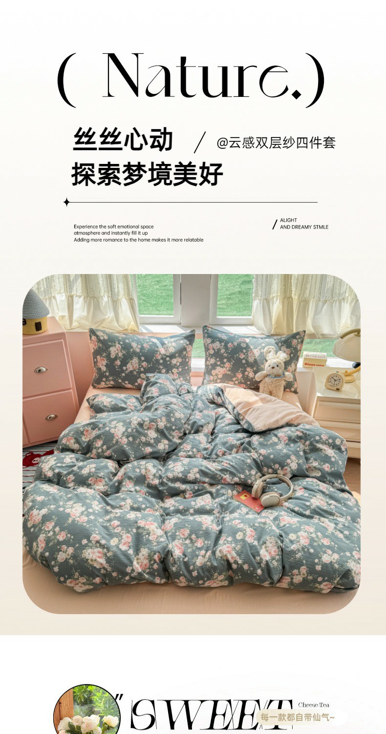 当前位置: 91家纺网 > 商品网购 > 床品套件 > 四件套 > 双层纱四件套 > 温眠家纺 2025新款云感针织双层纱四件套 花簇