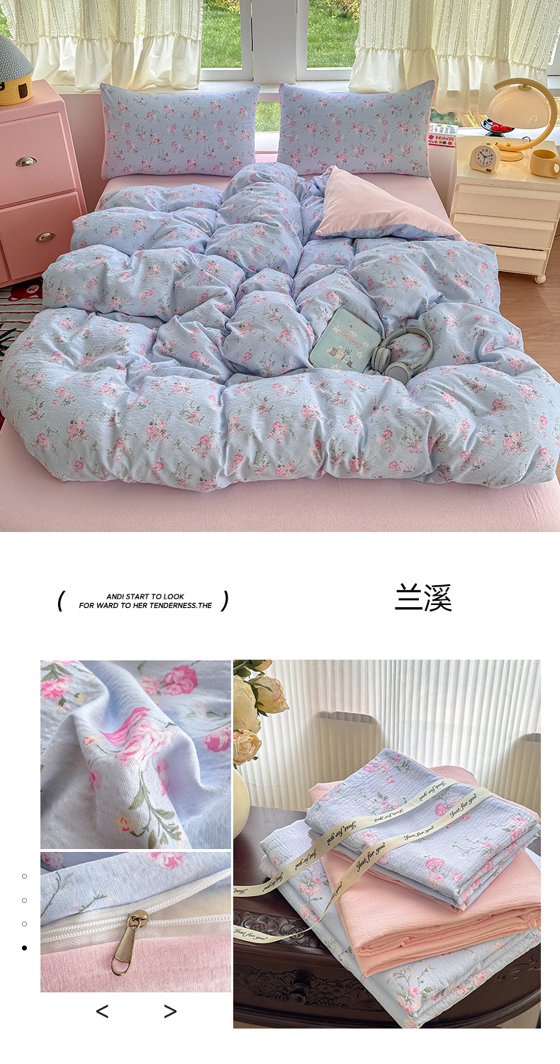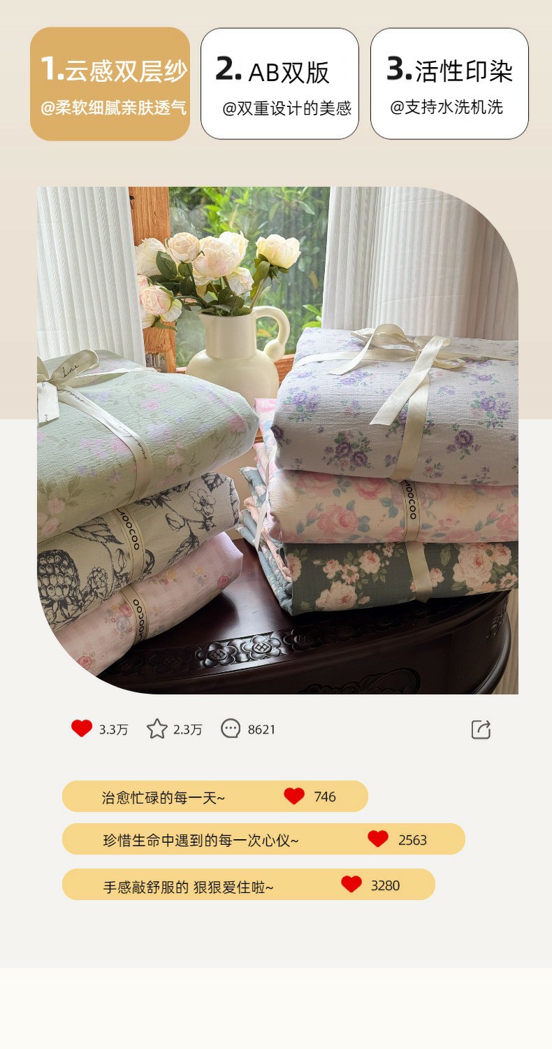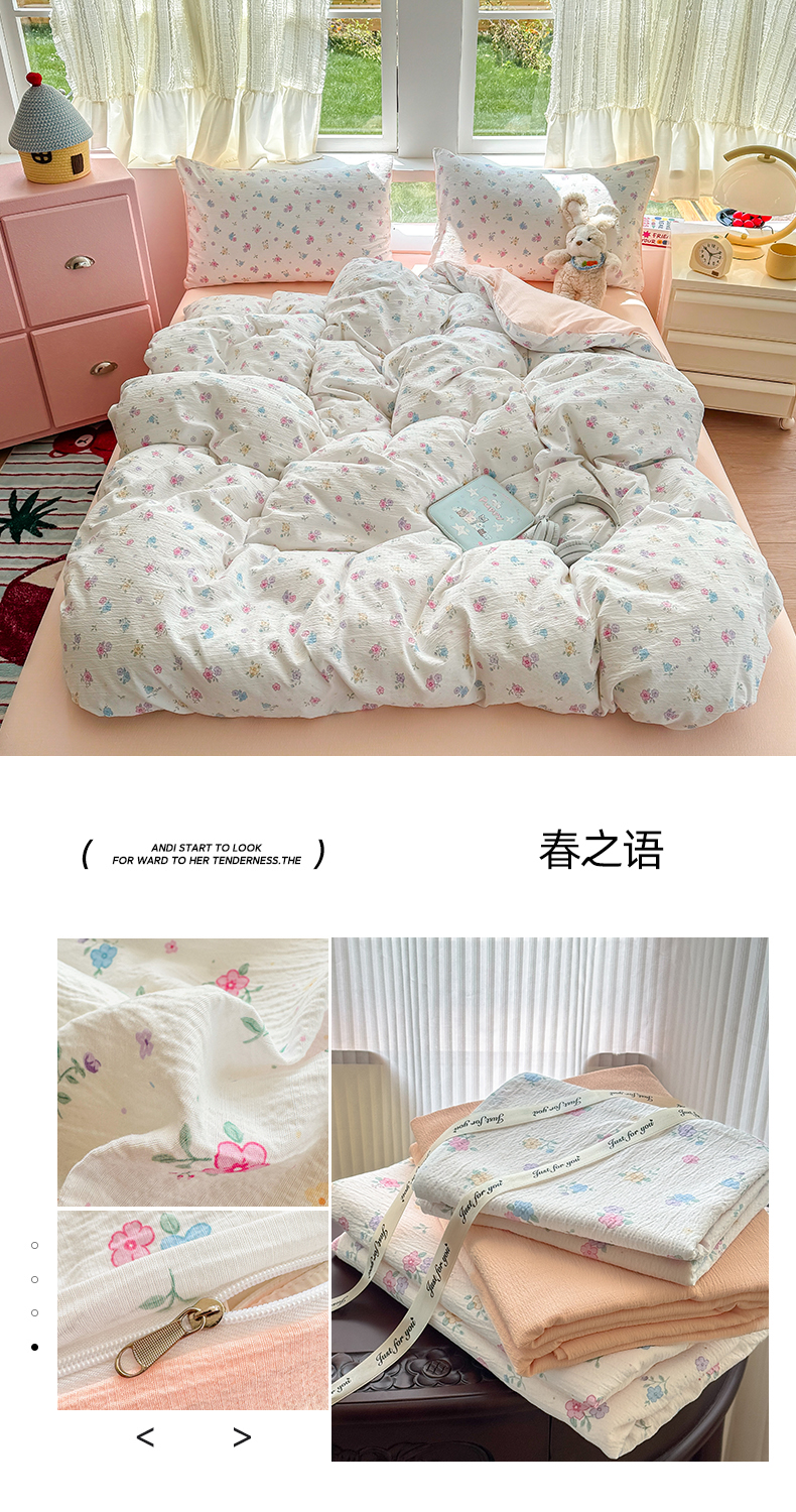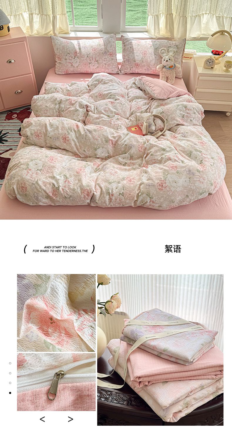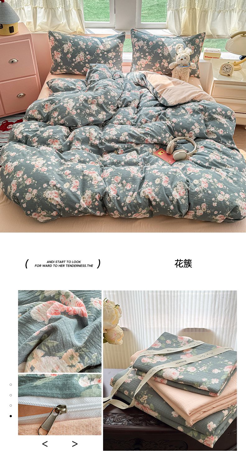 当前位置: 91家纺网 > 商品网购 > 床品套件 > 四件套 > 双层纱四件套 > 温眠家纺 2025新款云感针织双层纱四件套 花簇