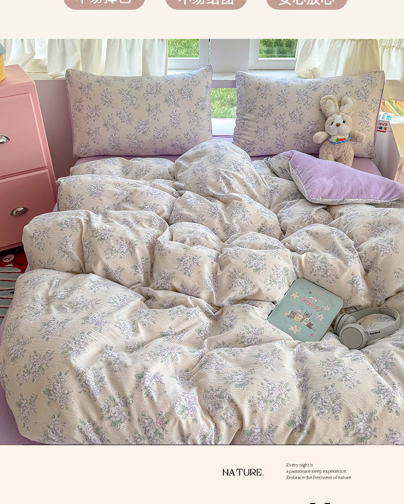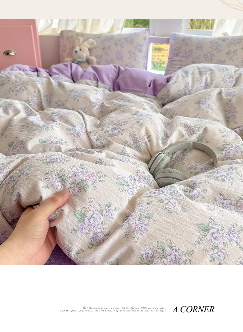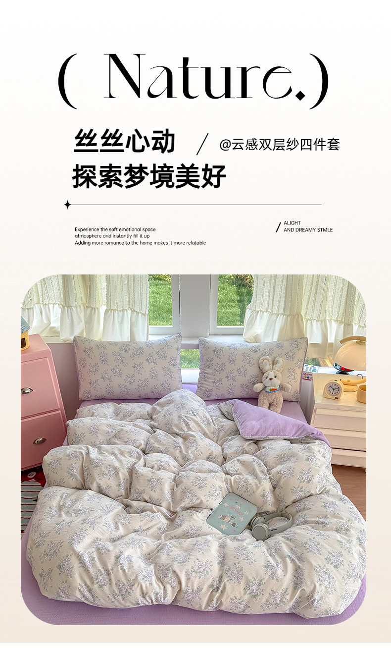当前位置: 91家纺网 > 商品网购 > 床品套件 > 四件套 > 双层纱四件套 > 温眠家纺 2025新款活性印染云感针织双层纱四件套 花开半夏