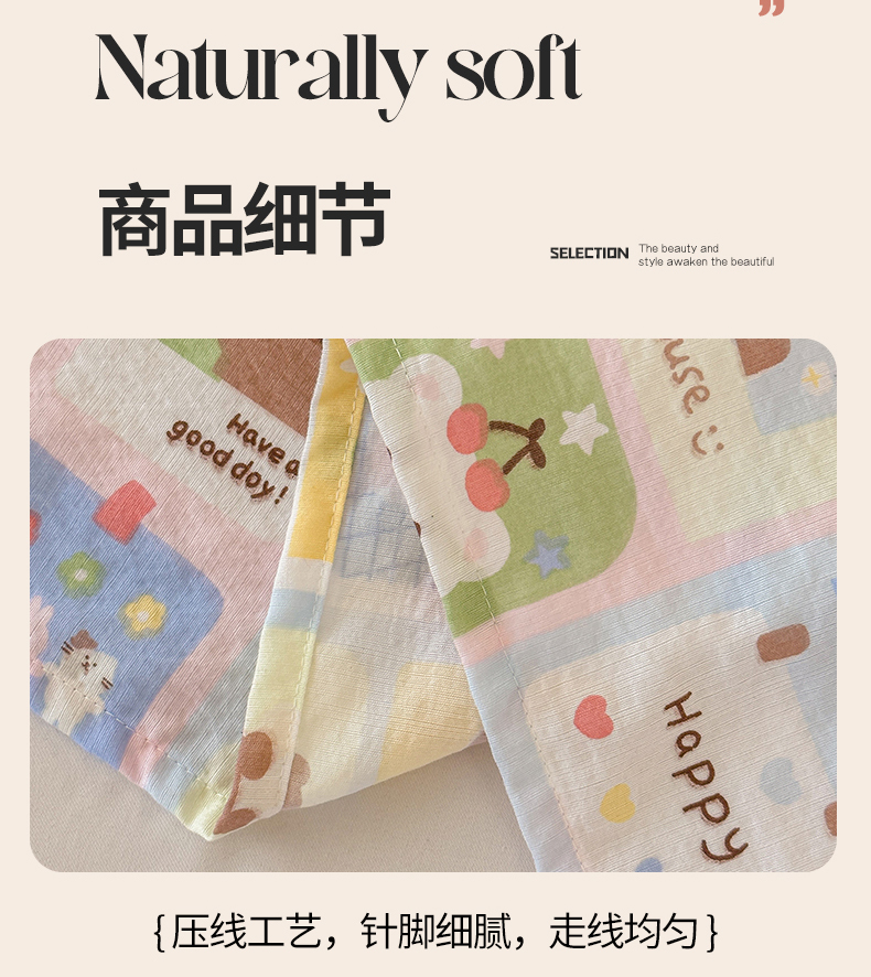 (总)温眠家纺 2026新款亲肤舒适甄选三层纱印花套件系列四件套,贩卖夏风-蓝,花丛点点猫,樱桃蝴蝶,蕾丝熊,葡萄腊肠狗,糖豆腊肠狗,星月天空,樱桃物语,雨爱,圆舞曲,芭乐米菲,彩波波,彩虹世界,动物团团,莓果结,梅森粉,莫奈-咖,沐风,秋月梨,小狗集合会,小黑豆,小花点点,幸运星,南瓜派,复古修狗,碱水结,蓝莓小猫,玫瑰夜-绿