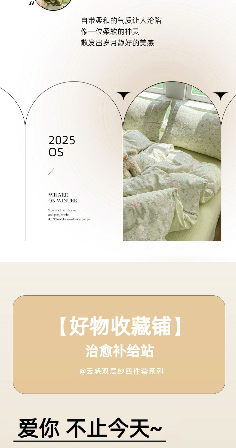 (总)温眠家纺 2026新款敲可爱的奶呼呼云感双层纱简约四件套系列-超级治愈~,裙子小兔,暗夜玫瑰,大脸二胡猫-粉,大脸二胡猫-咖,大脸二胡猫-蓝,蛋糕派,动物游园,蝴蝶剪影,见花则喜,焦糖樱桃,镜子里的兔,蓝莓奶糖,铃兰结,六子棋-绿,木马,奶昔甜糕,苹果小怪,葡萄多多,俏皮狗,切块草莓猫,清风与雾-蓝,苏瑾,童年木马,像素小猫,烟紫,一口青苹果,樱桃奶球,竹歆花语