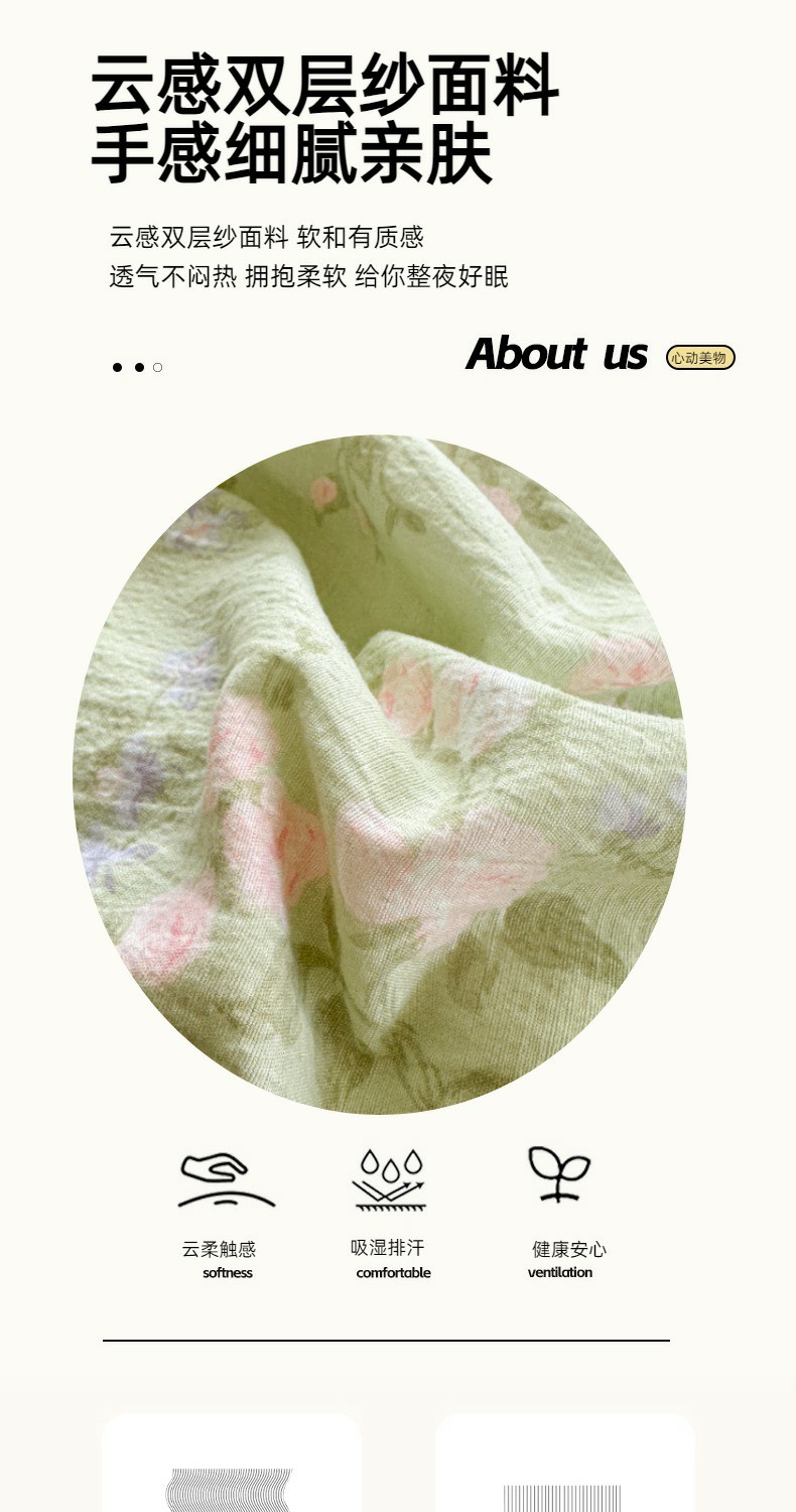 商品名称:温眠家纺 2025新款云感针织双层纱单被套系列 木槿绿