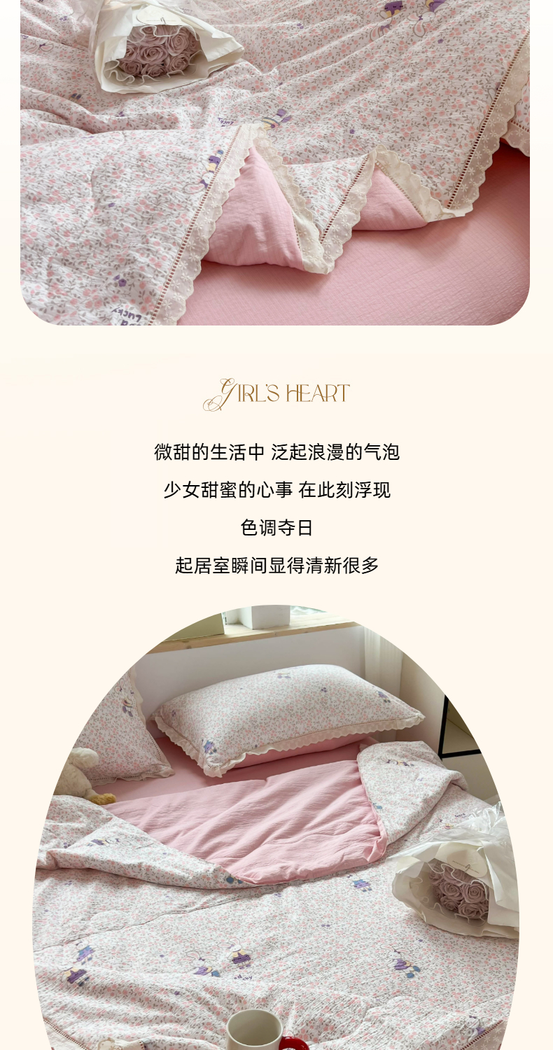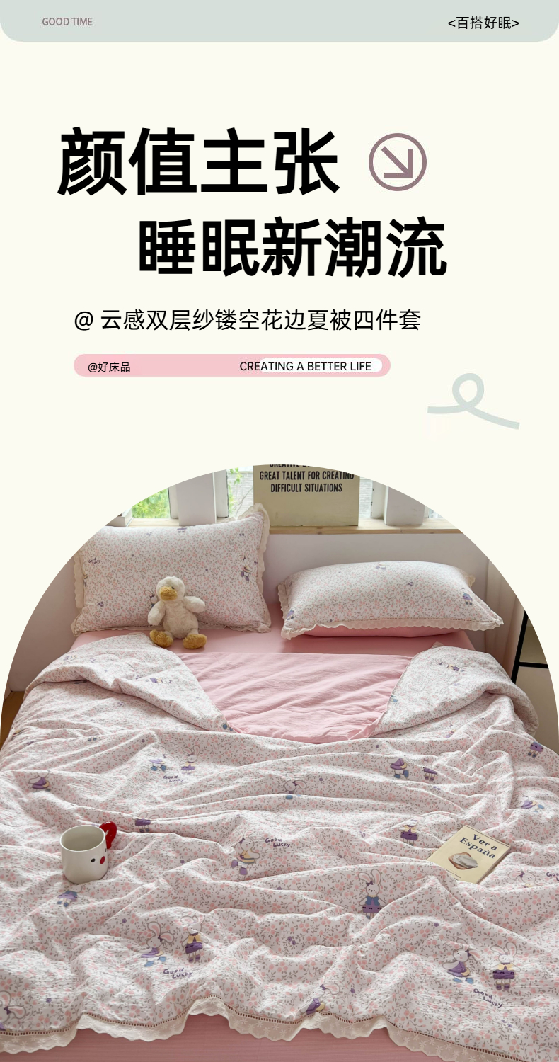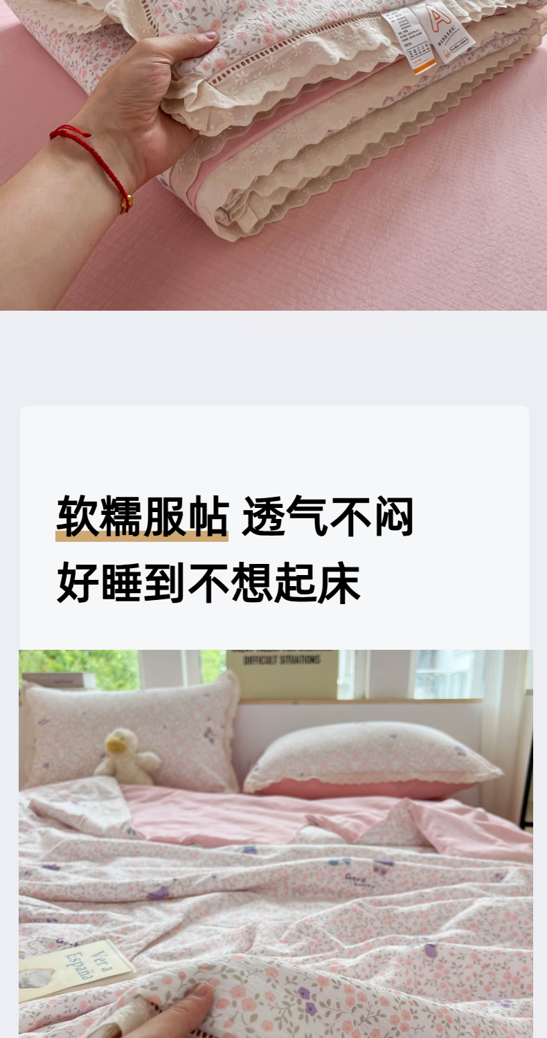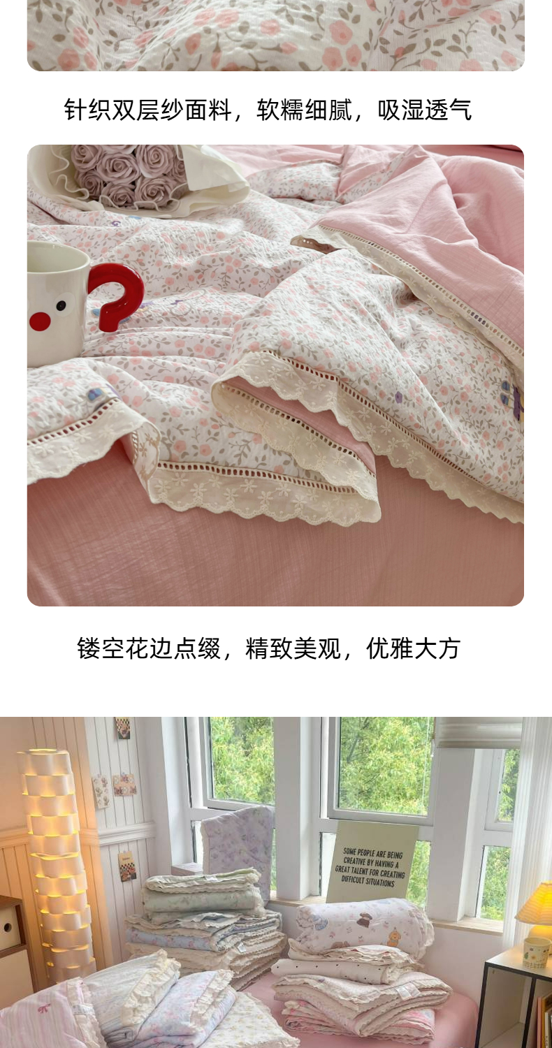 商品名称:温眠家纺 2025新款云感双层纱镂空花边夏被四件套 美好时光