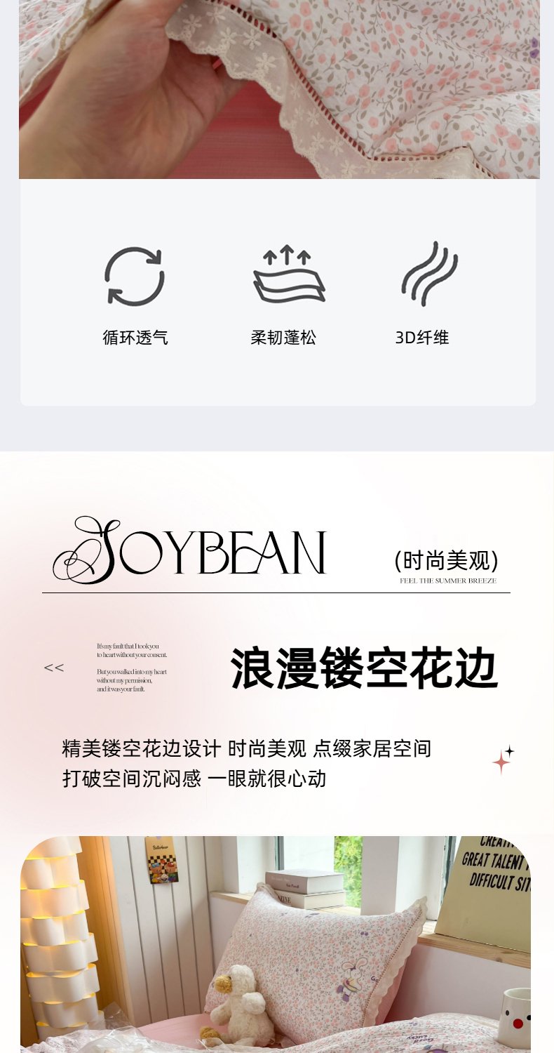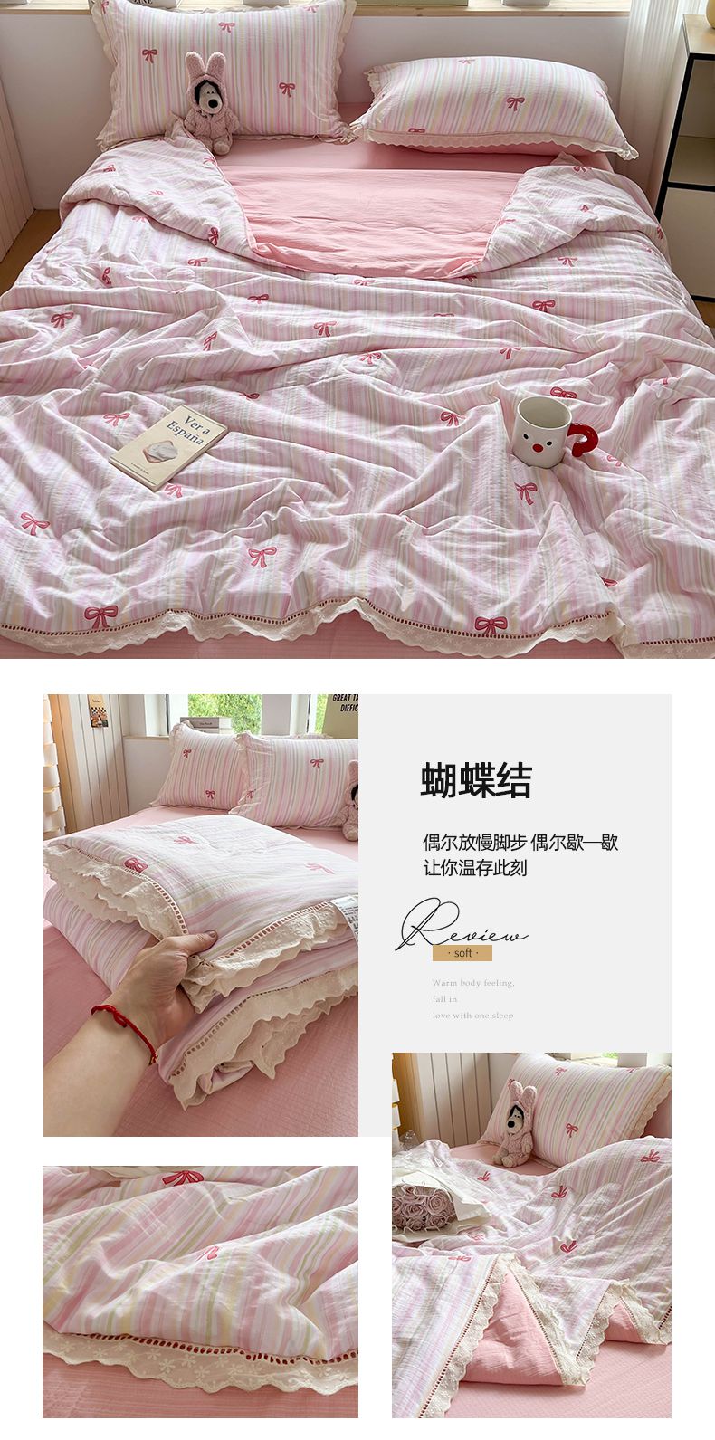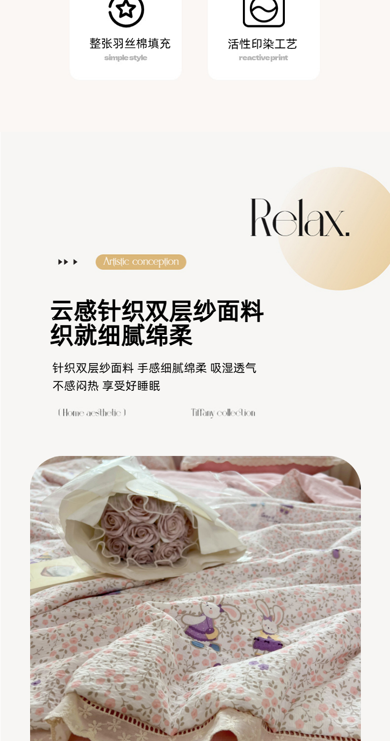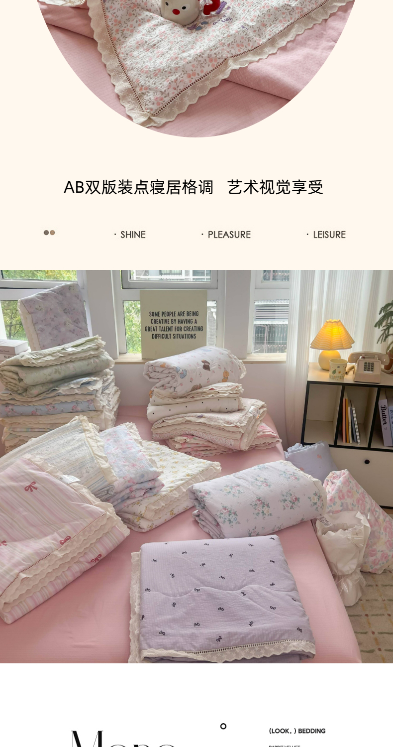 商品名称:温眠家纺 2025新款云感双层纱镂空花边夏被四件套 美好时光