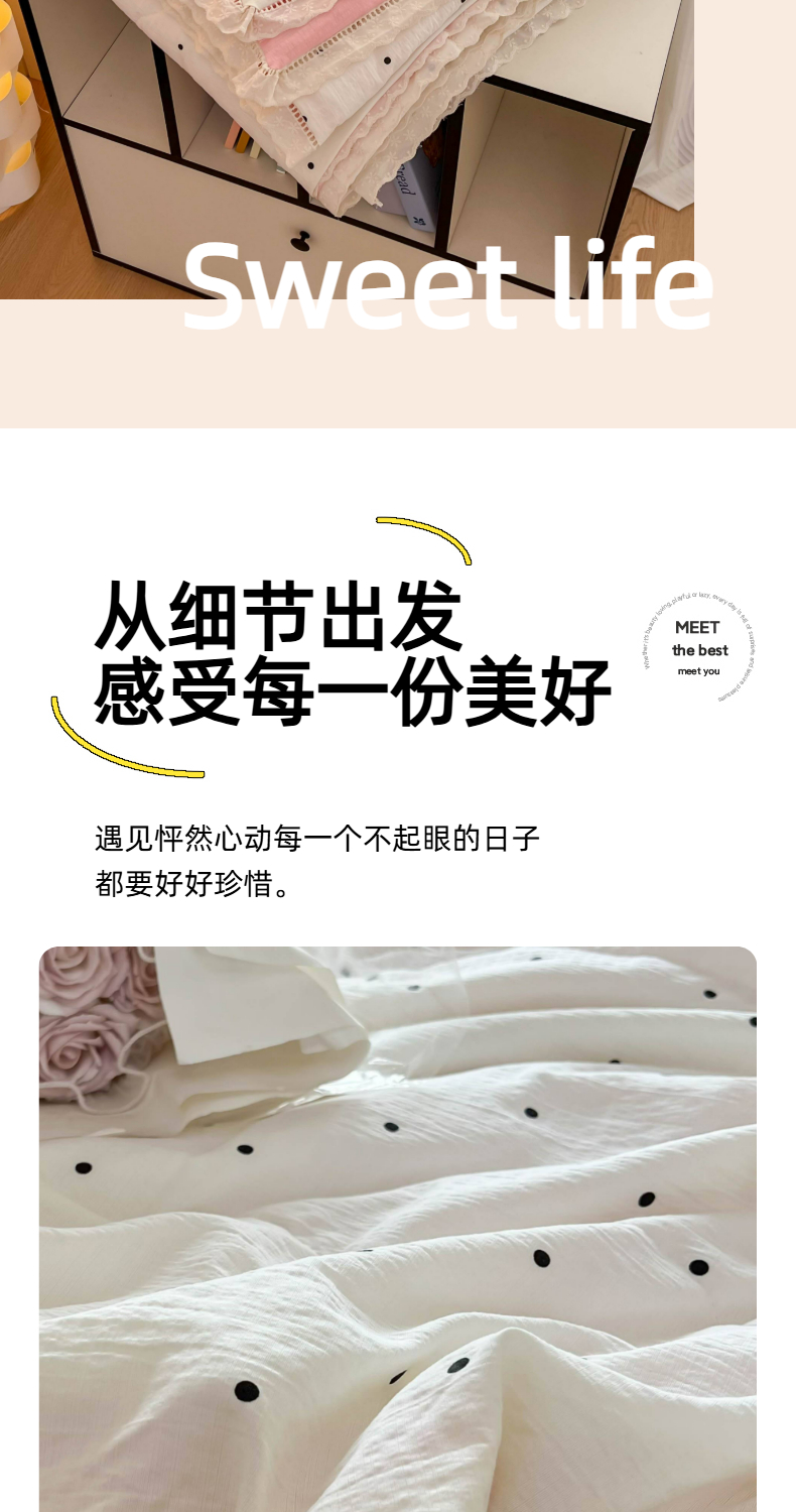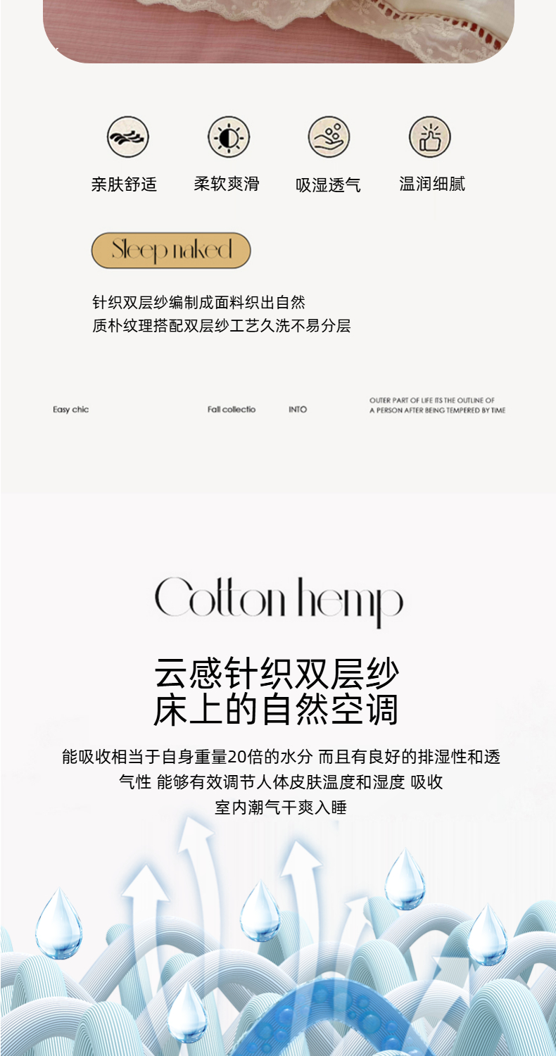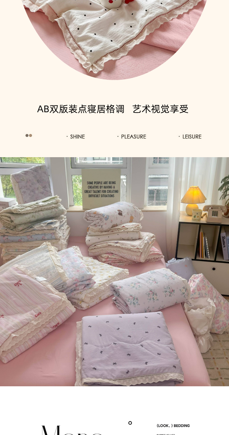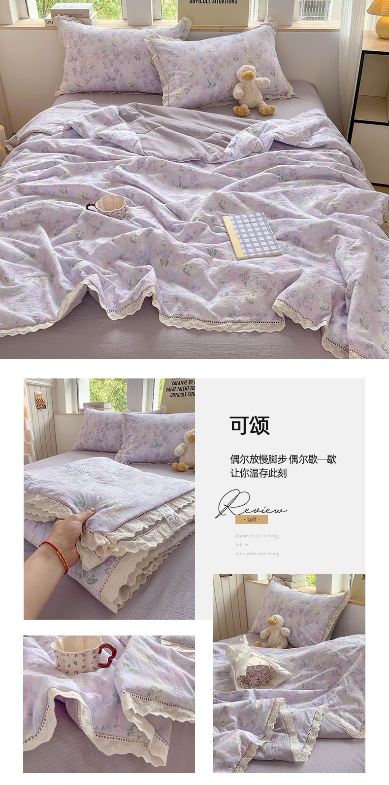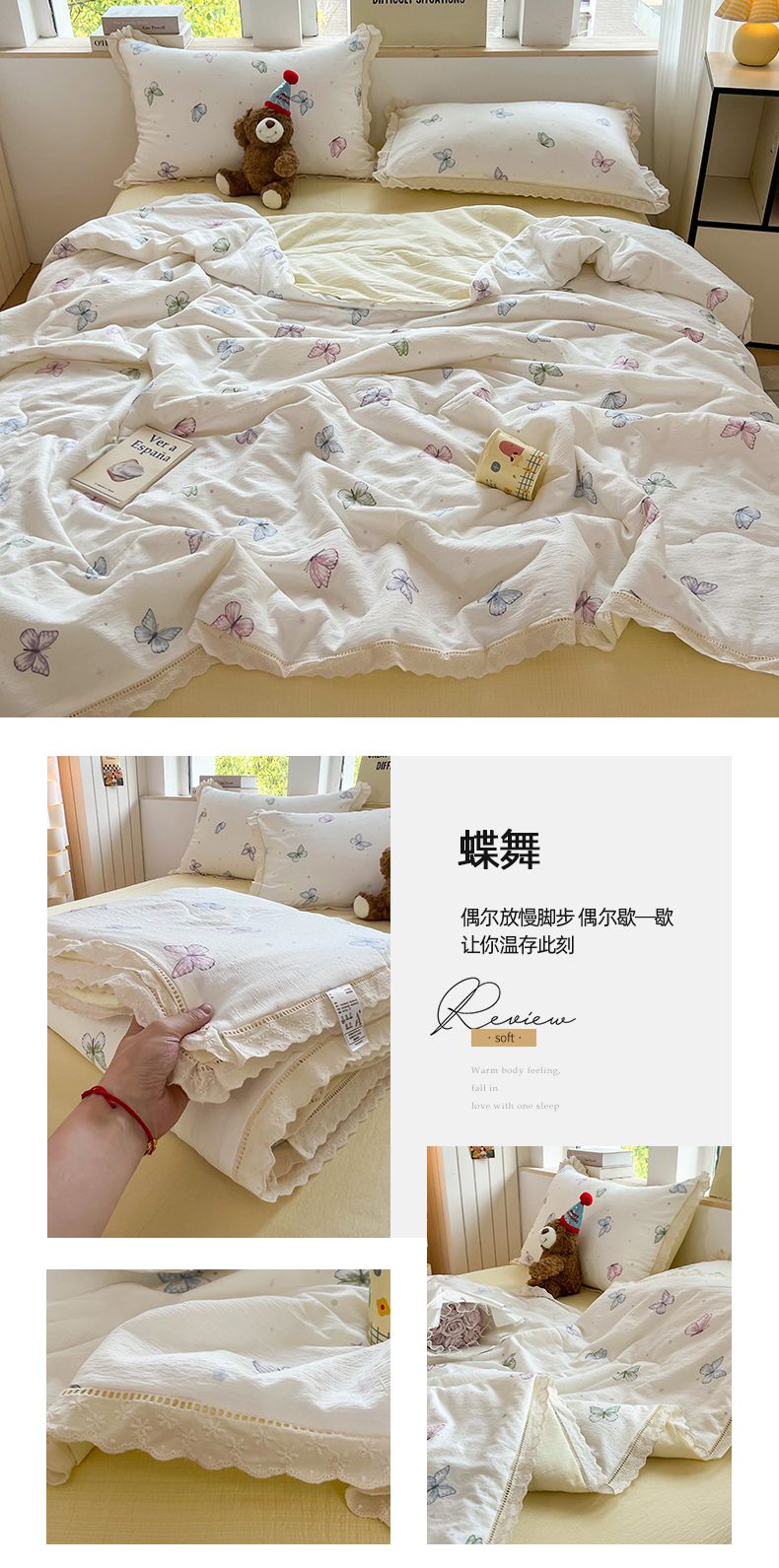 商品名称:温眠家纺 2025新款云感双层纱镂空花边夏被四件套 悠野