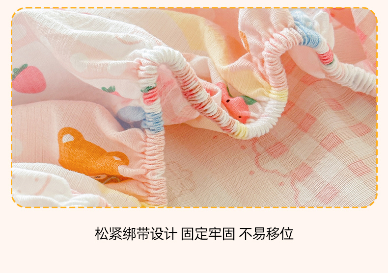 温眠家纺 2025春夏新款云感棉双层纱床笠单床笠枕套三件套场景二 草莓蛋糕