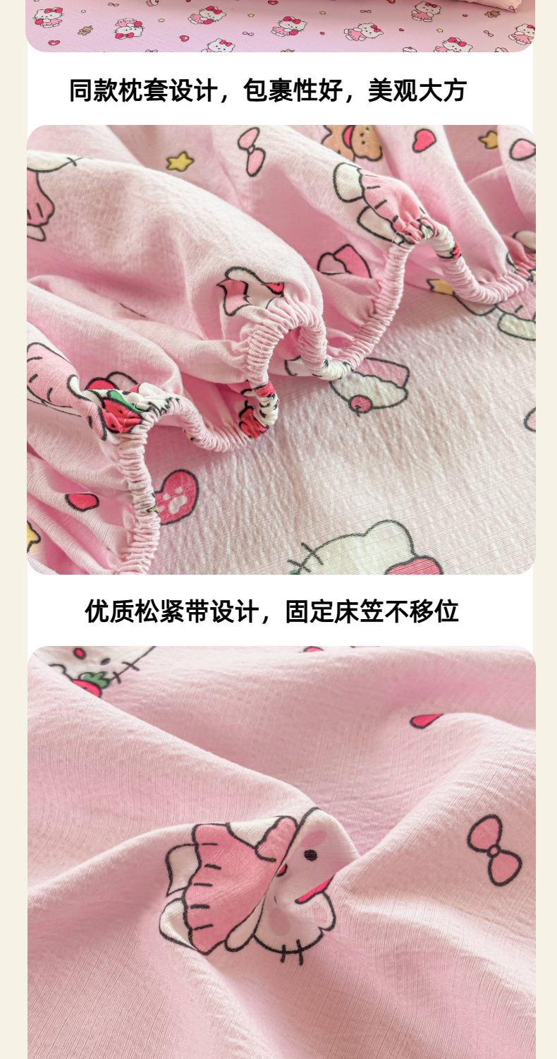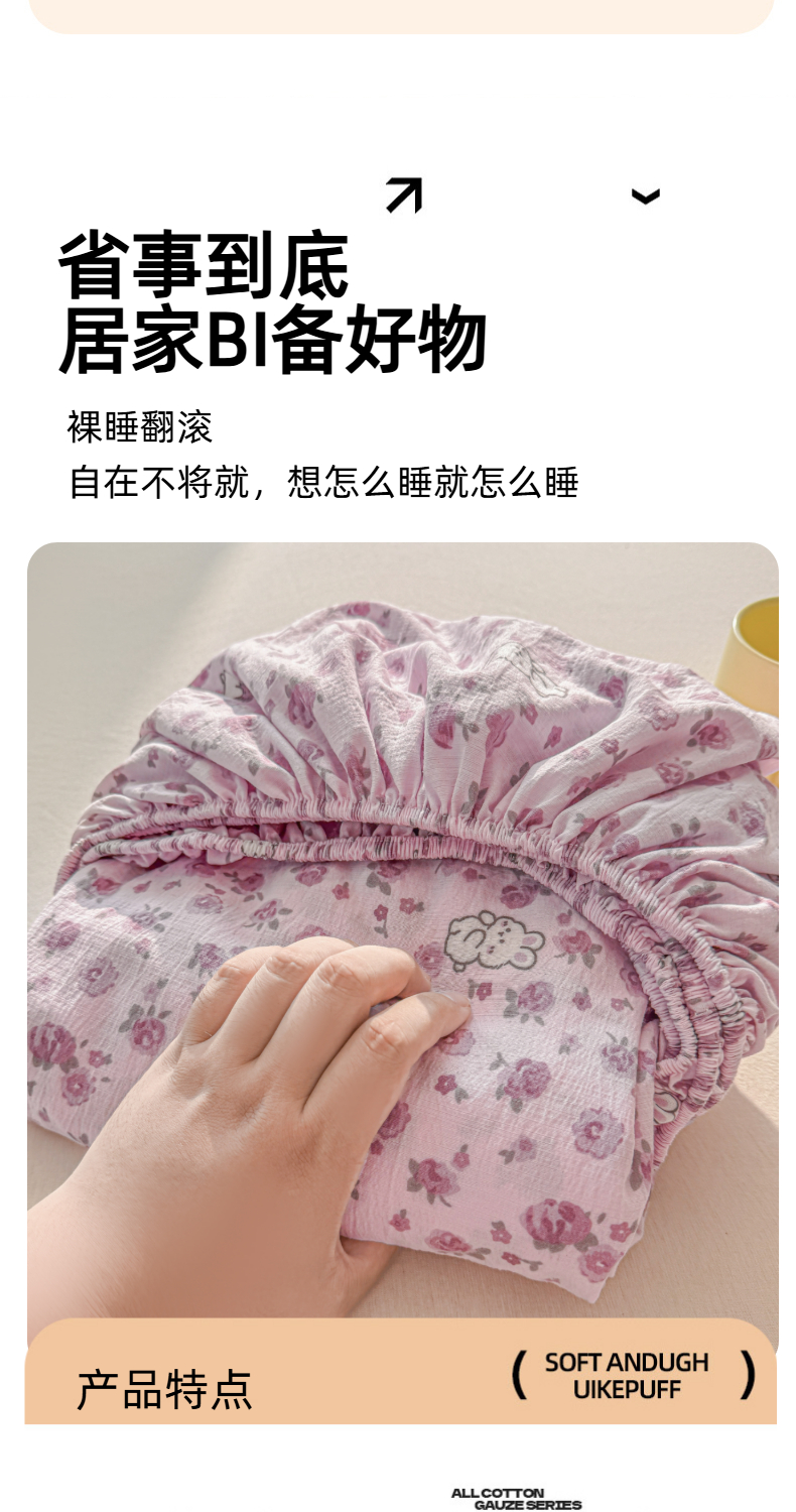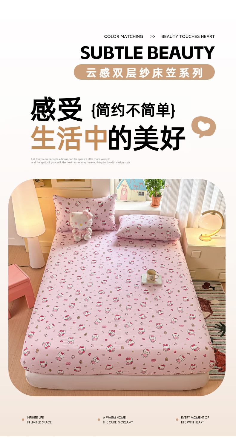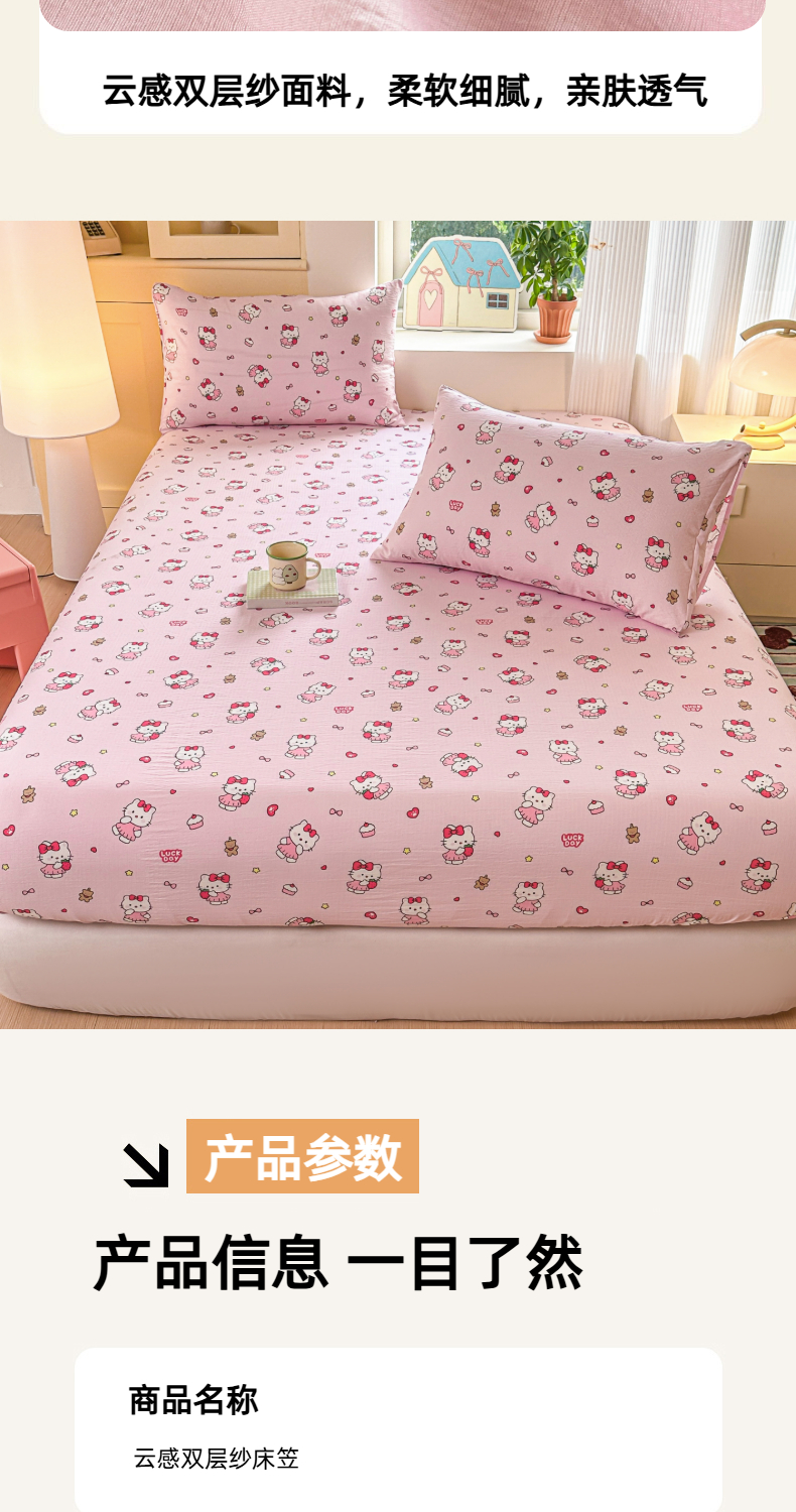 商品名称:温眠家纺 2025新款云感皱皱双层纱床笠 喵喵酱