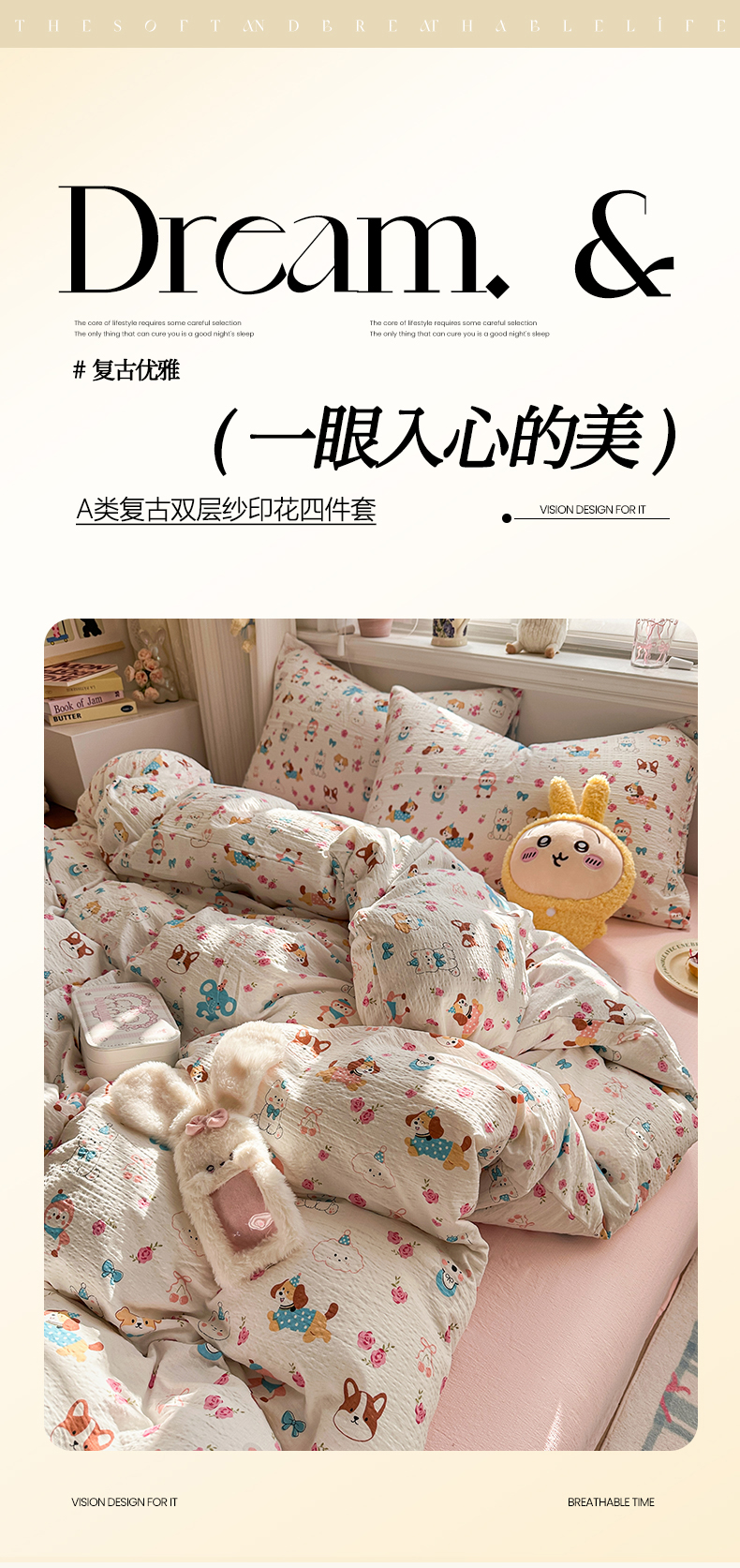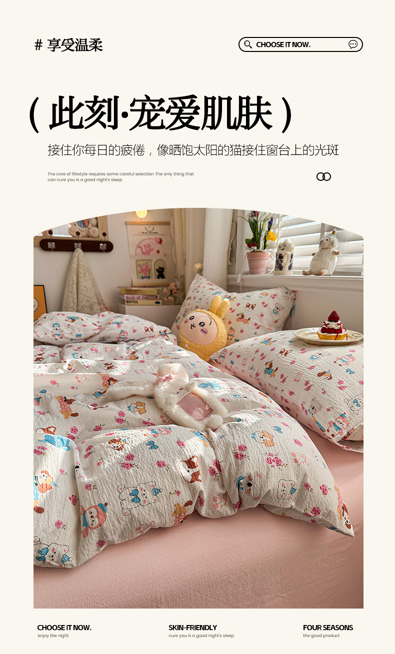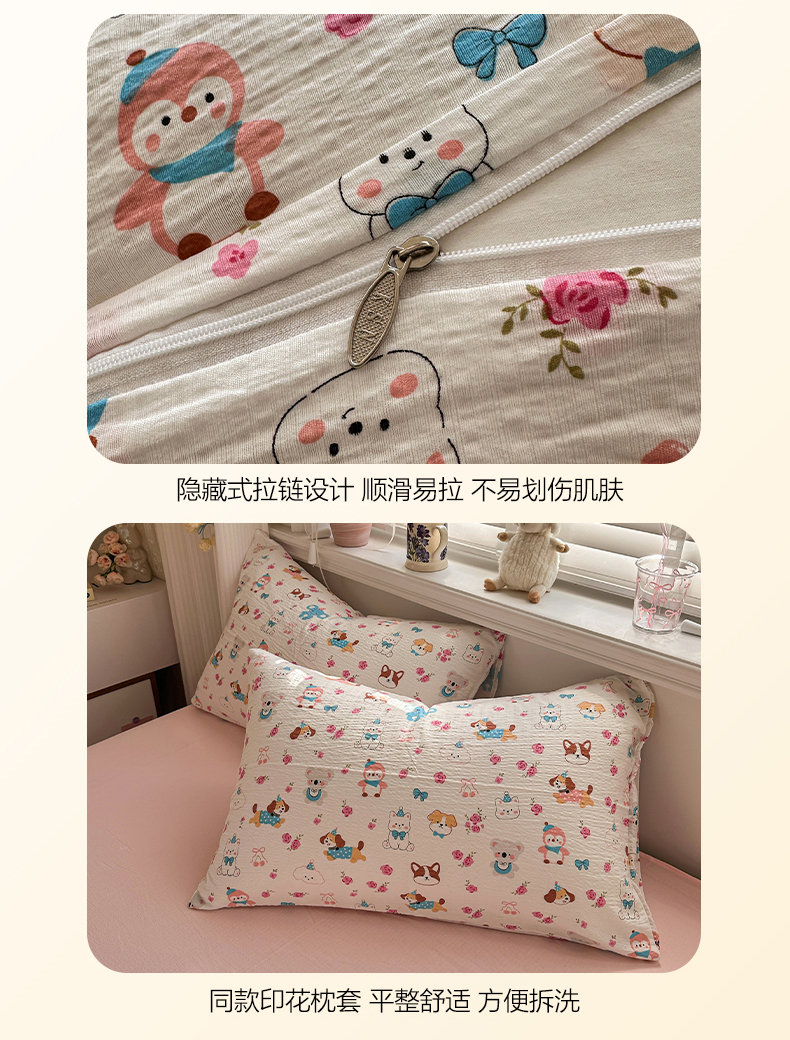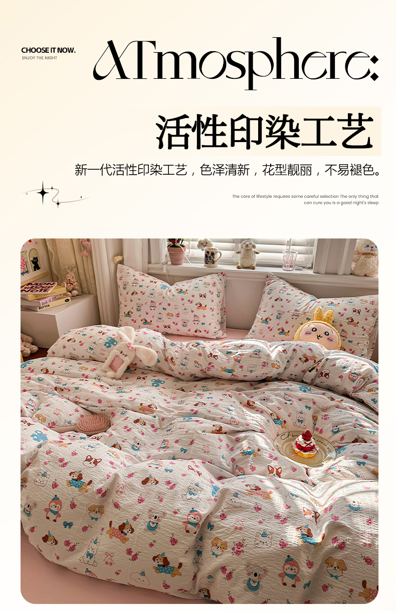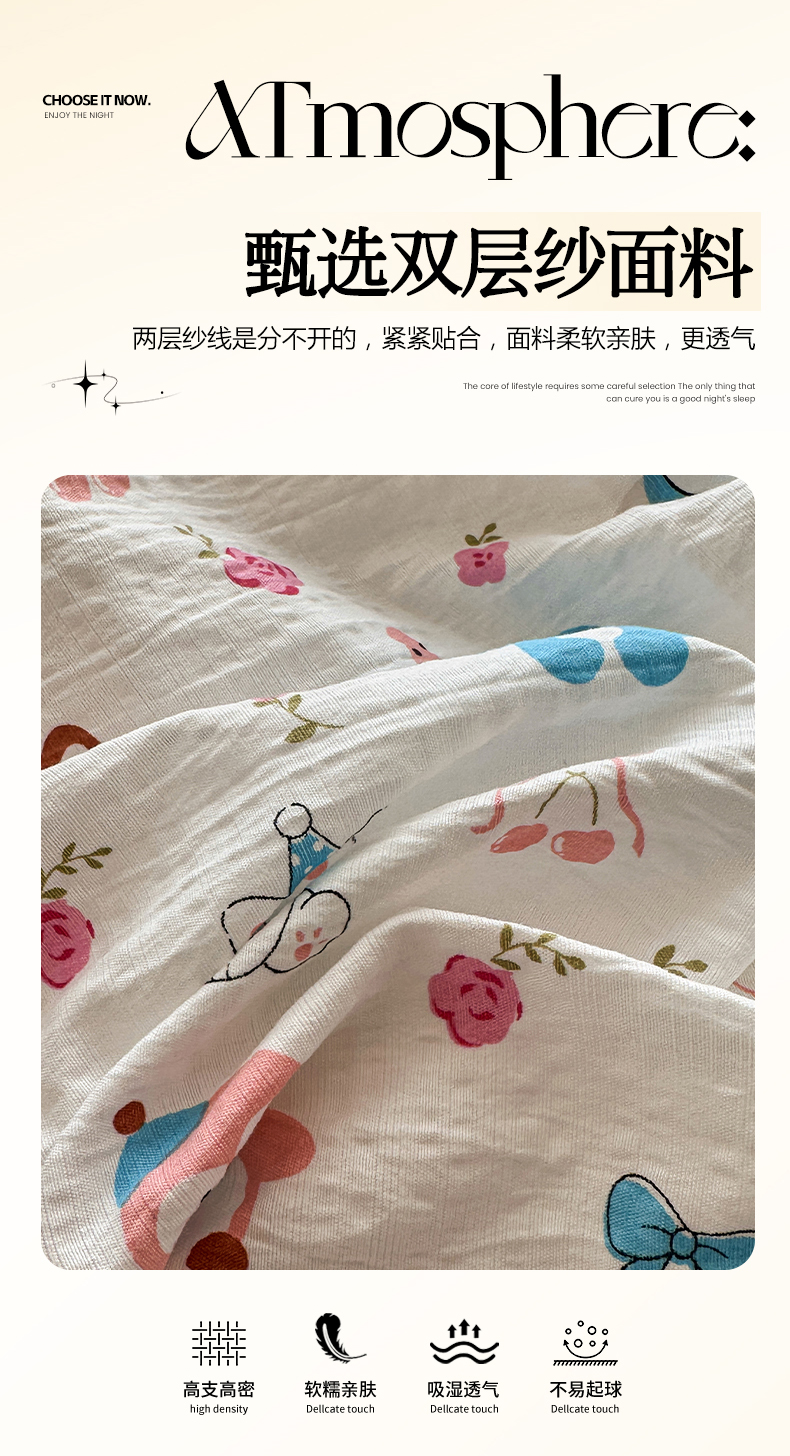 当前位置: 91家纺网 > 商品网购 > 床品套件 > 四件套 > 双层纱四件套 > 卡斯诺家纺馆 2026新款皱皱棉双层纱四件套(下载文件包含买家秀) 萌趣花梦