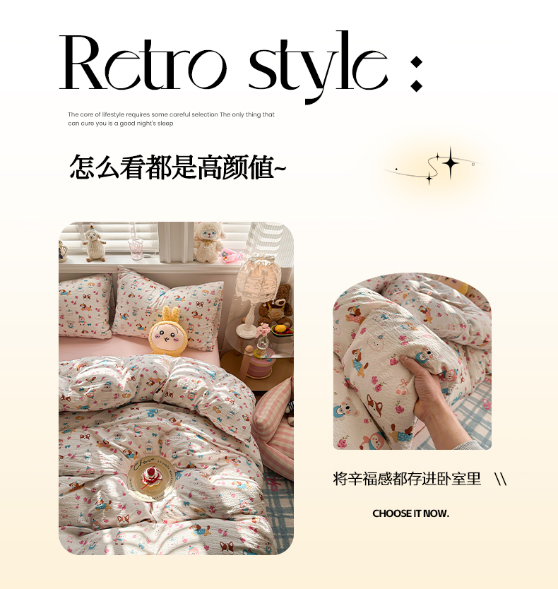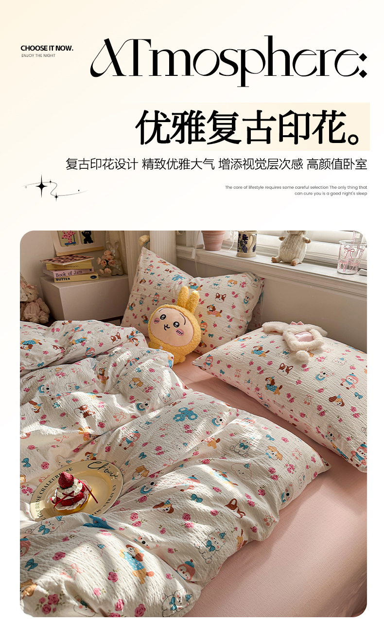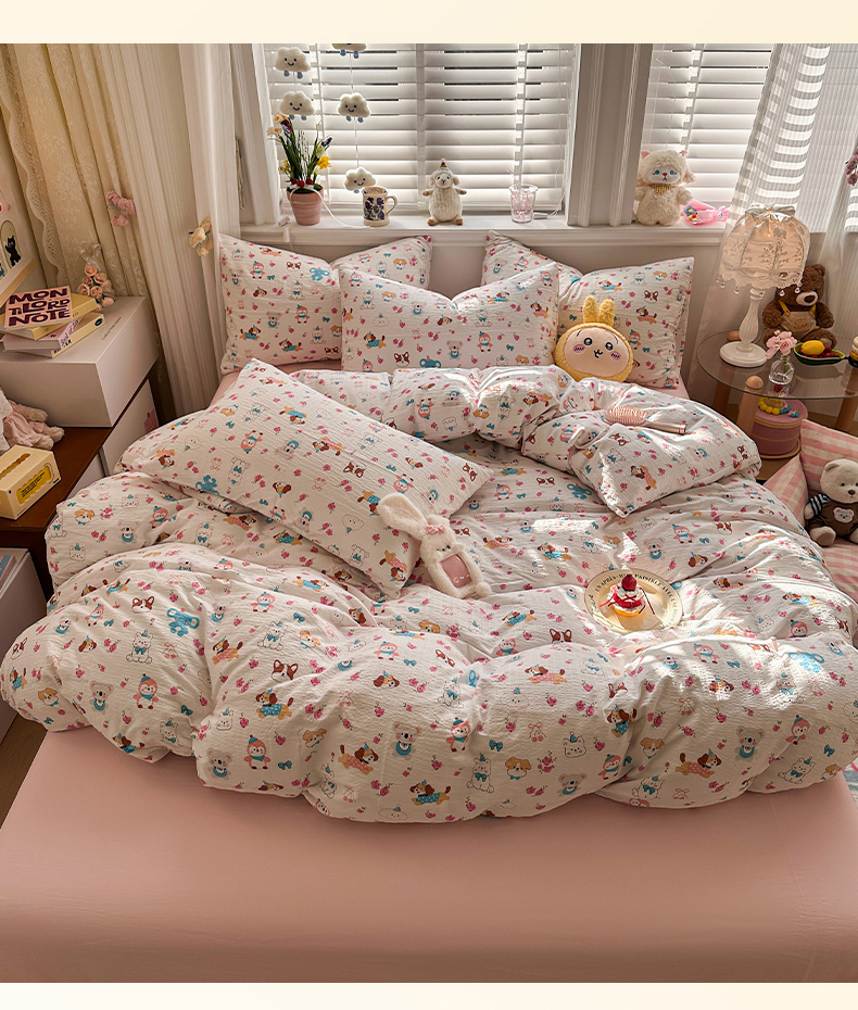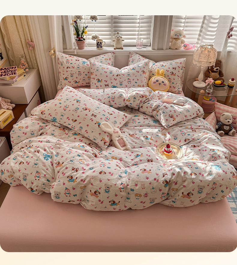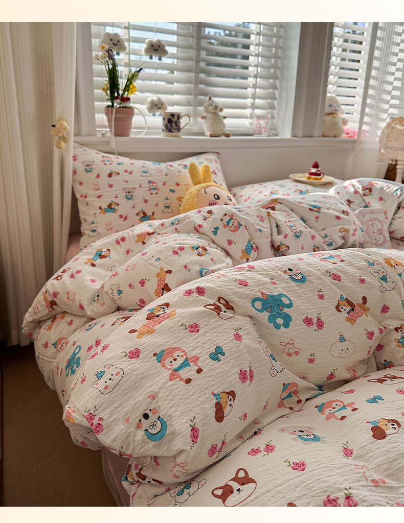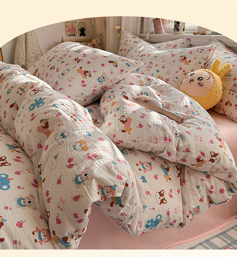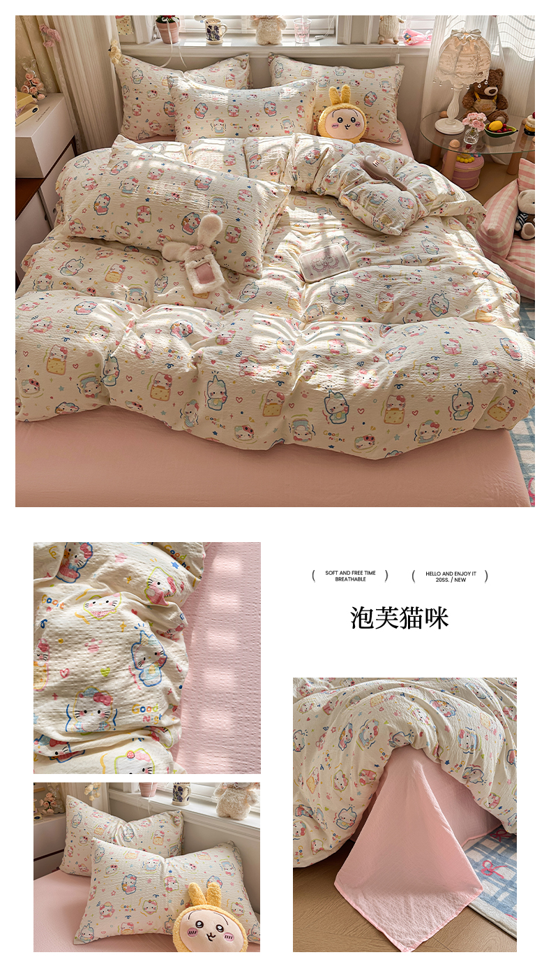 当前位置: 91家纺网 > 商品网购 > 床品套件 > 四件套 > 双层纱四件套 > 卡斯诺家纺馆 2026新款皱皱棉双层纱四件套(下载文件包含买家秀) 萌趣花梦