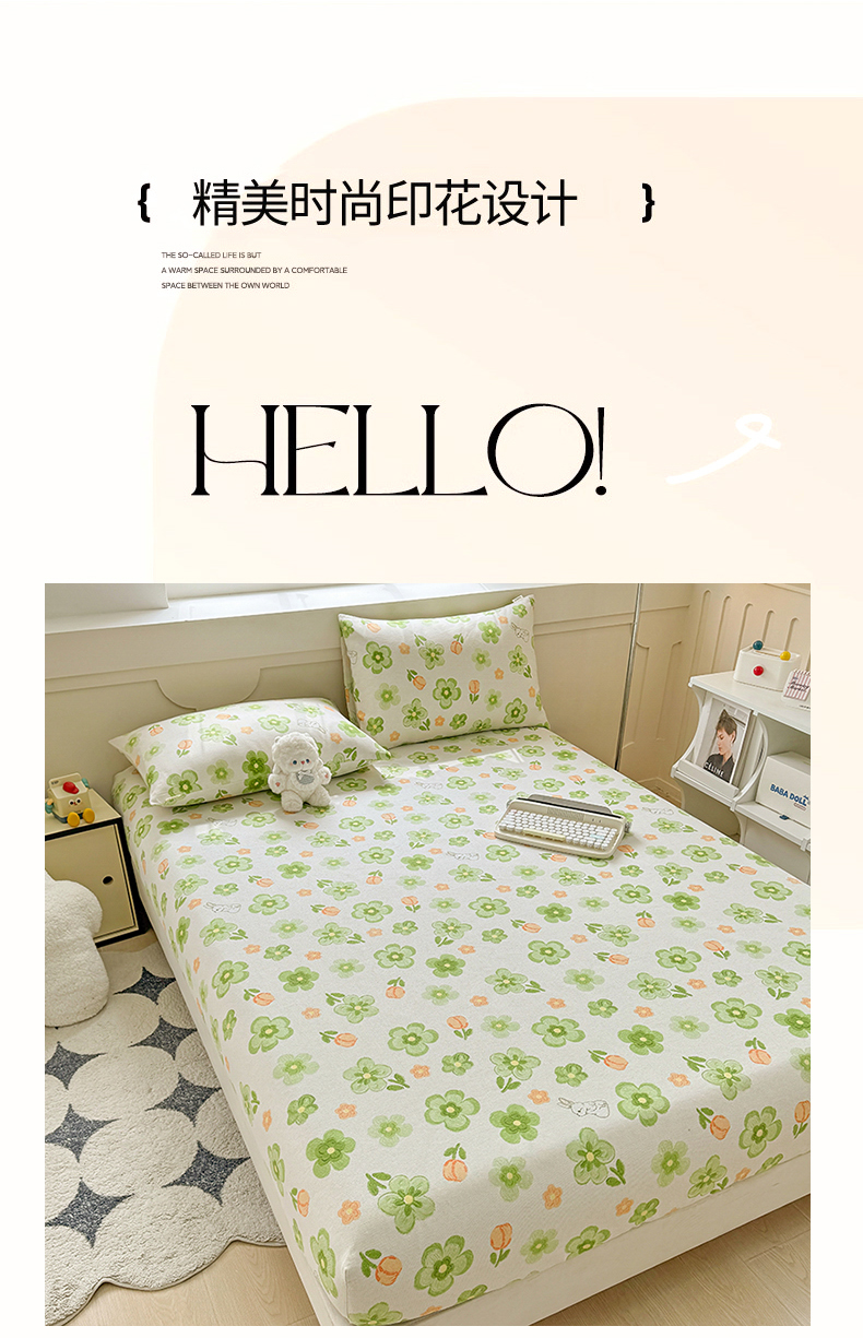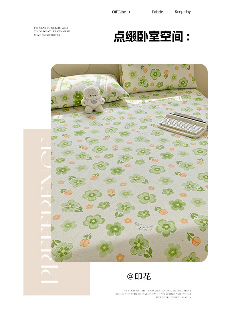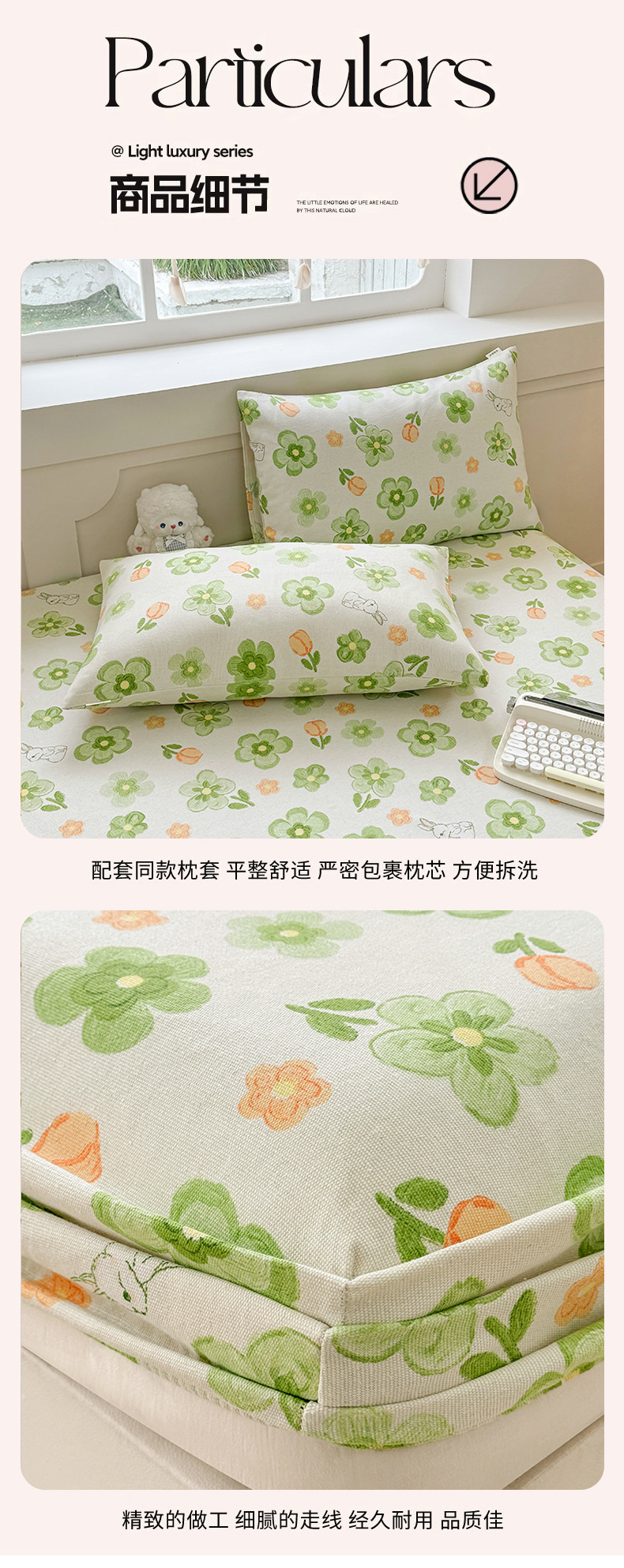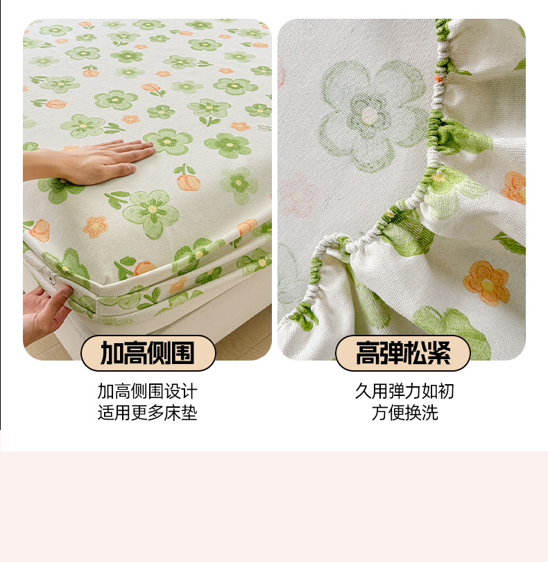 • 91家纺网 家纺一手货源 找家纺 爱彼家纺 2026新款舒适透气老粗布凉席印花床笠单件-床笠三件套 老粗布床笠-绿果花香