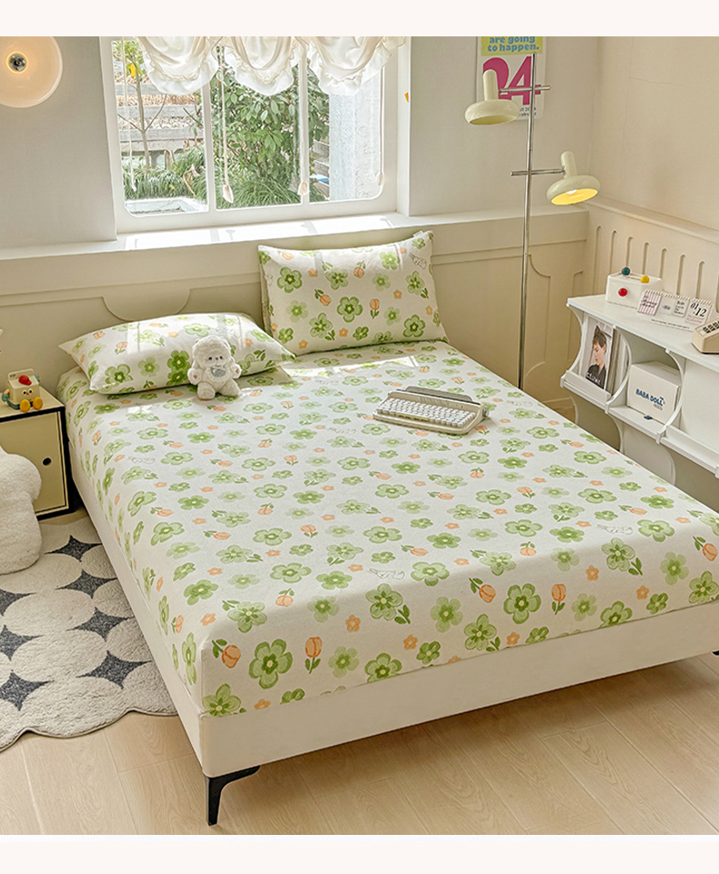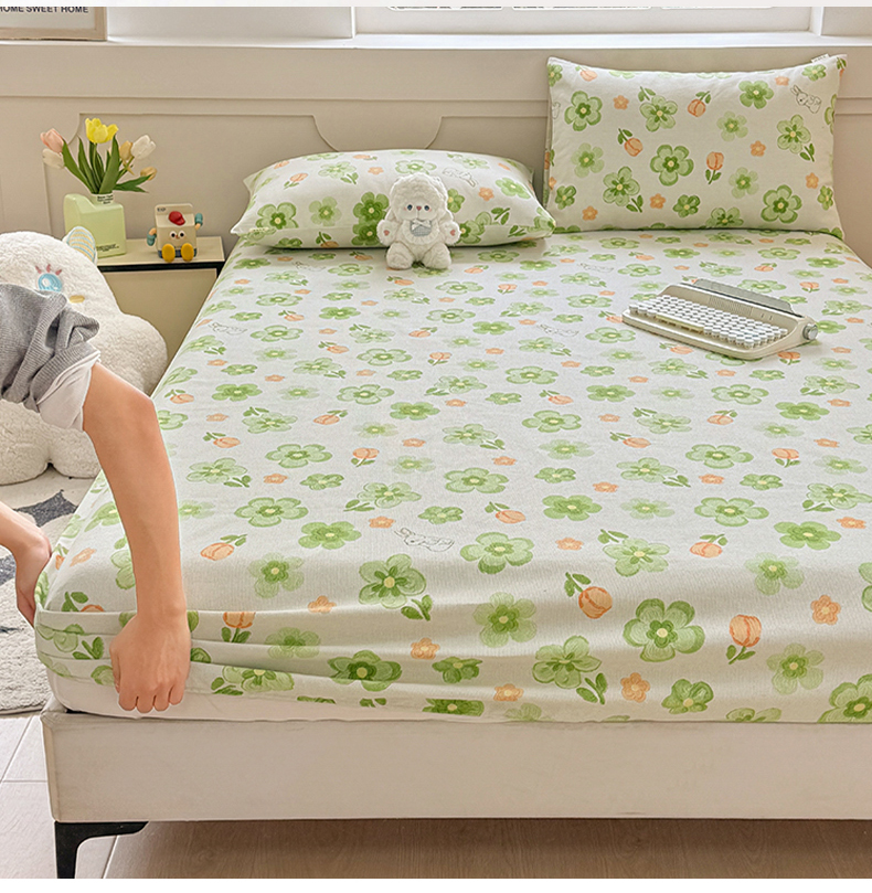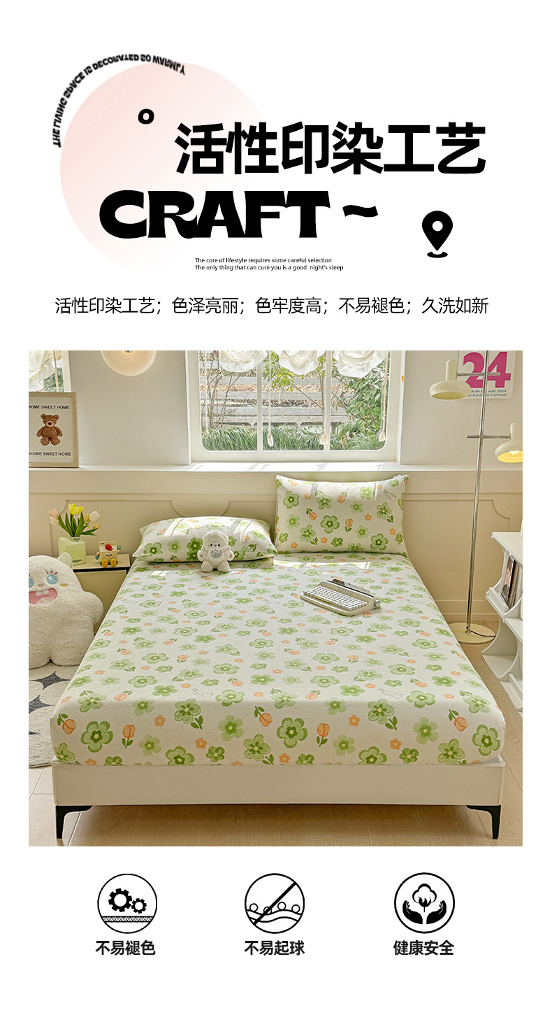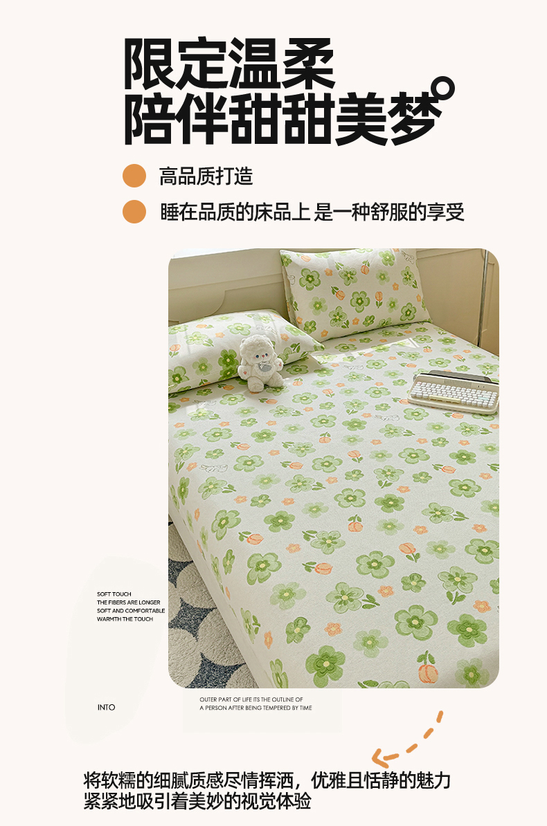 • 91家纺网 家纺一手货源 找家纺 爱彼家纺 2026新款舒适透气老粗布凉席印花床笠单件-床笠三件套 老粗布床笠-绿果花香